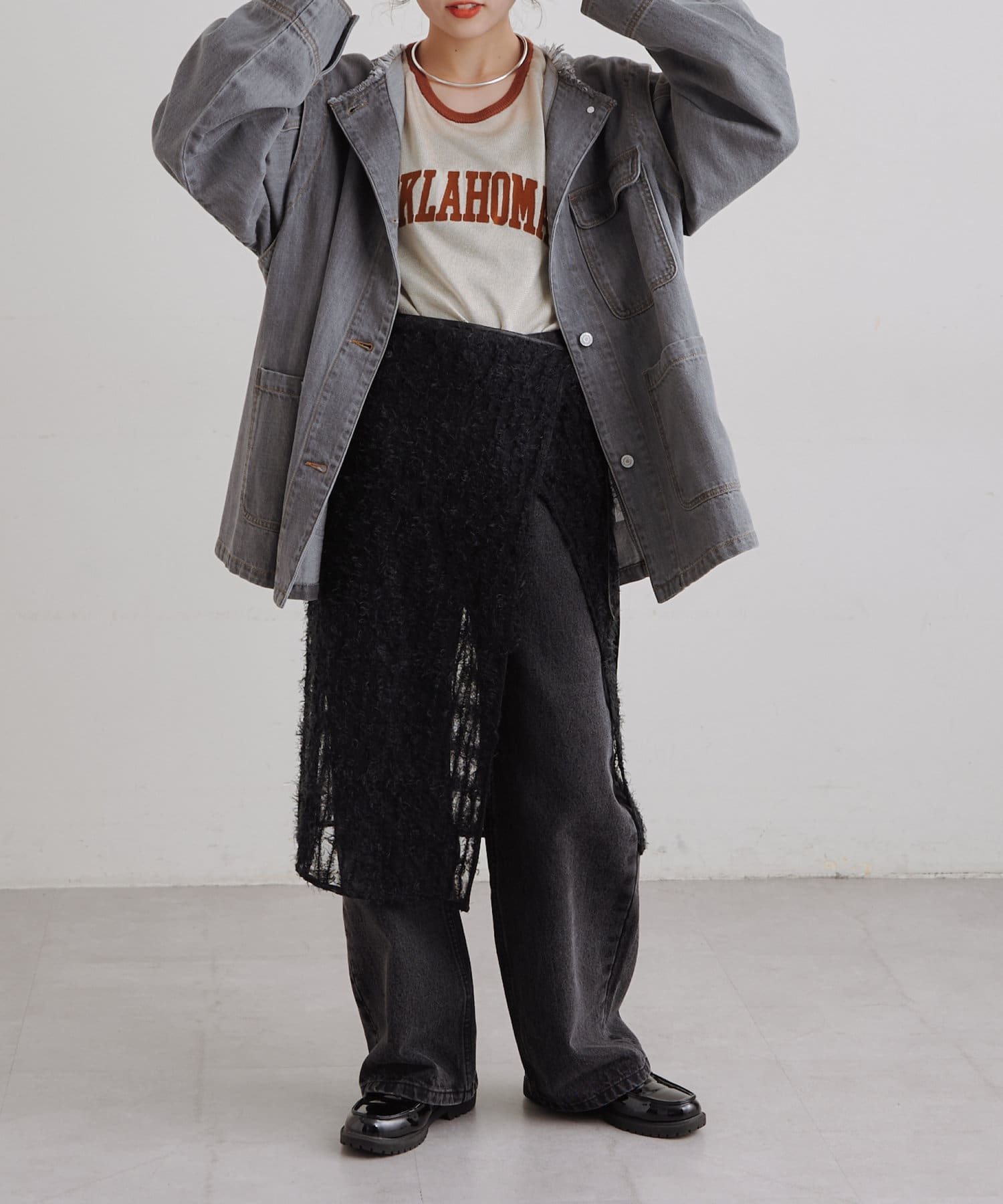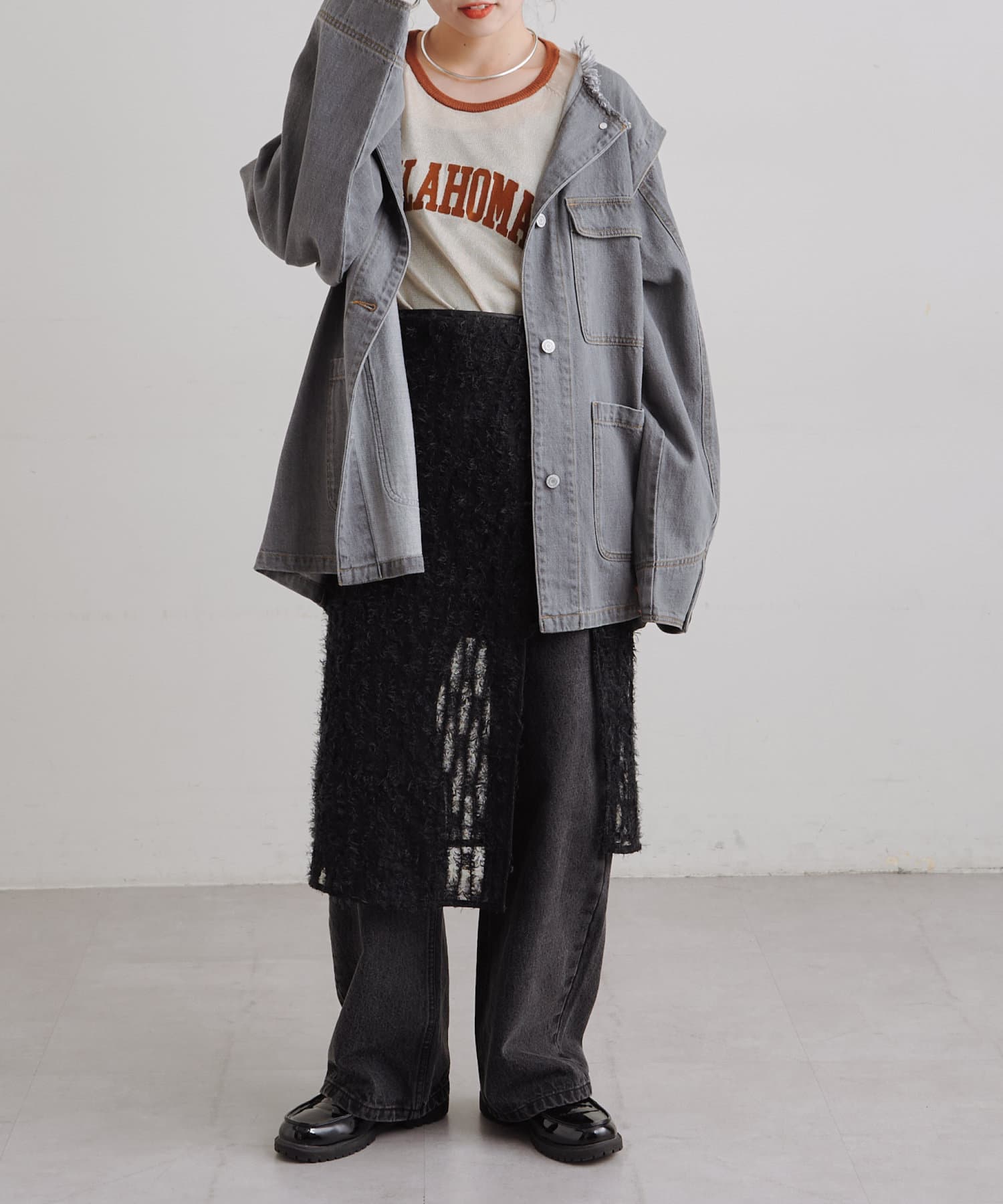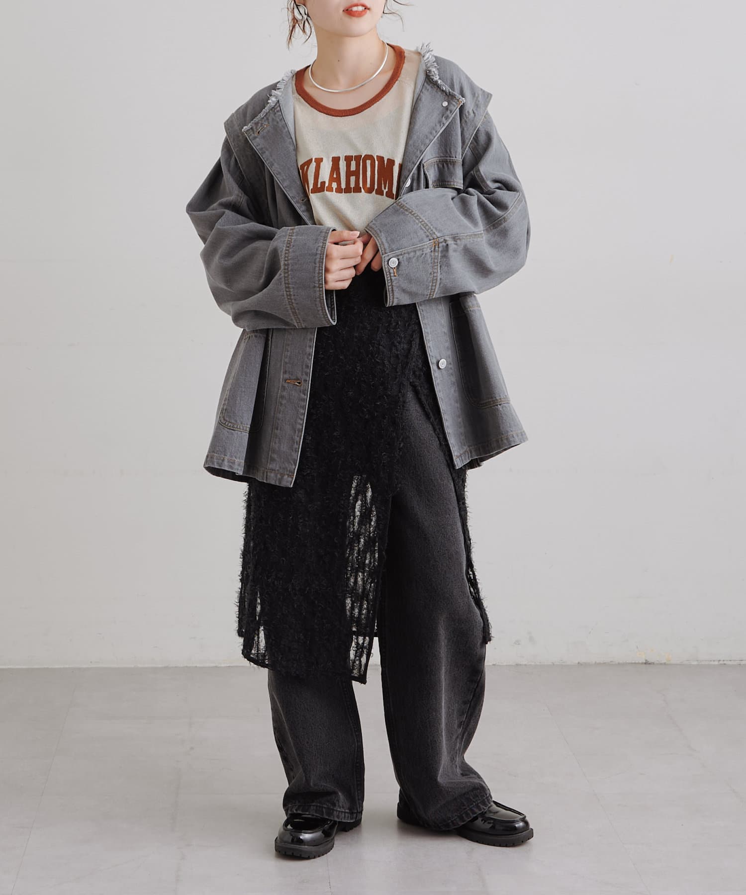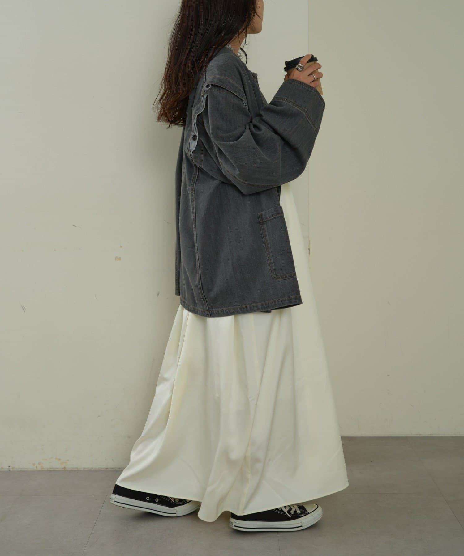 ゆったりとしたシルエットでメンズライクなラフさもありつつ、