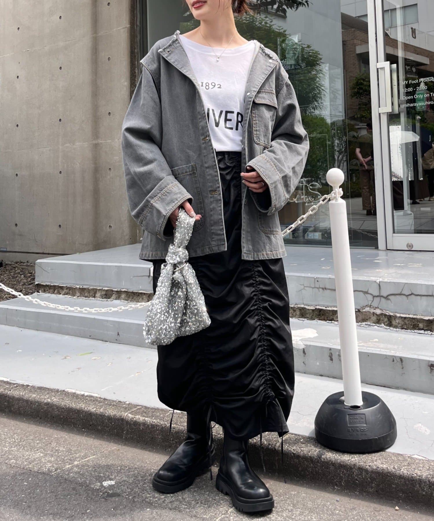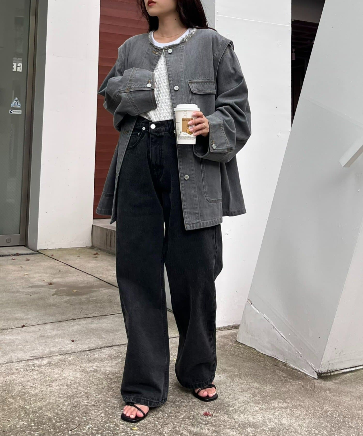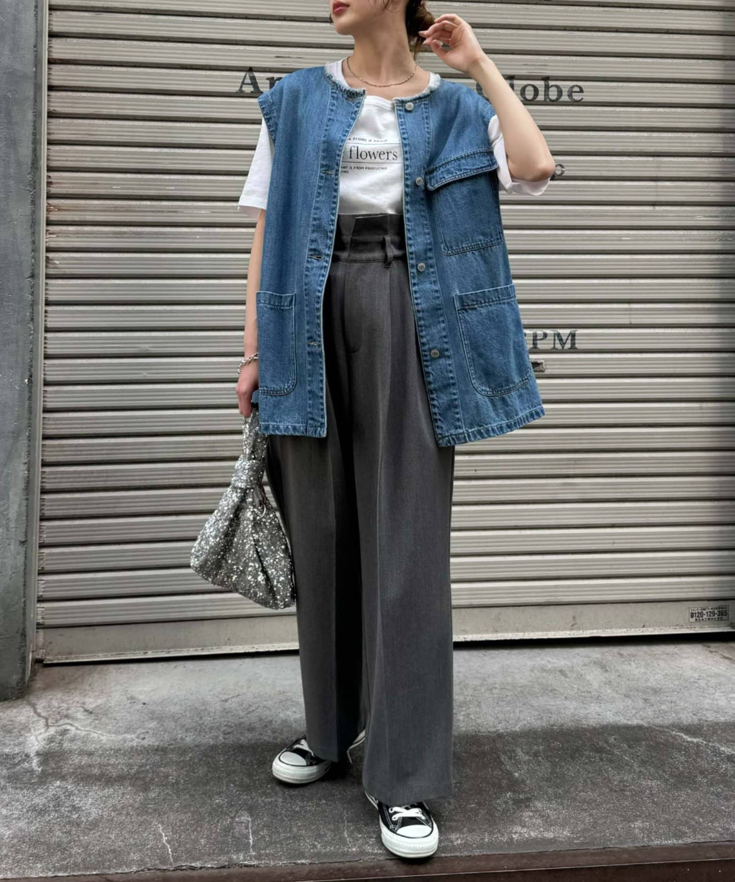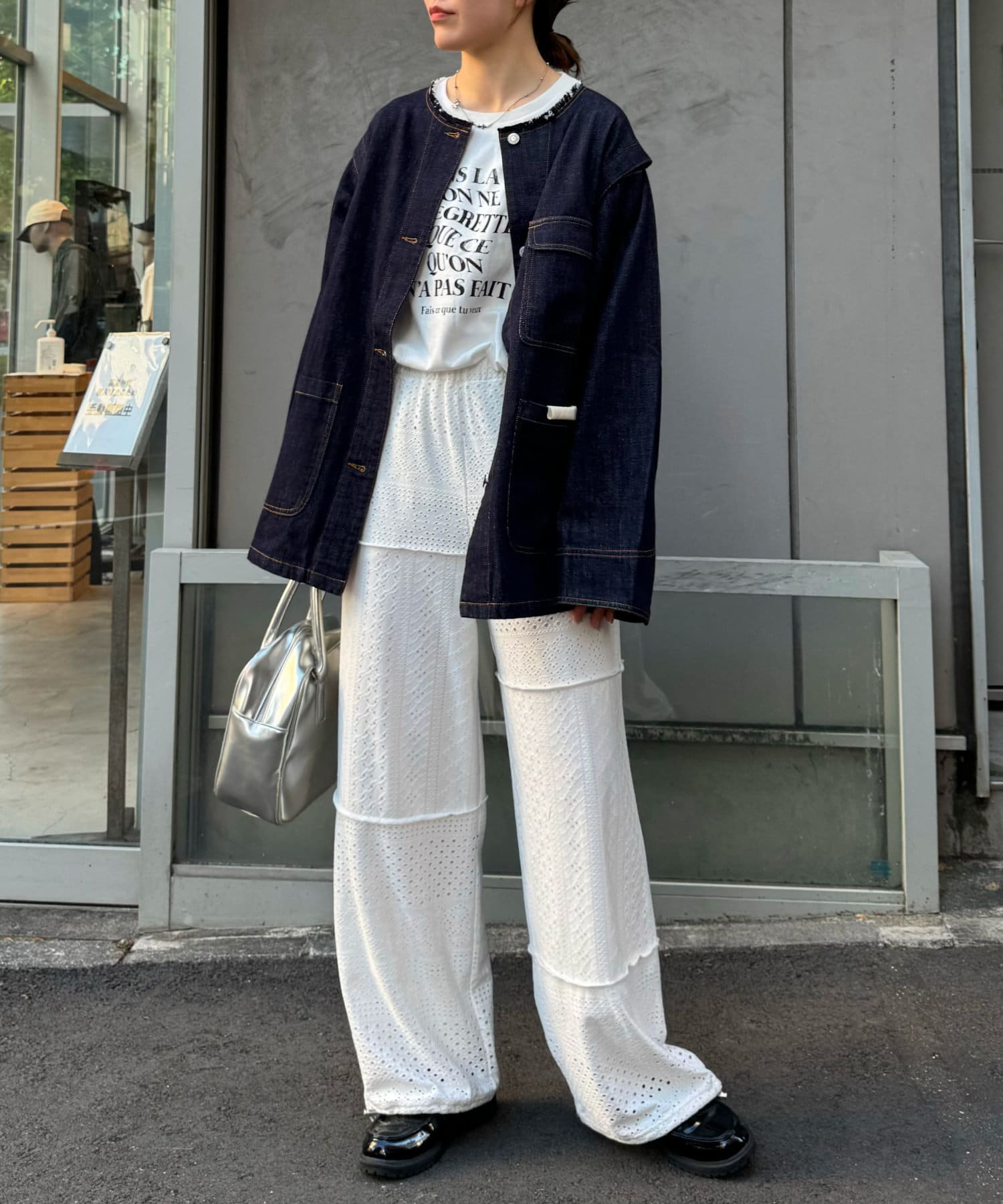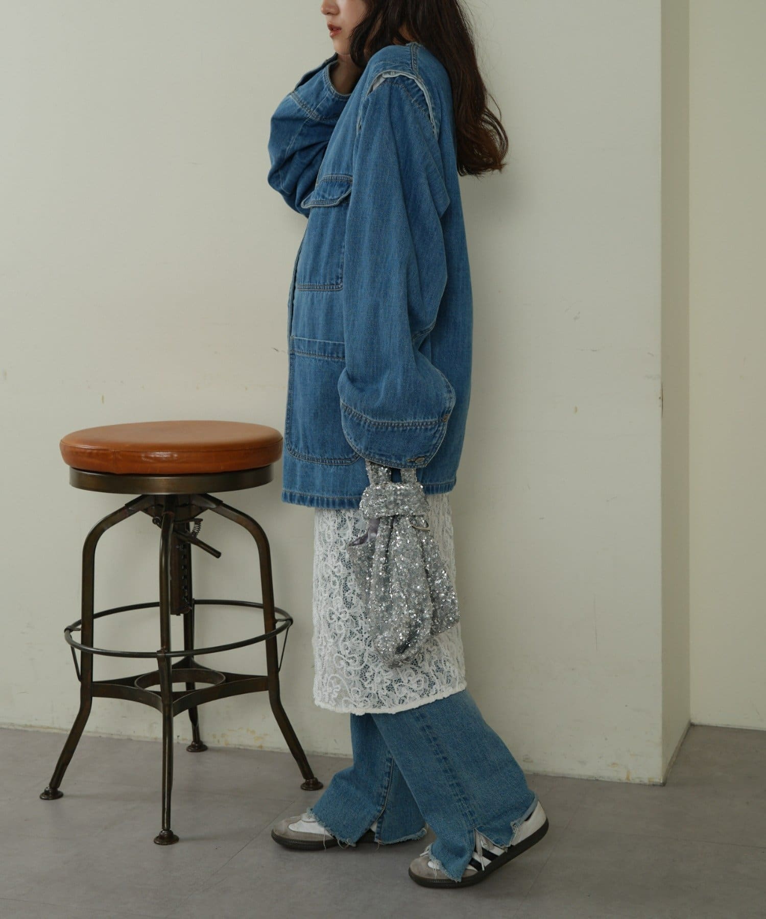 ゆったりとしたシルエットでメンズライクなラフさもありつつ、