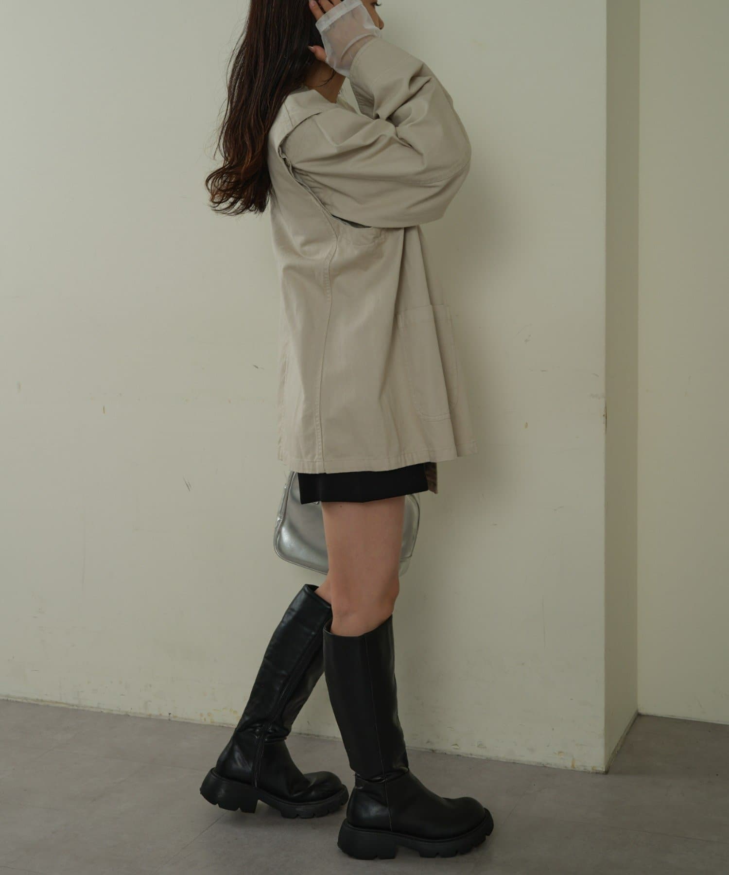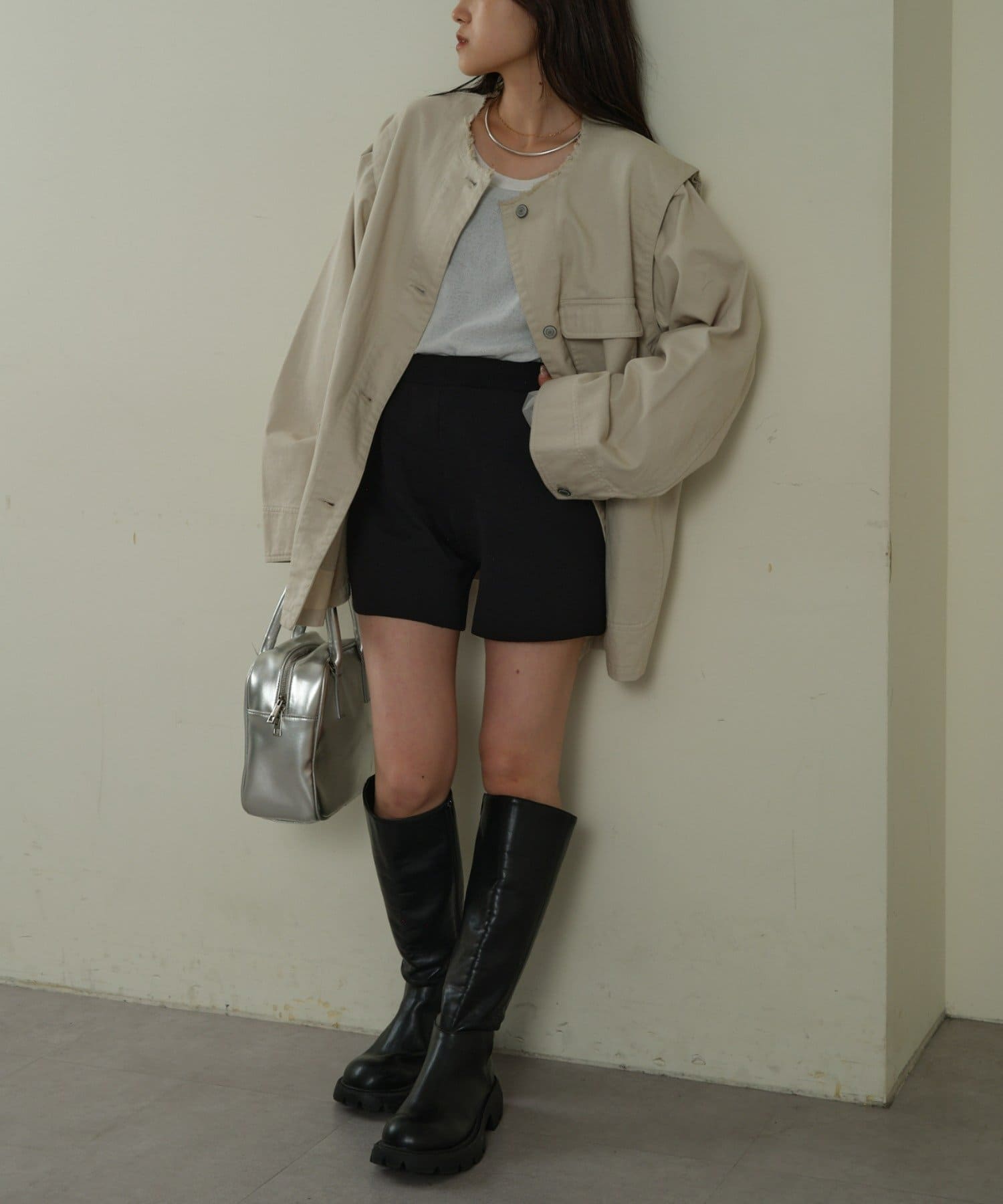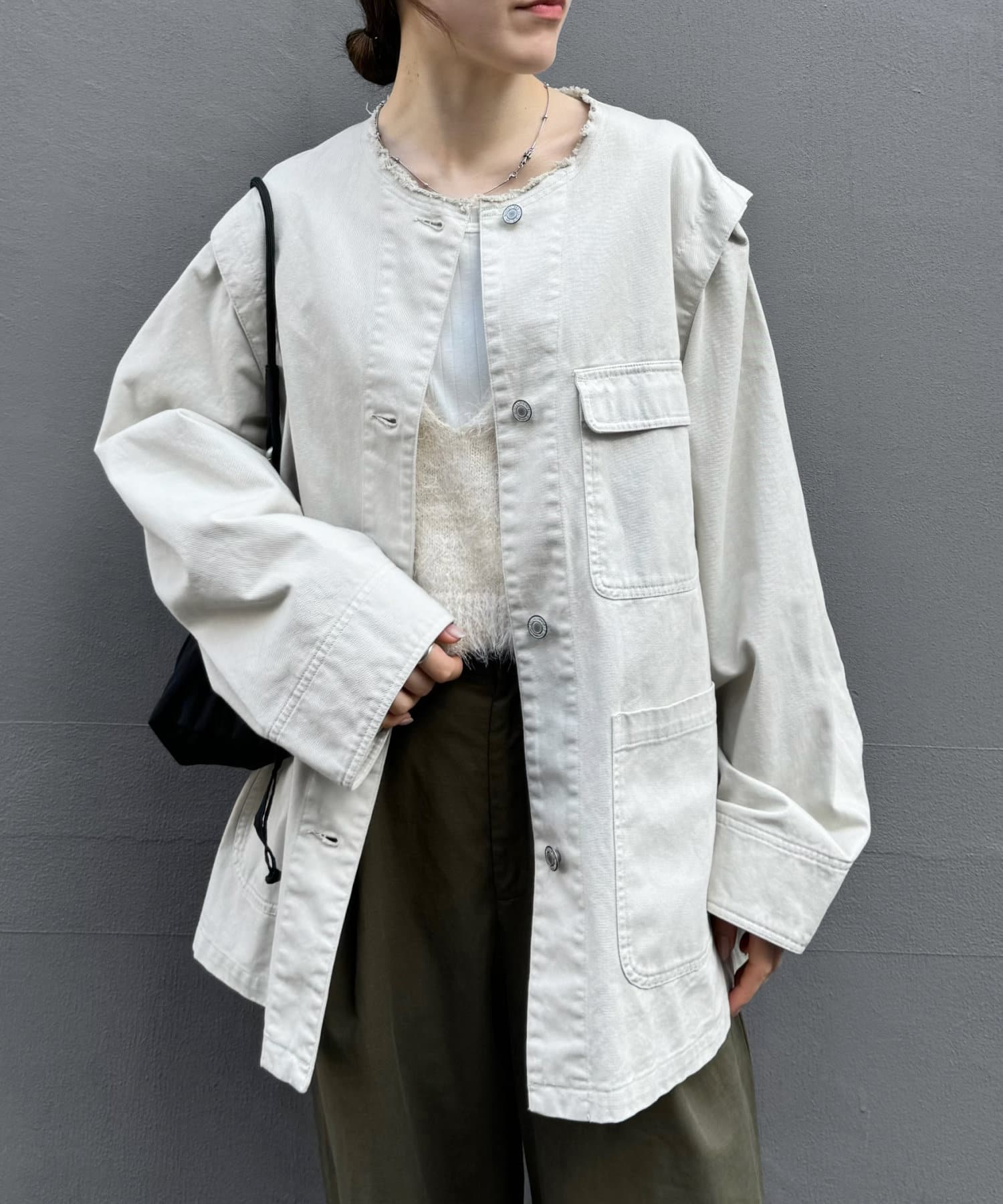 ノーカラーなので、タートルネックとの合わせもおすすめです。