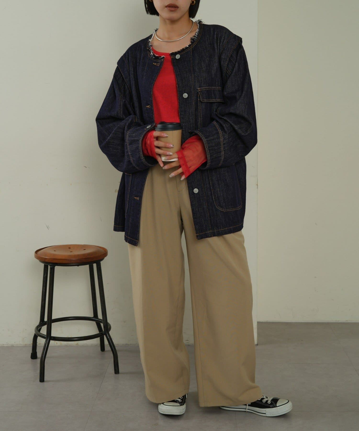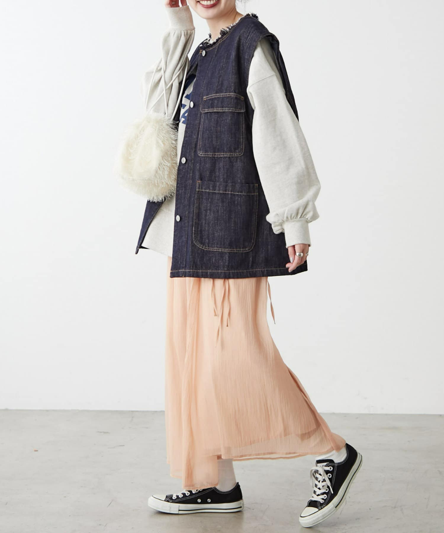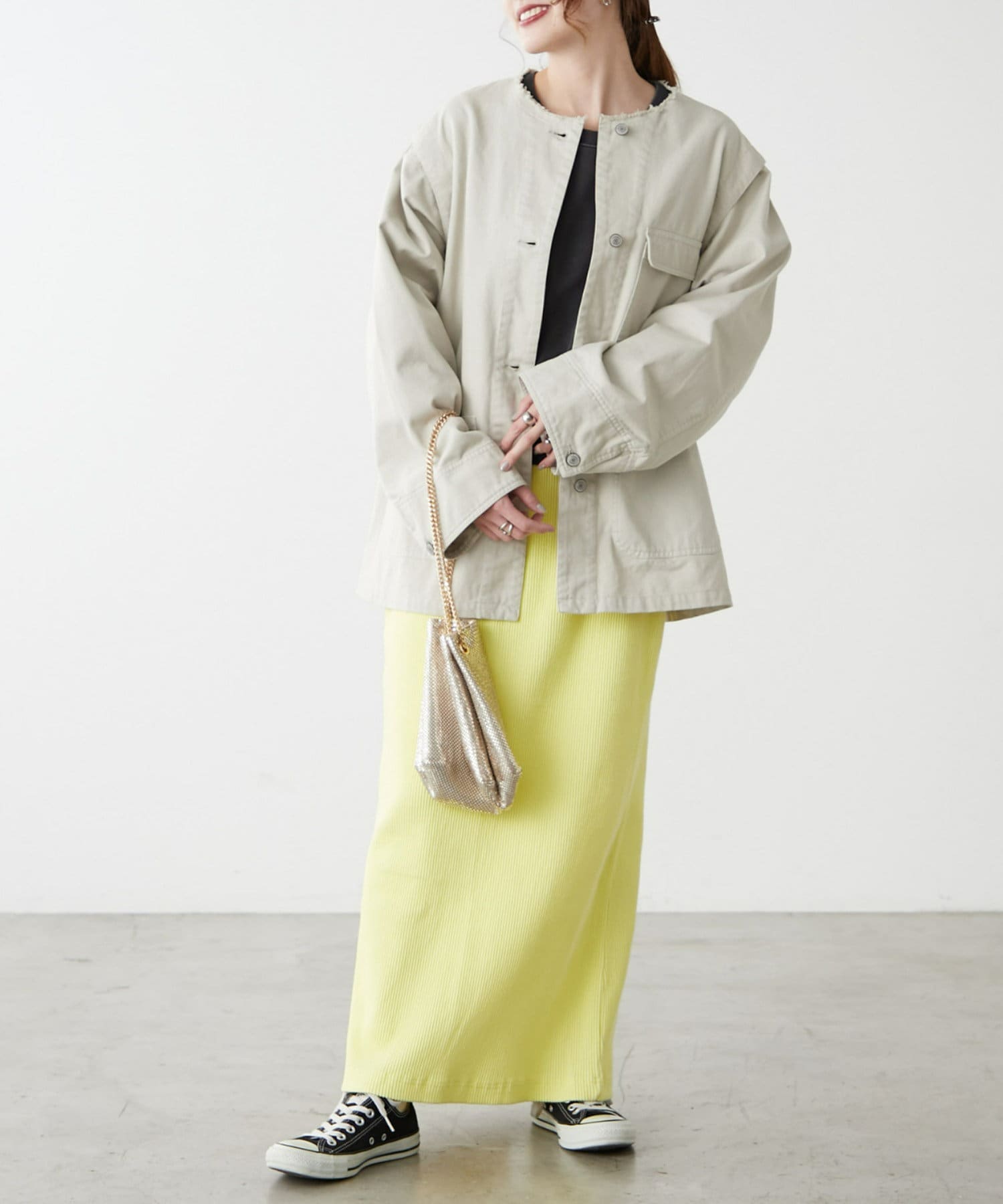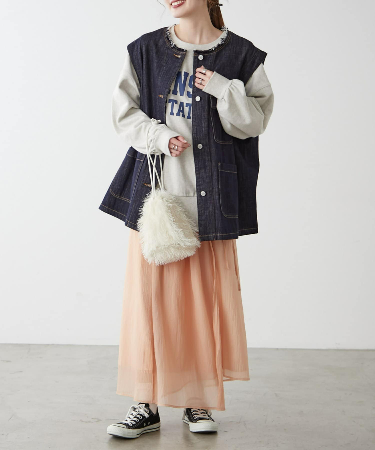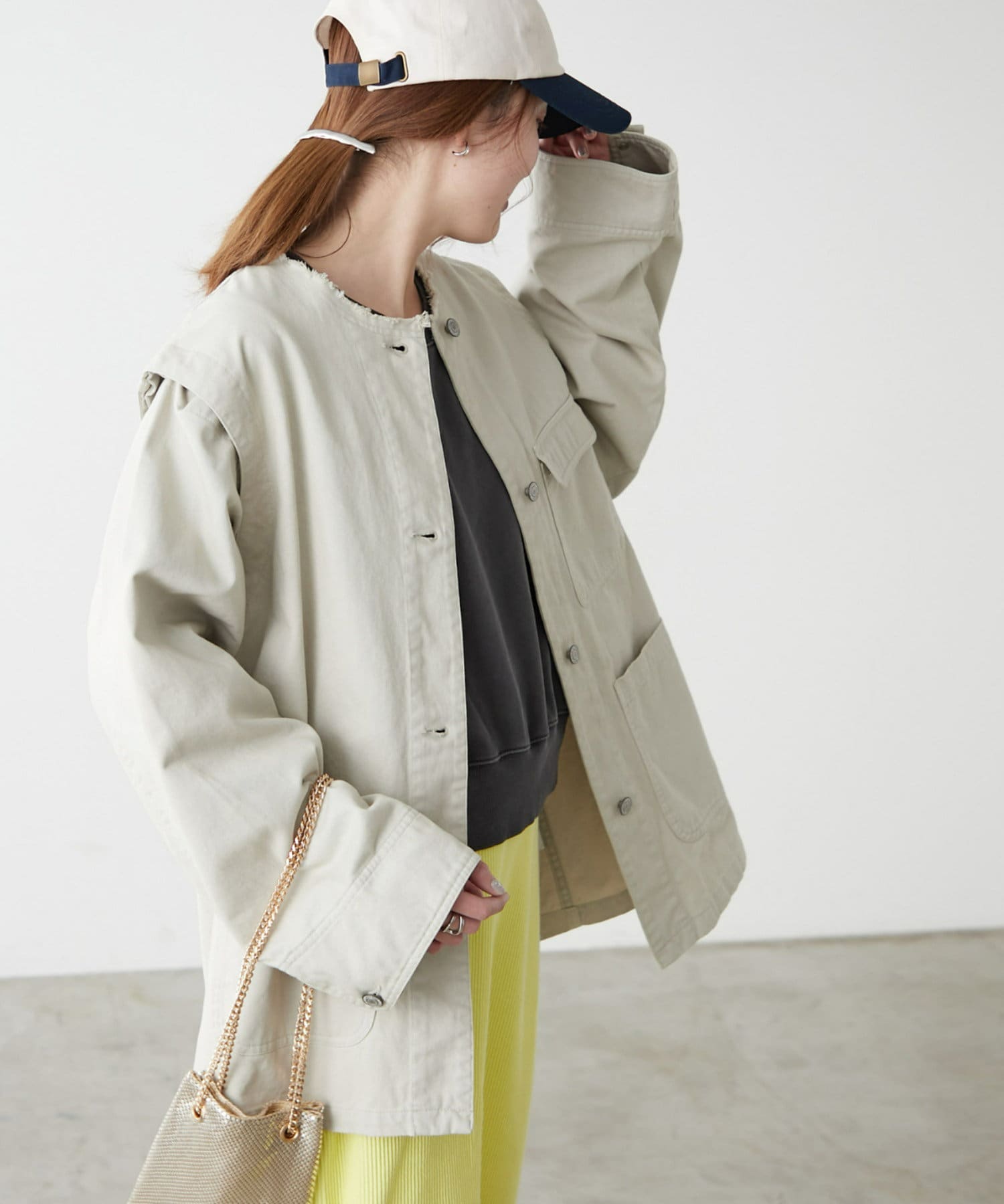 気分や気温によって様々なスタイリングが楽しめます。