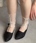 ポインテッドトゥ&上品な輝きのグリッターで大人な印象に。