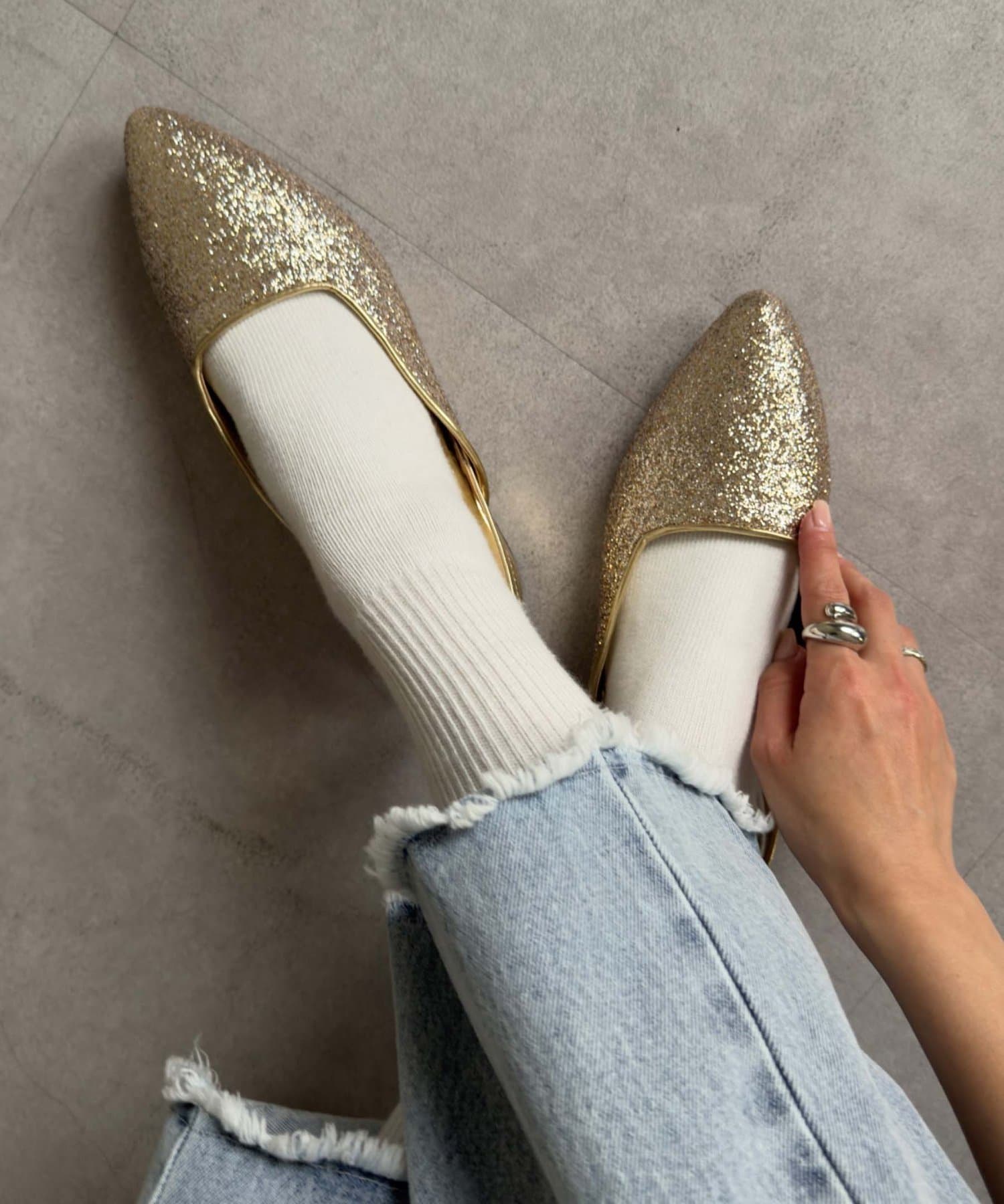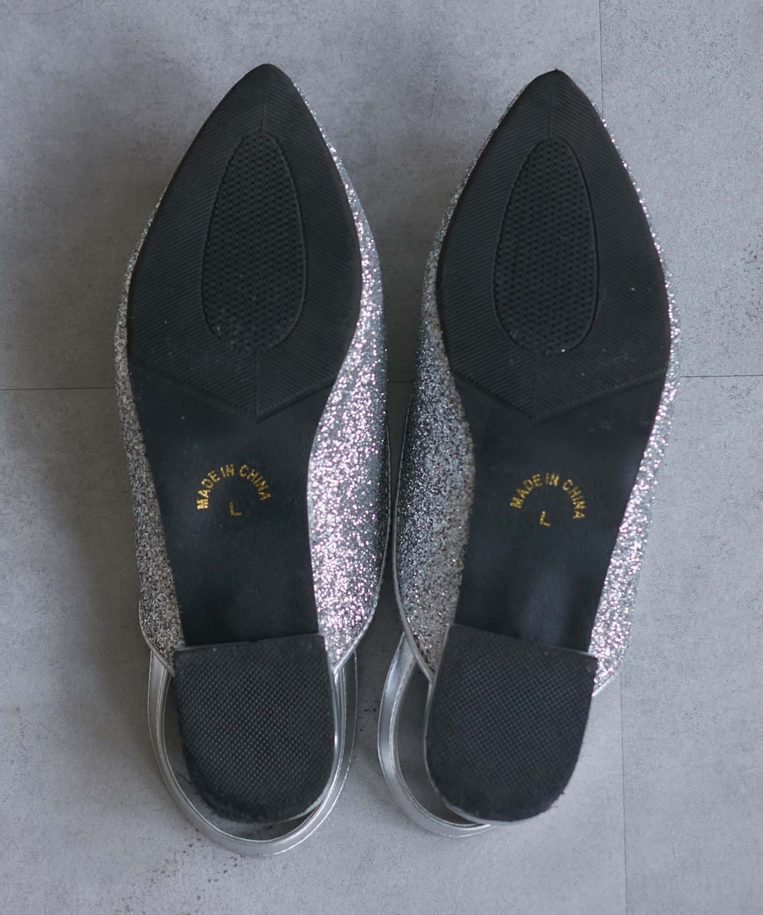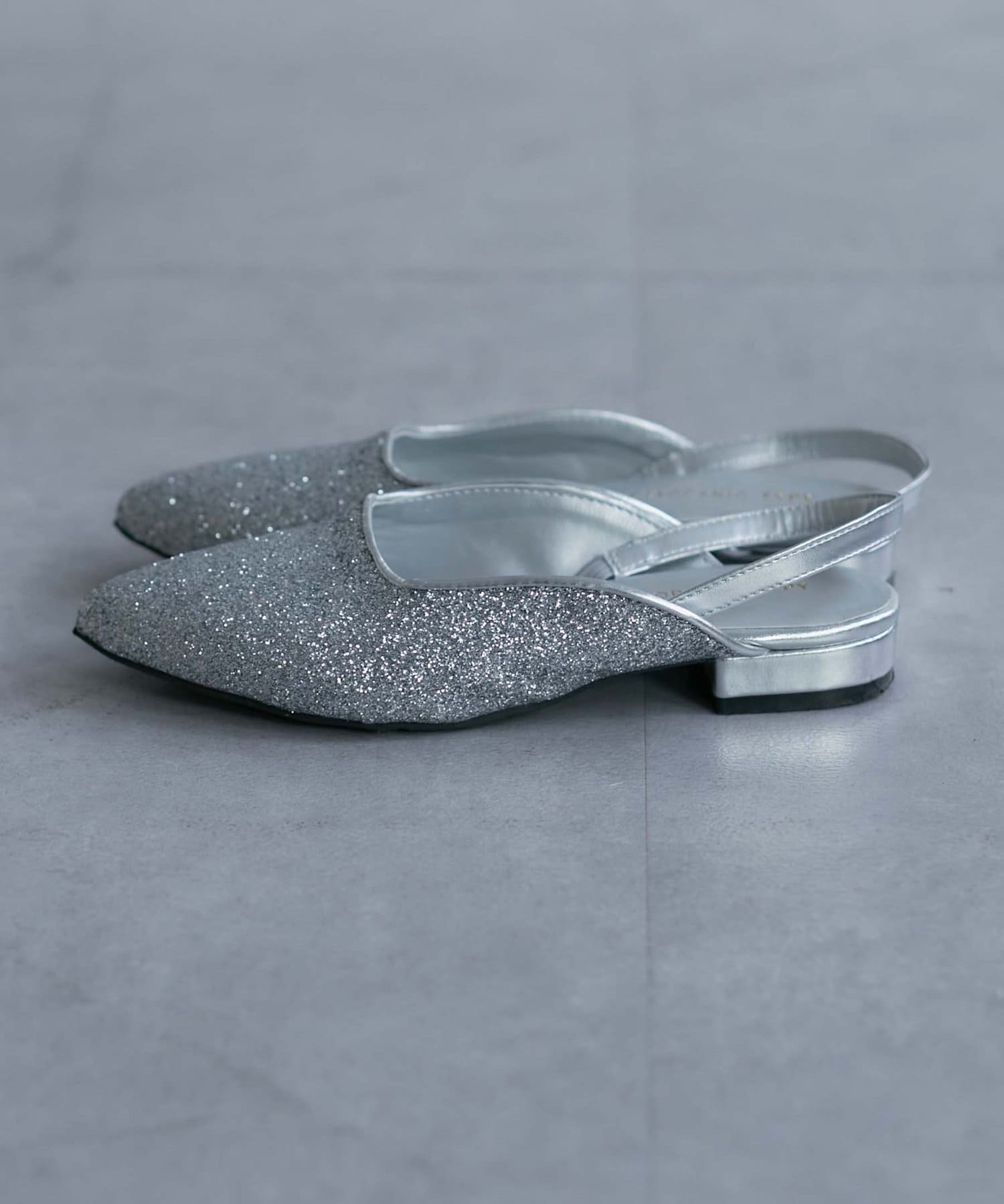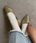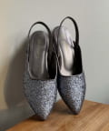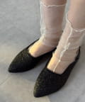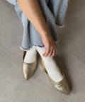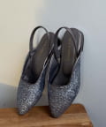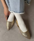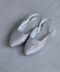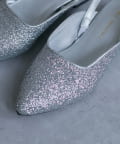 ポインテッドトゥ&上品な輝きのグリッターで大人な印象に。