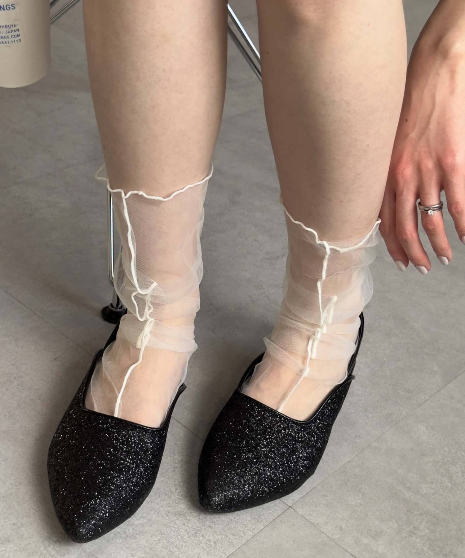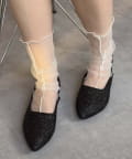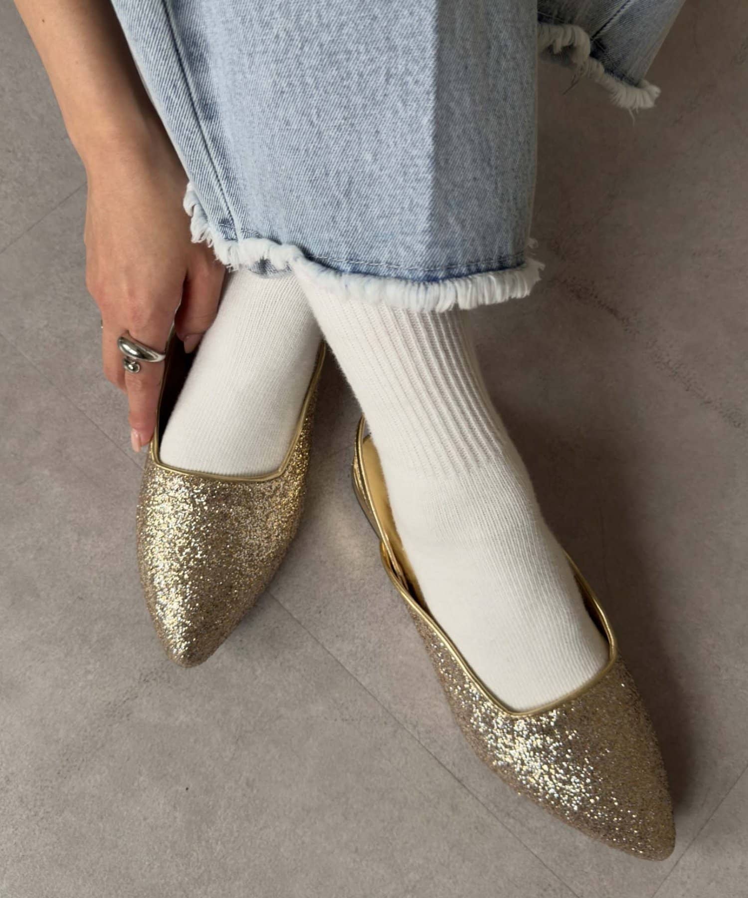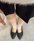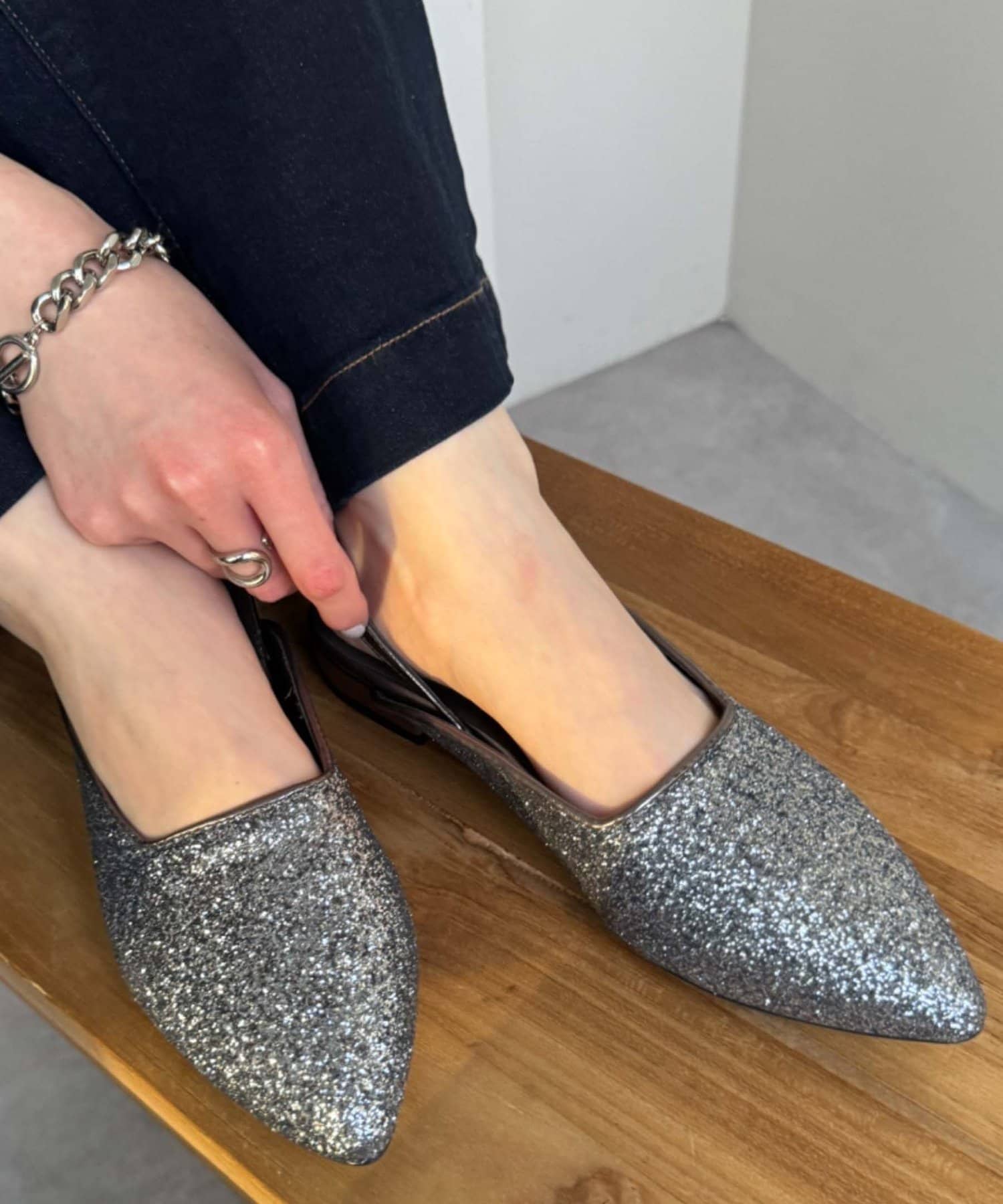 ポインテッドトゥ&上品な輝きのグリッターで大人な印象に。