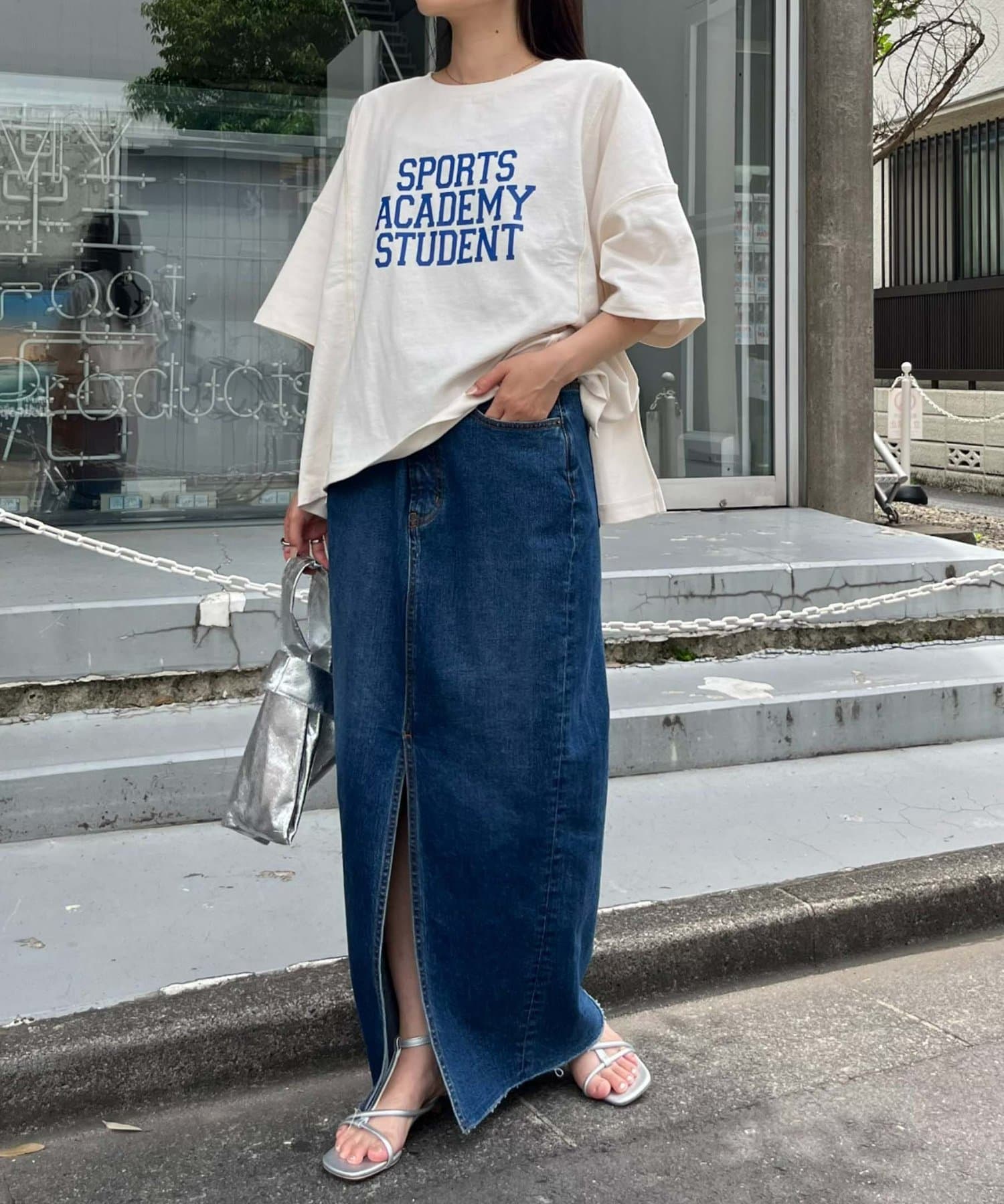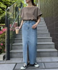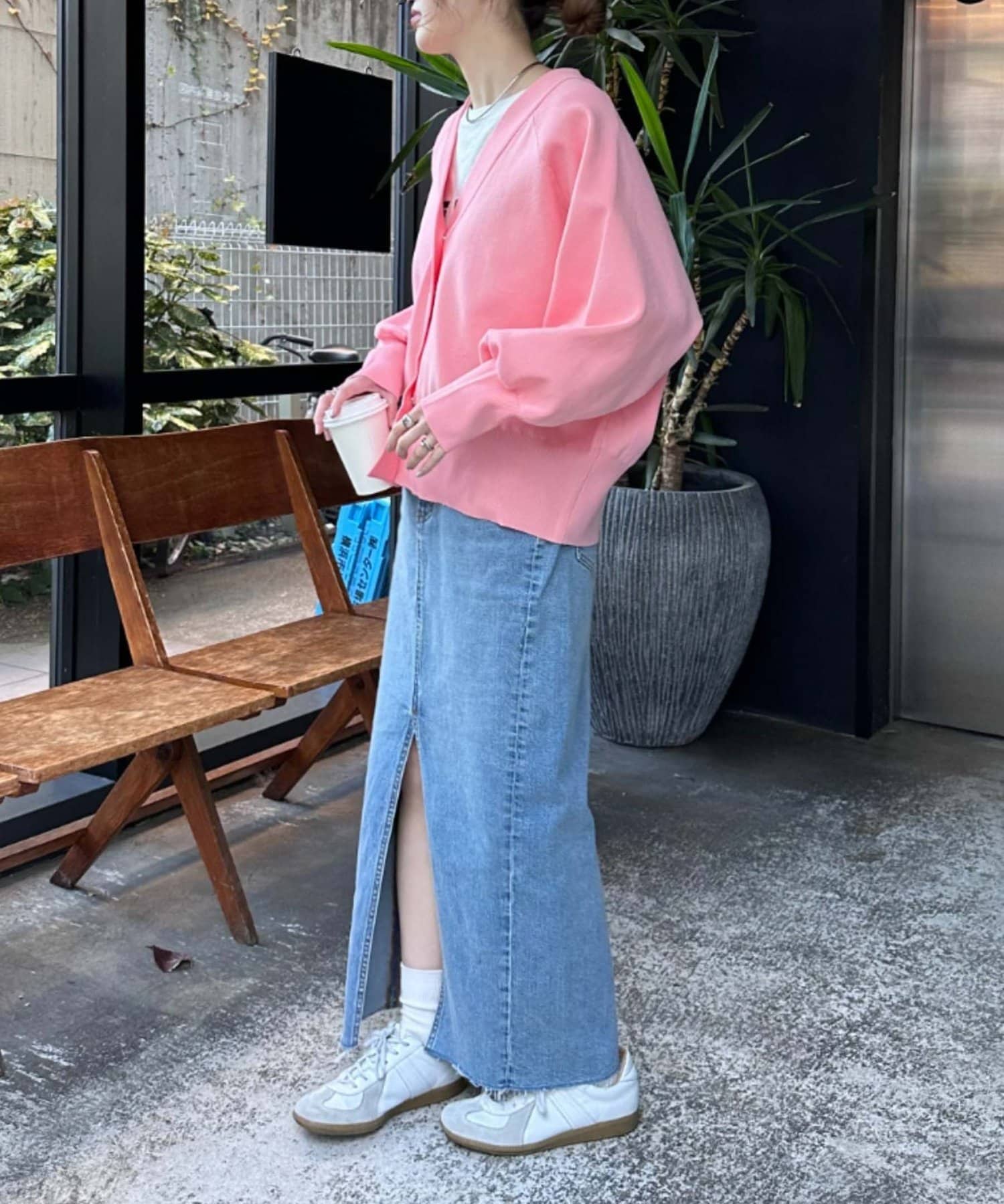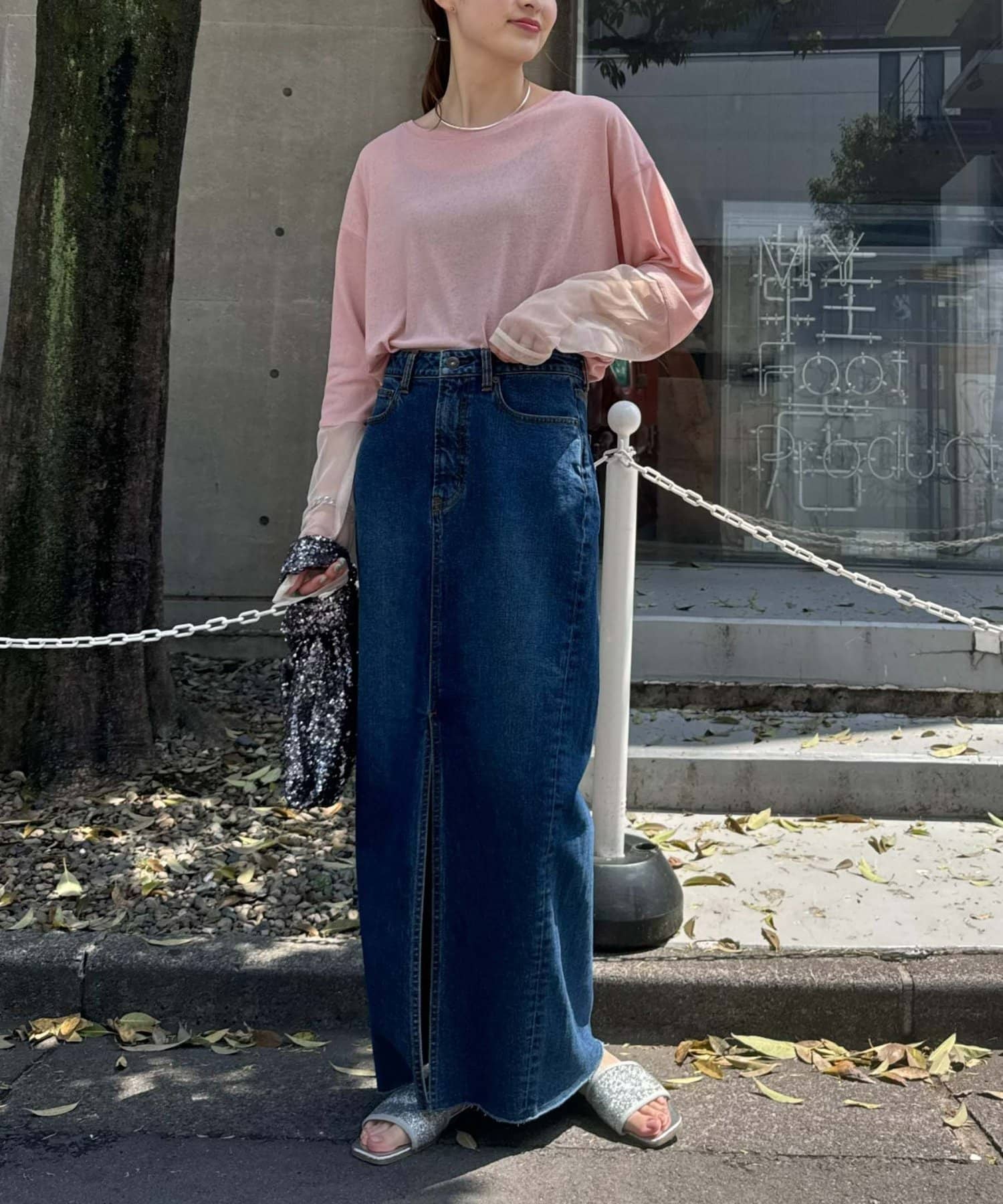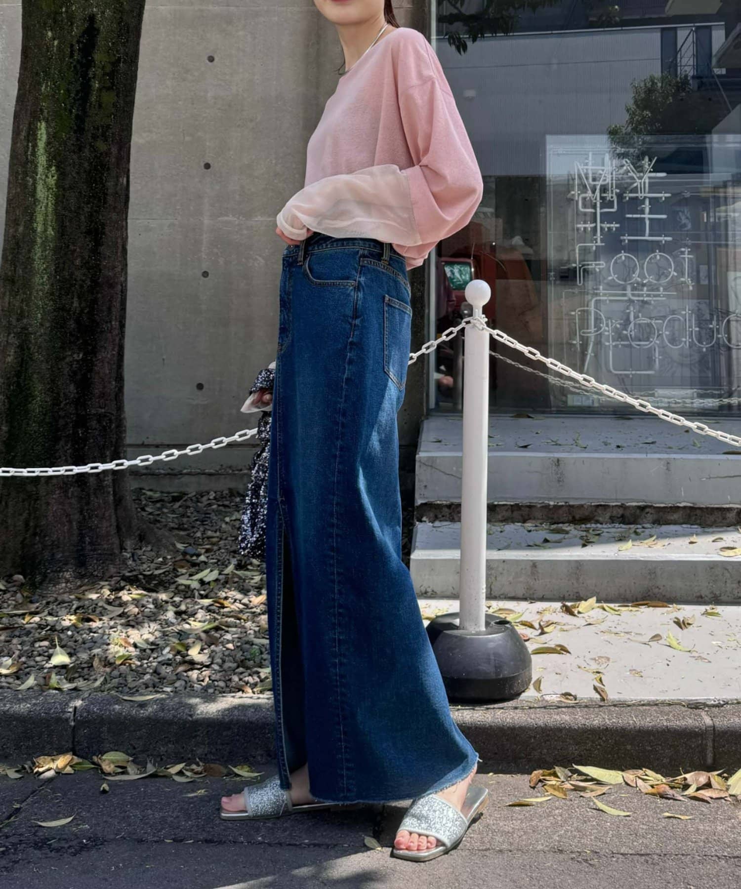 フロントの深スリットでこなれた印象に見せつつ、足さばきも楽々です。