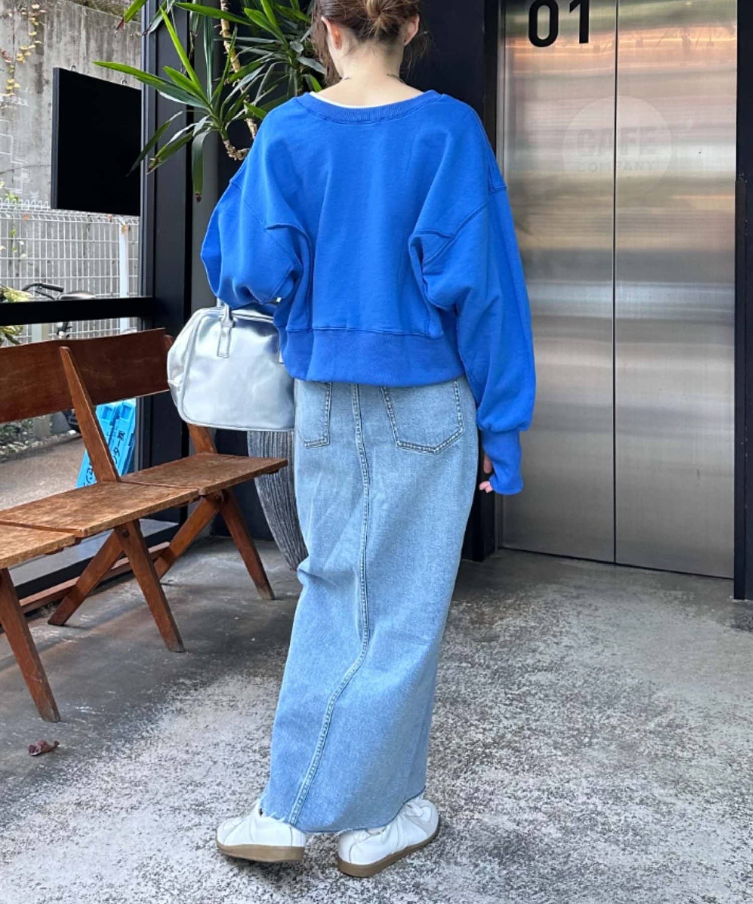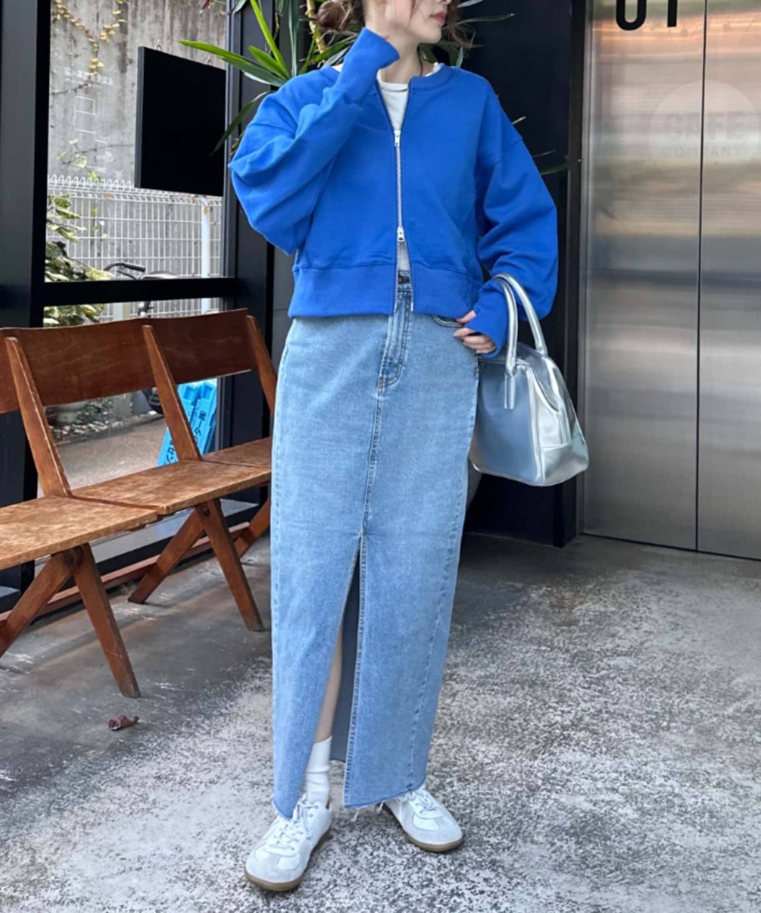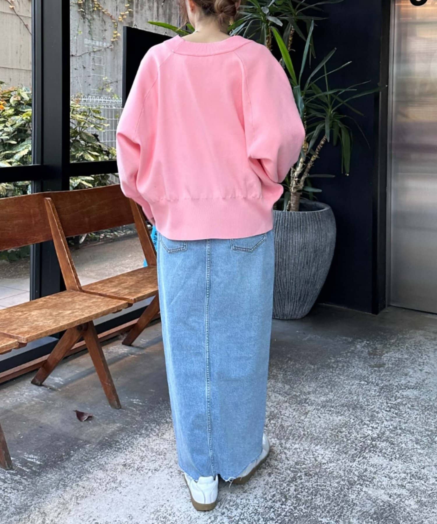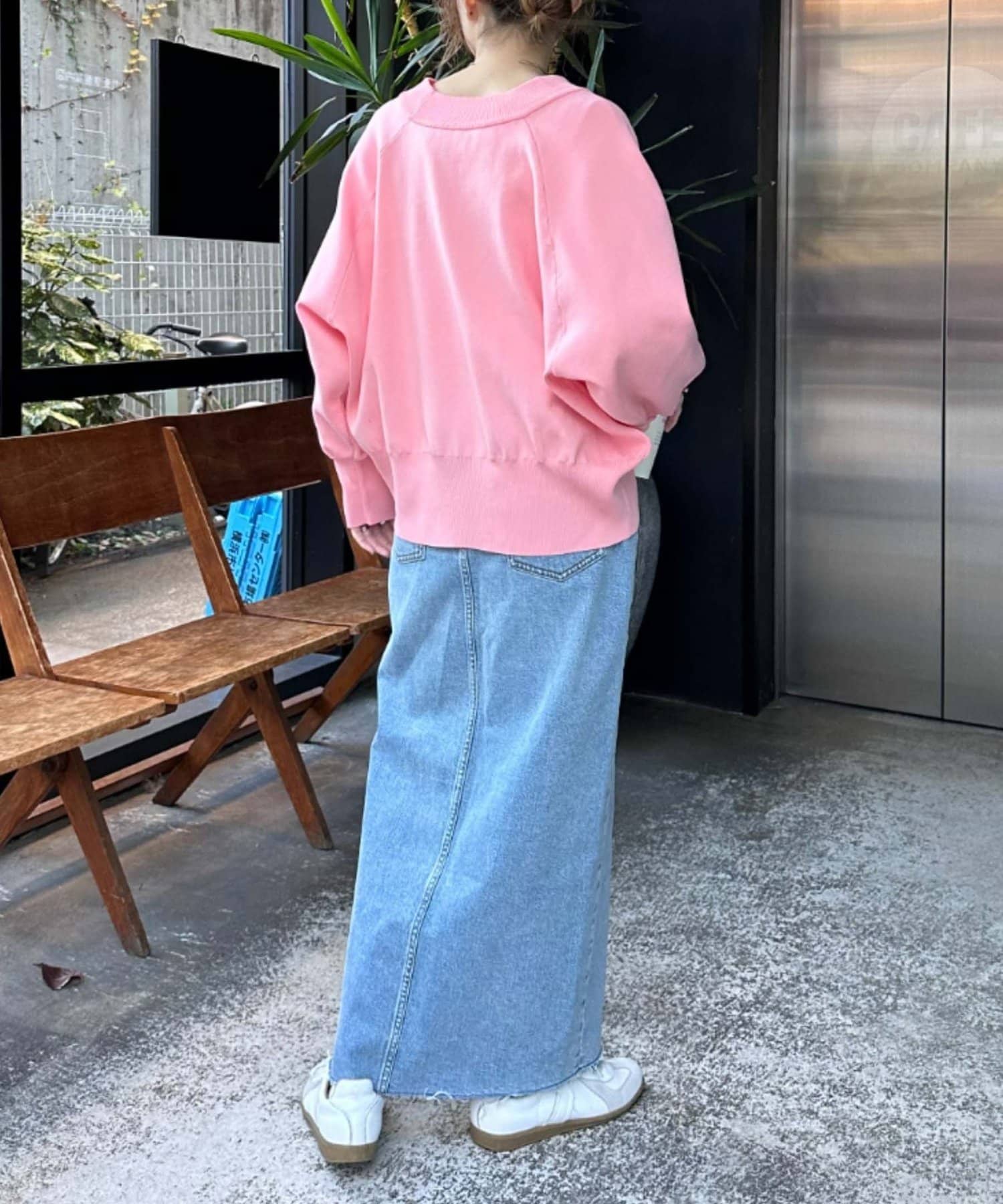 フロントの深スリットでこなれた印象に見せつつ、足さばきも楽々です。