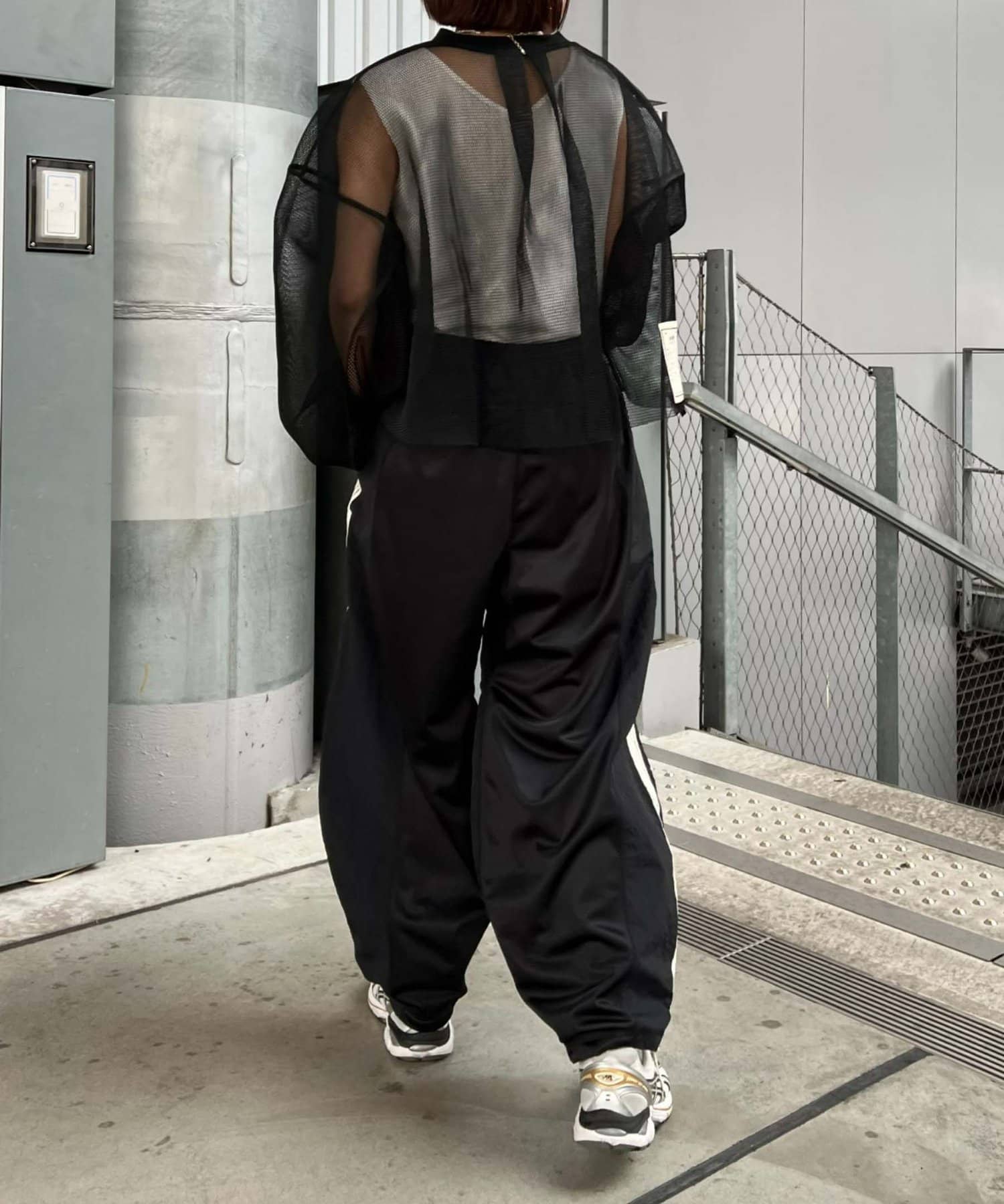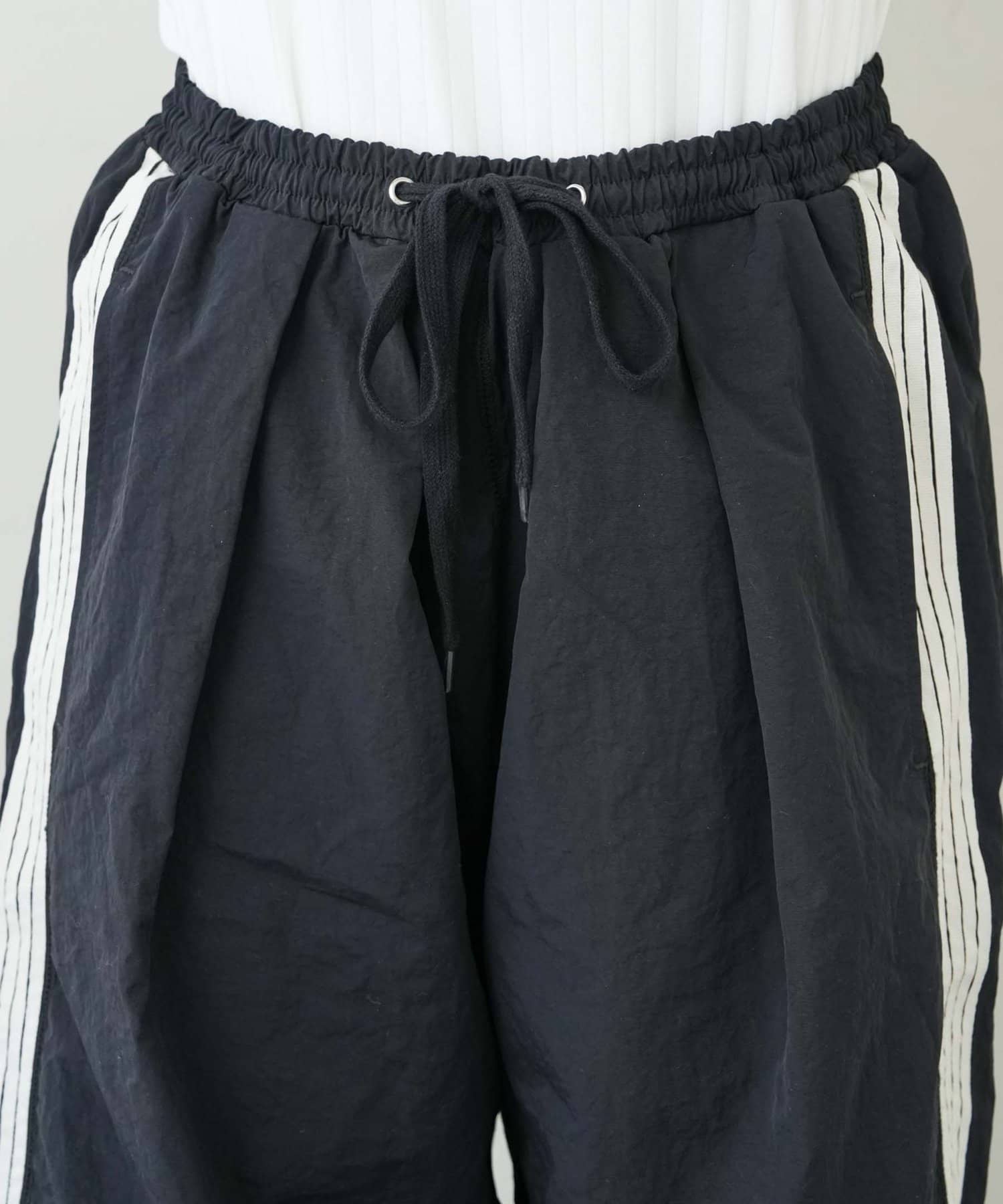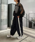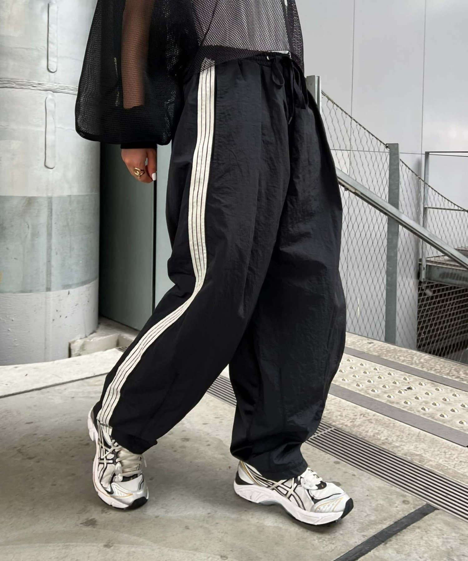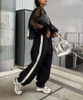 縦のラインが入っていることにより、ワイドシルエットでもすっきりと見せてくれるので、