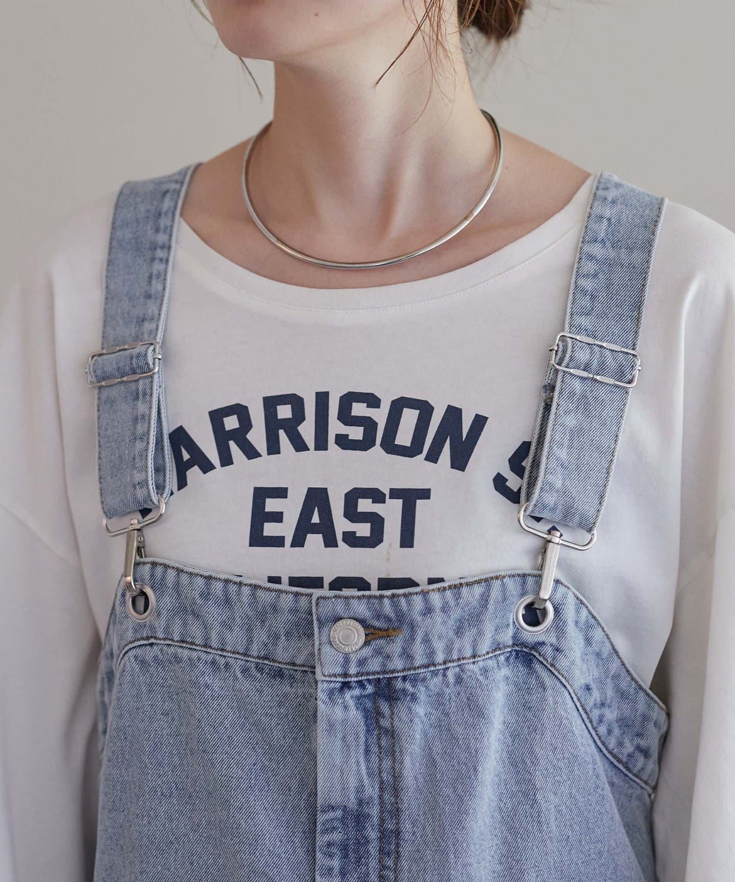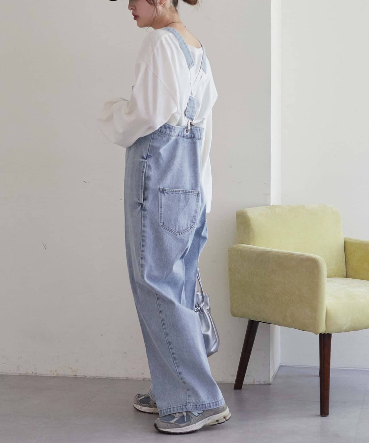 子供っぽくなりがちなサロペットでもこなれ感を演出してくれます。
