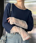 チュール素材の切り替えデザインを施し、周りと差が付くこなれた雰囲気に!