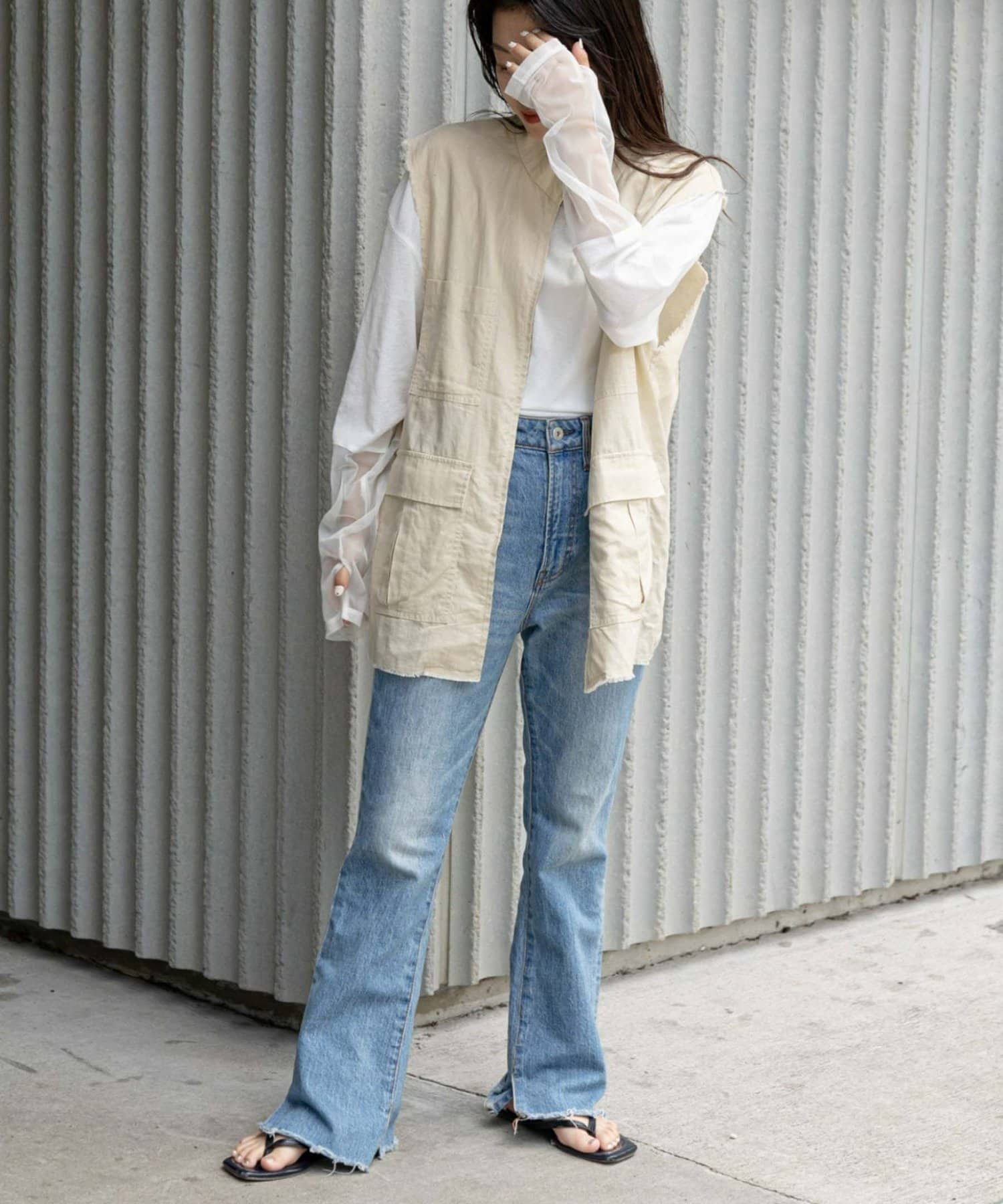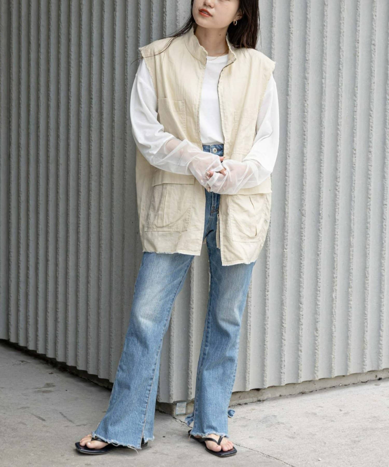 キャミワンピースやサロペットと合わせると今年らしいスタイリングに◎