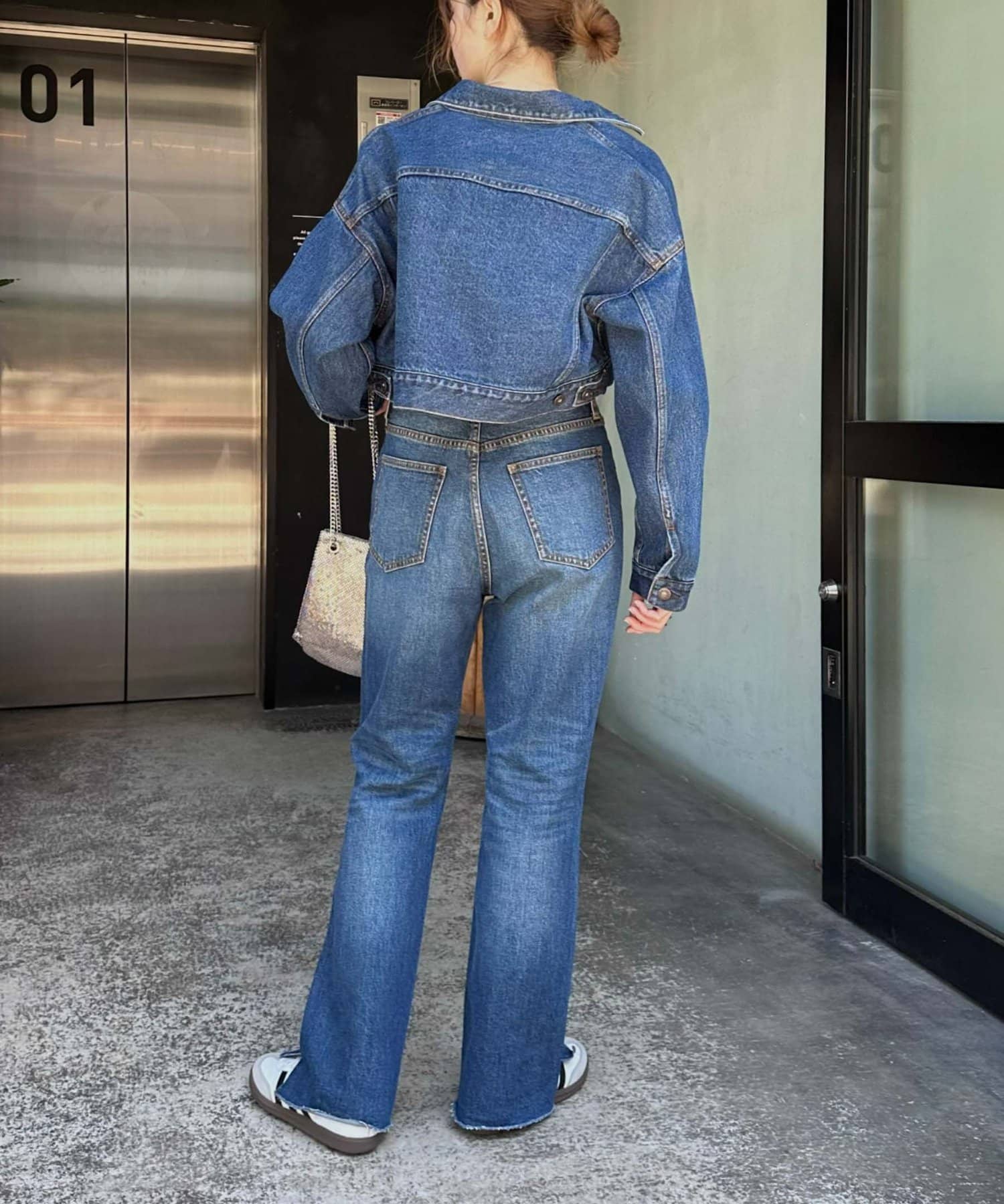 同素材のケリーとセットで旬なデニムオンデニムの着こなしもかわいいです。