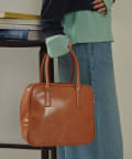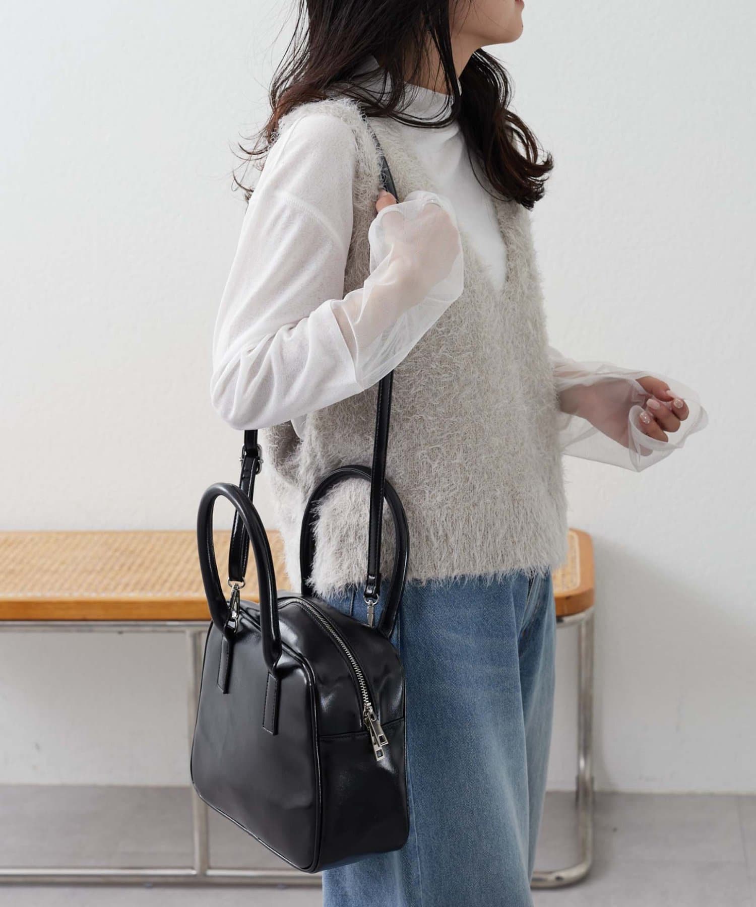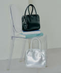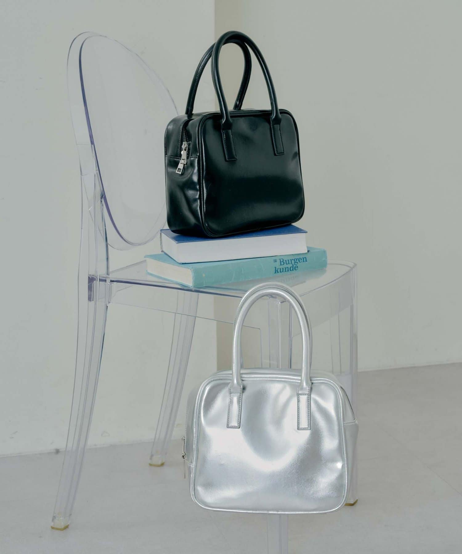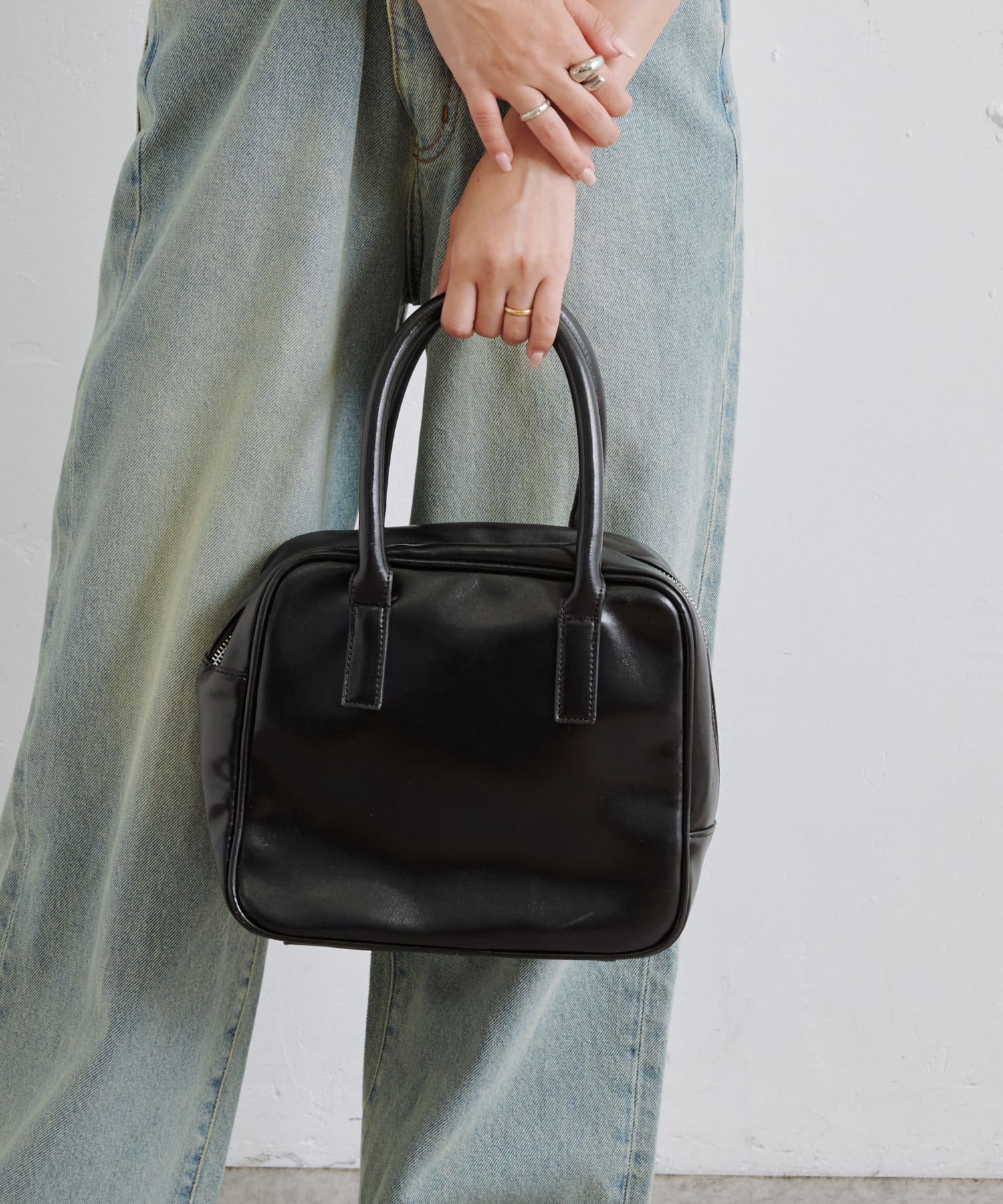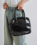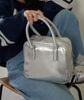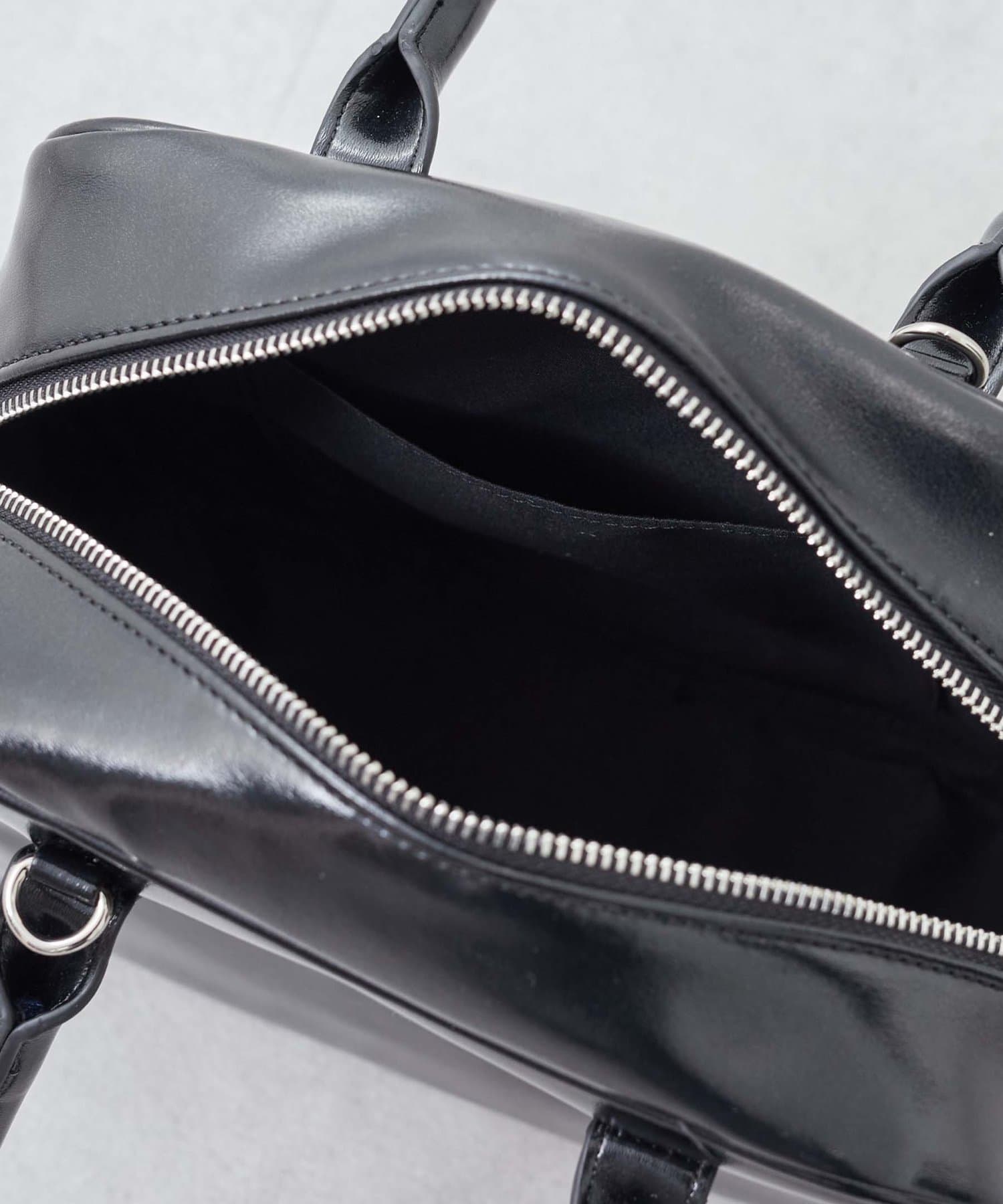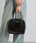 コーデをクラシカルな印象に格上げするエナメル素材を使用。