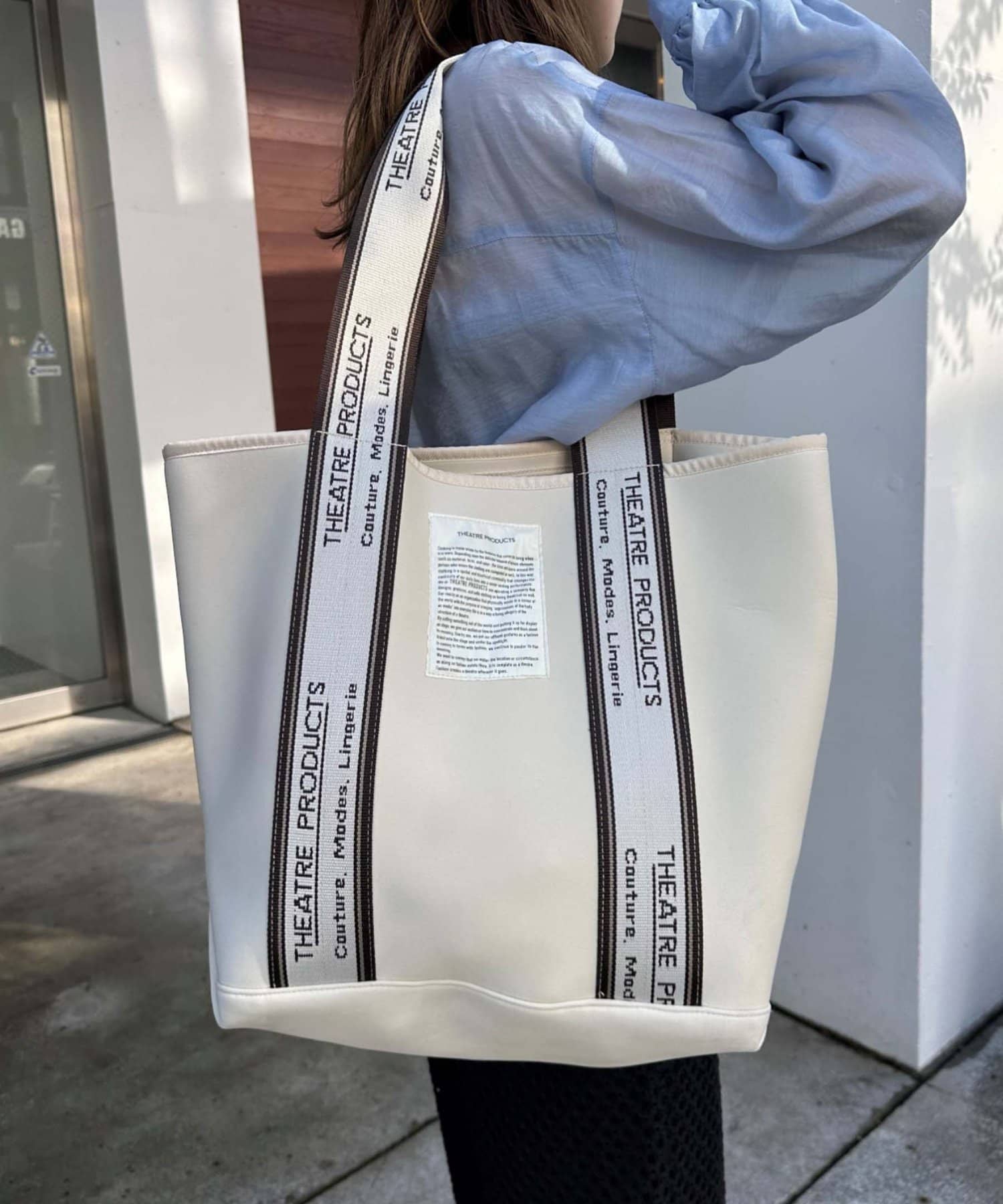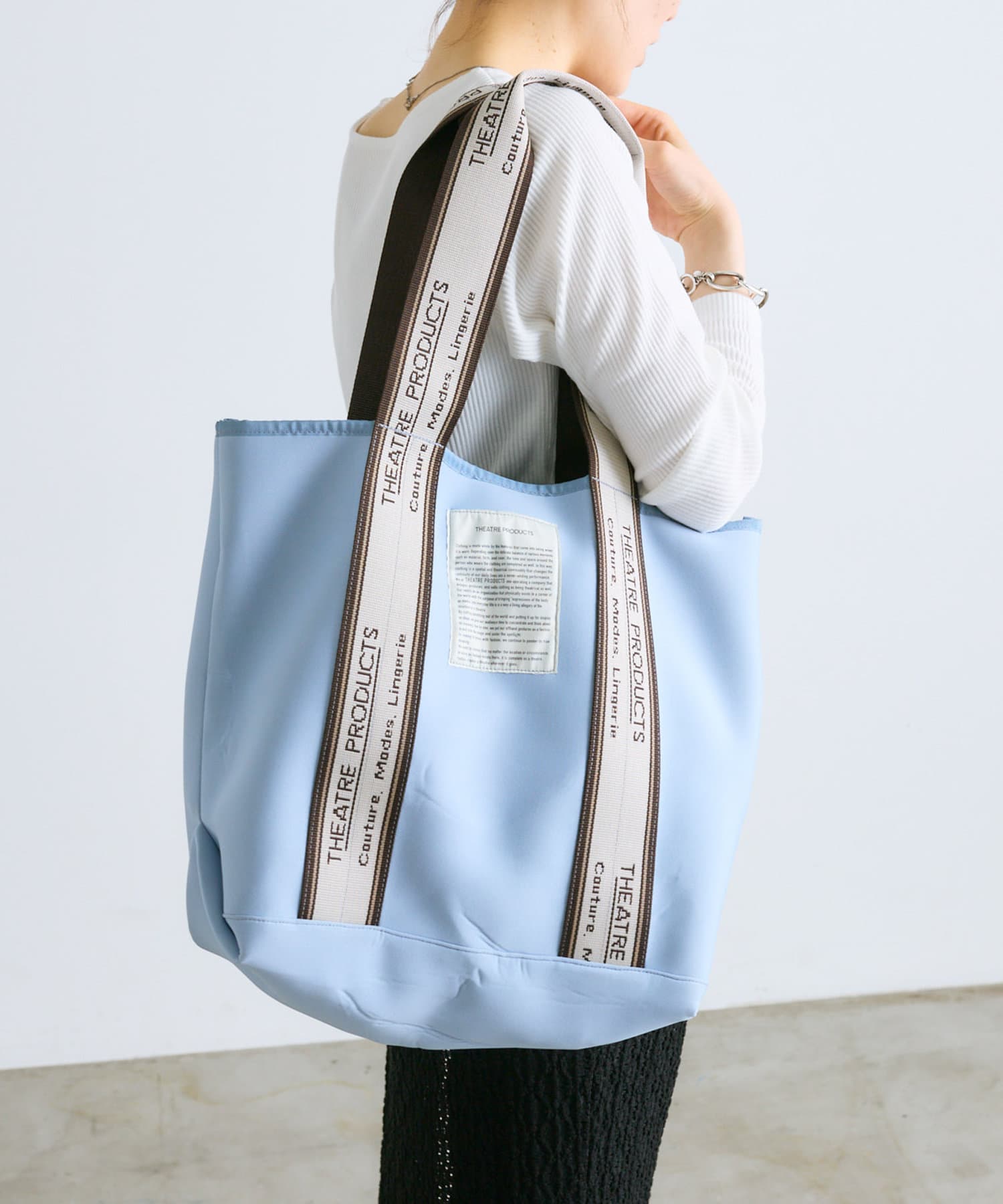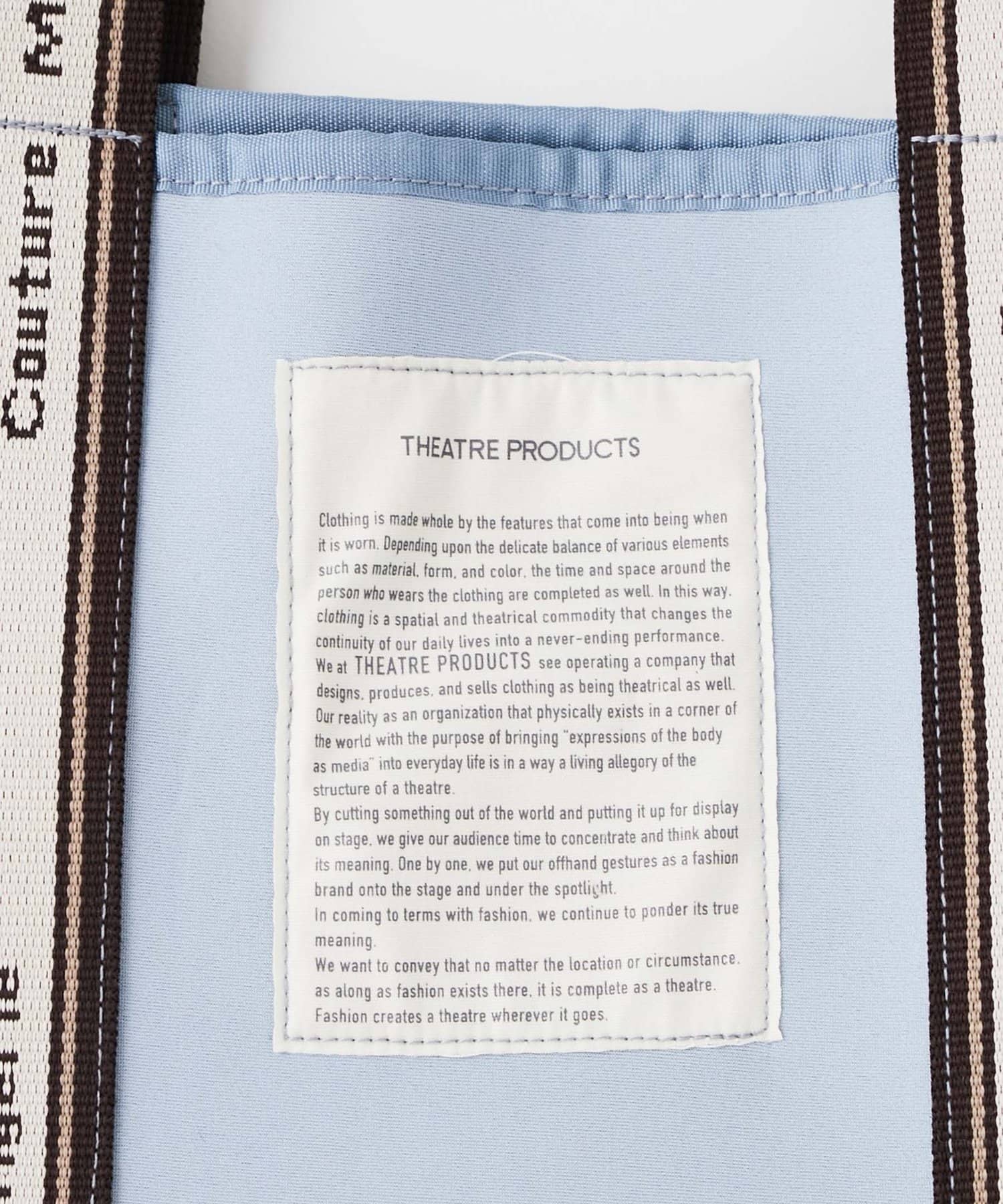 シアタープロダクツ定番のジャガードテープが目を惹くトートバッグ。