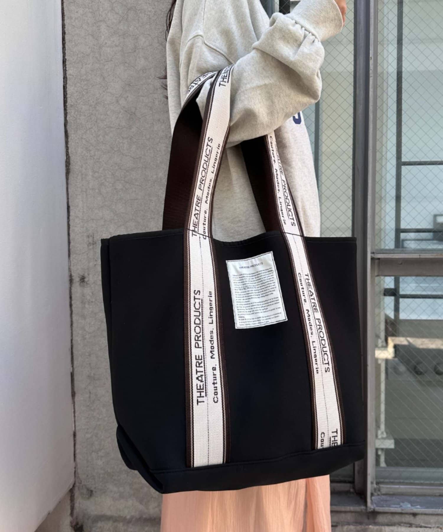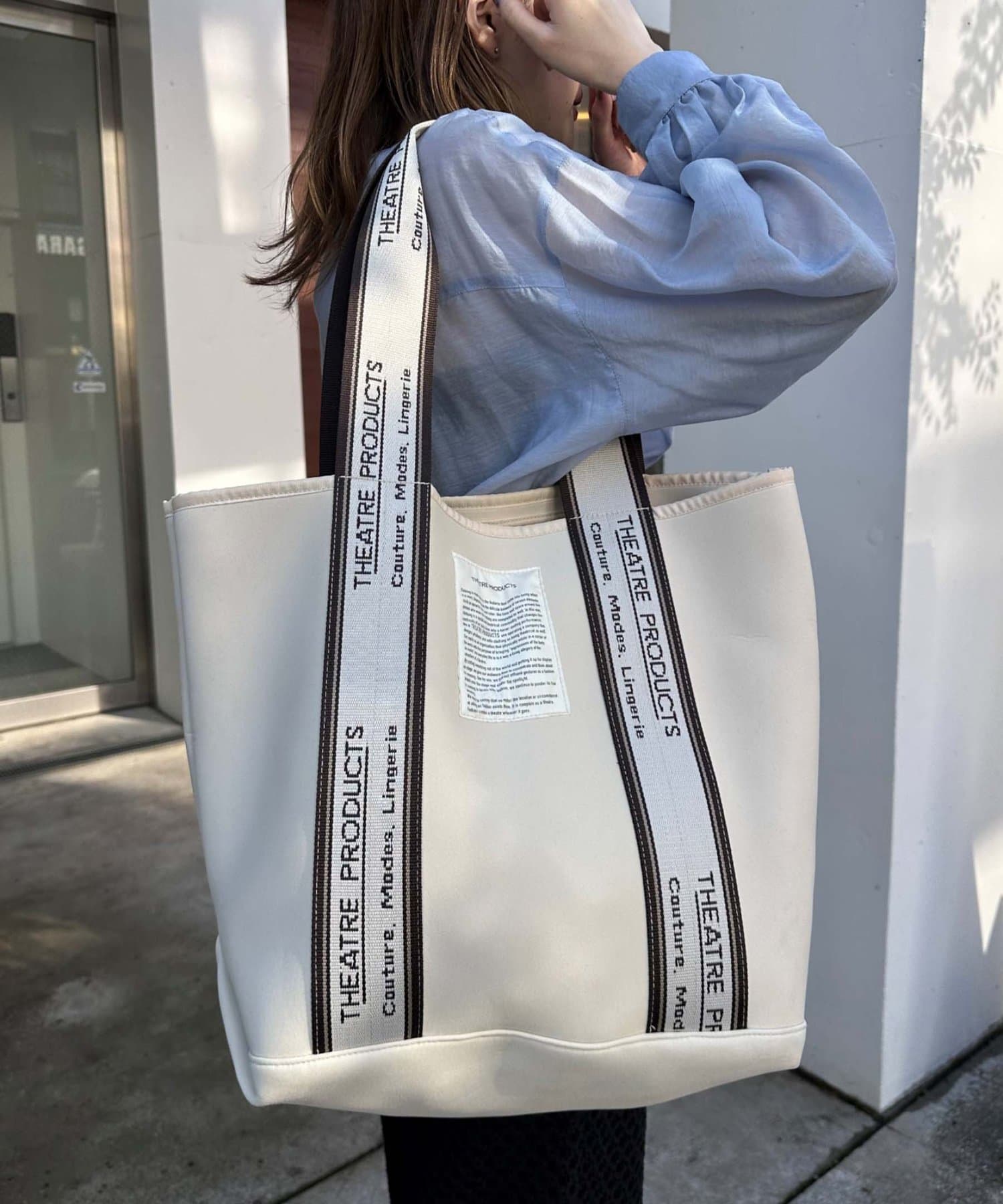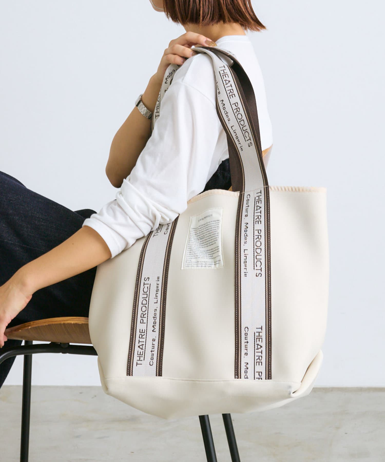 シアタープロダクツ定番のジャガードテープが目を惹くトートバッグ。