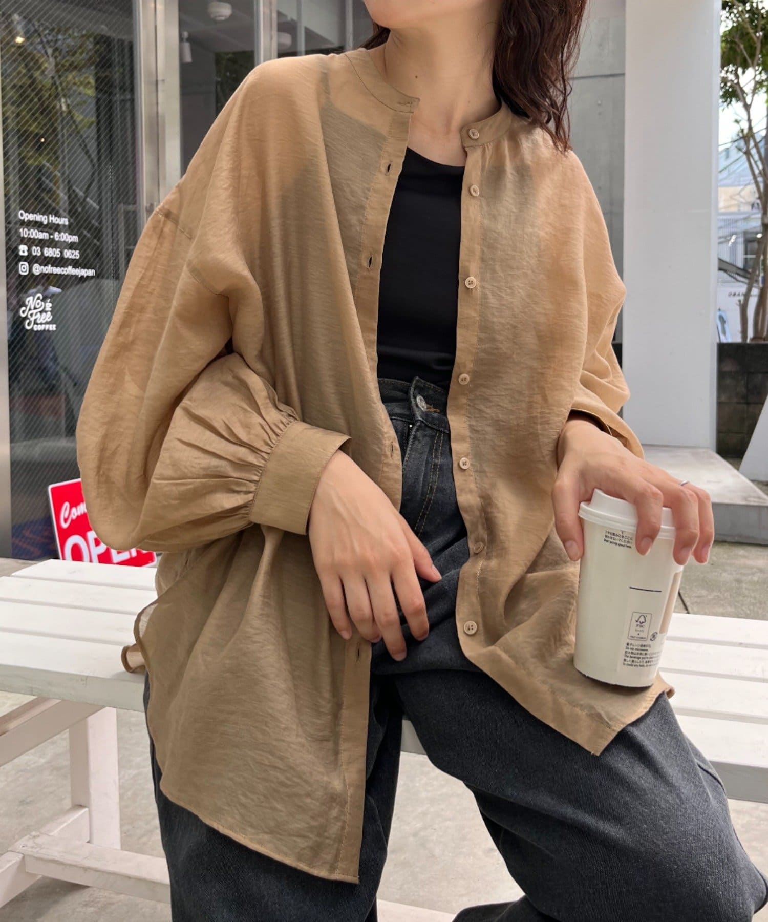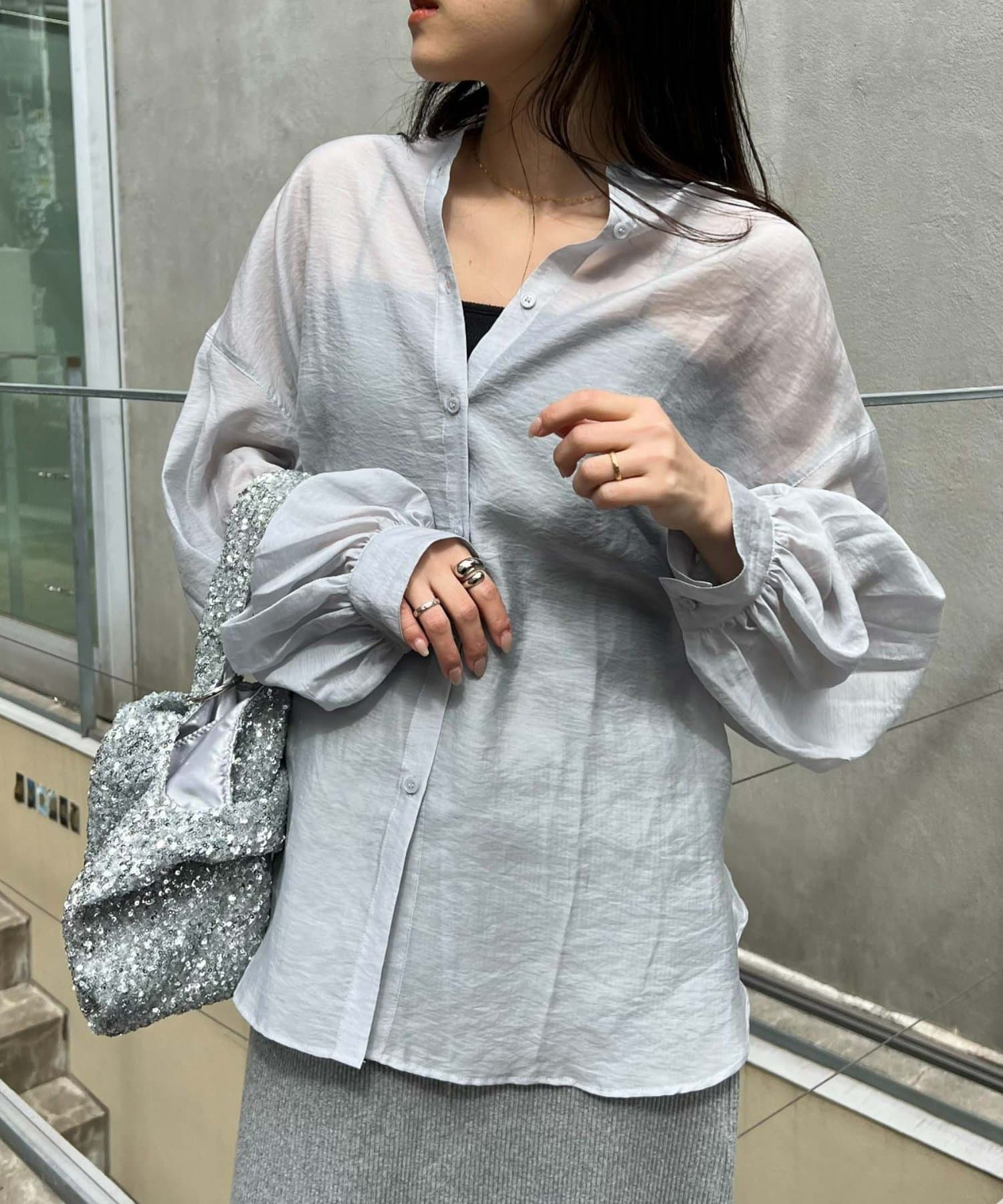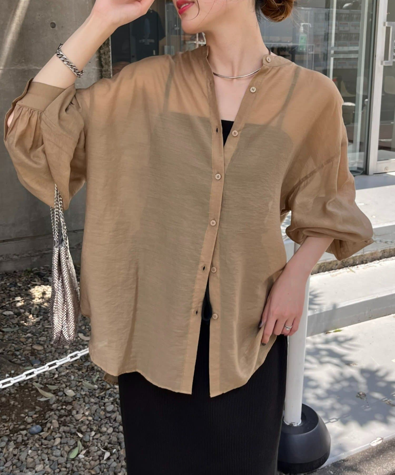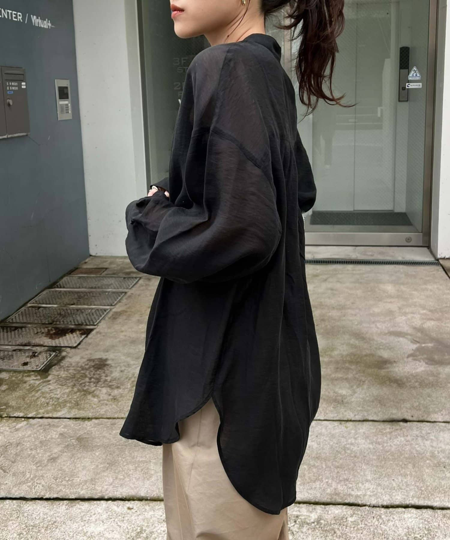 【累計販売数1万枚突破/程よい透け感】シアーバンドカラーシャツ