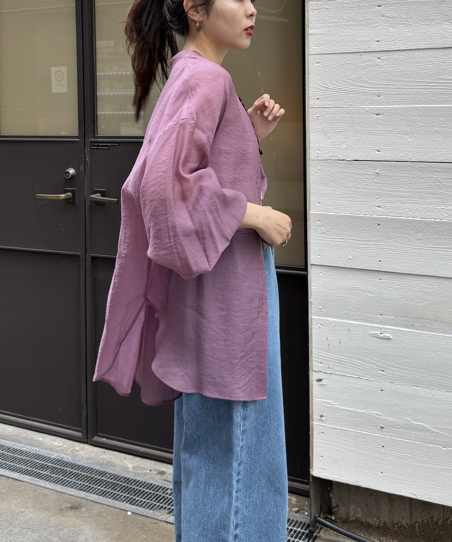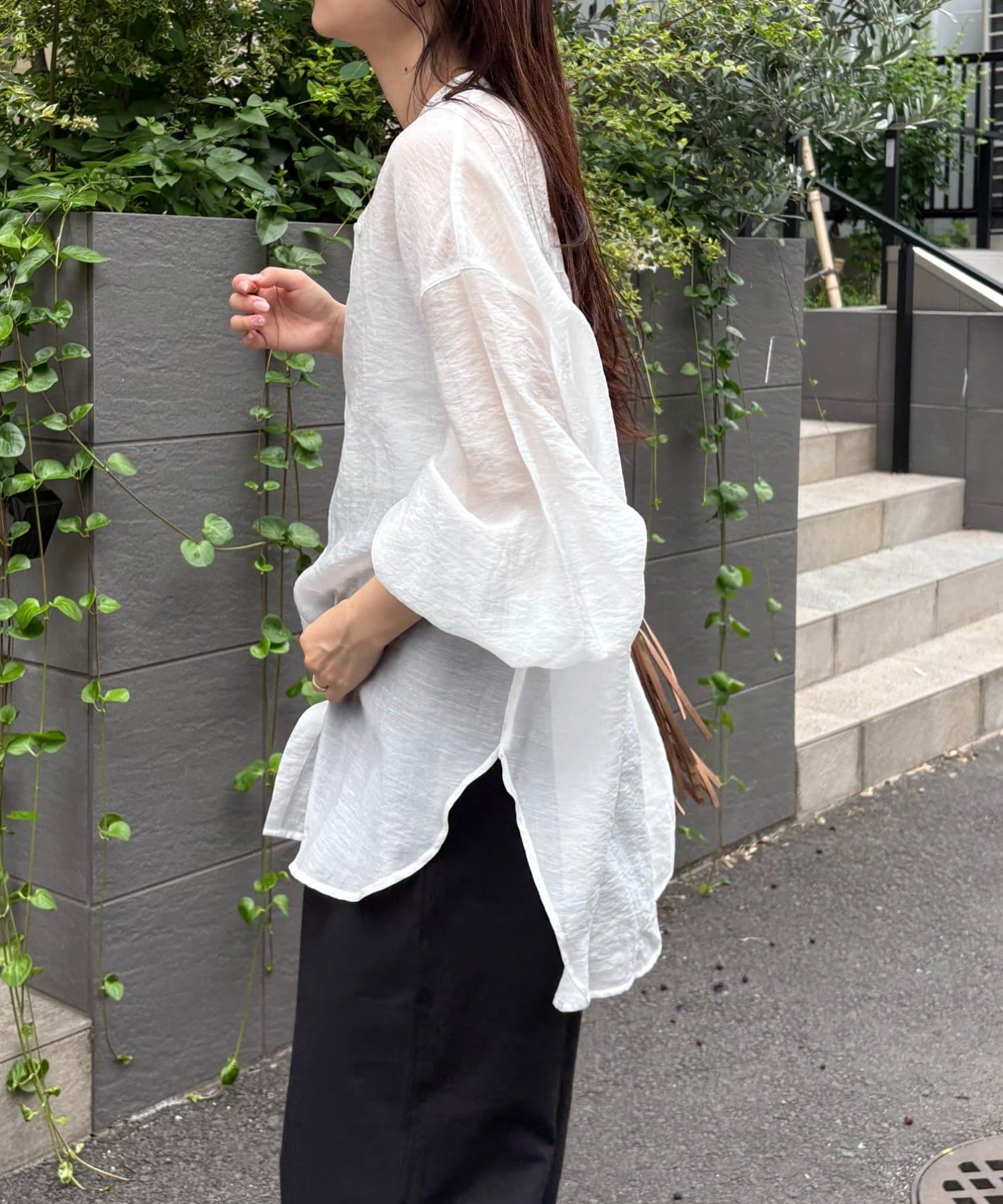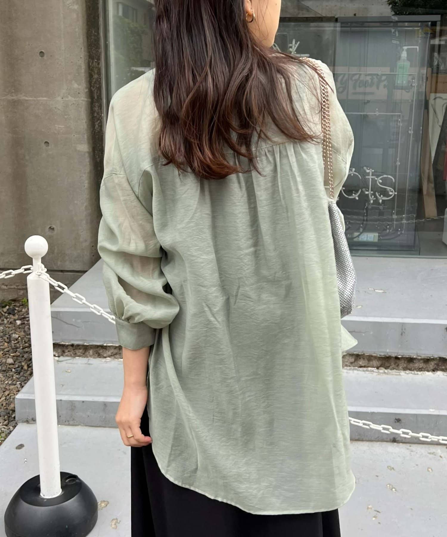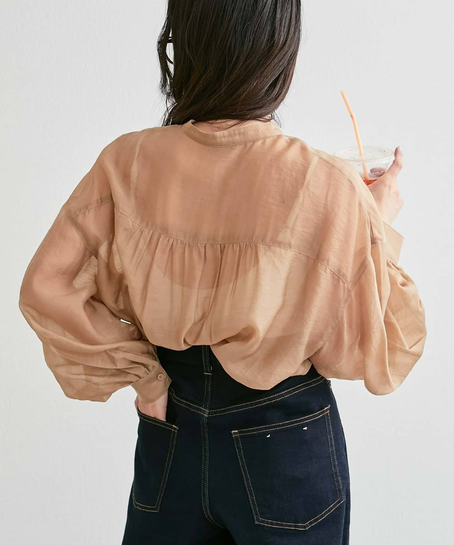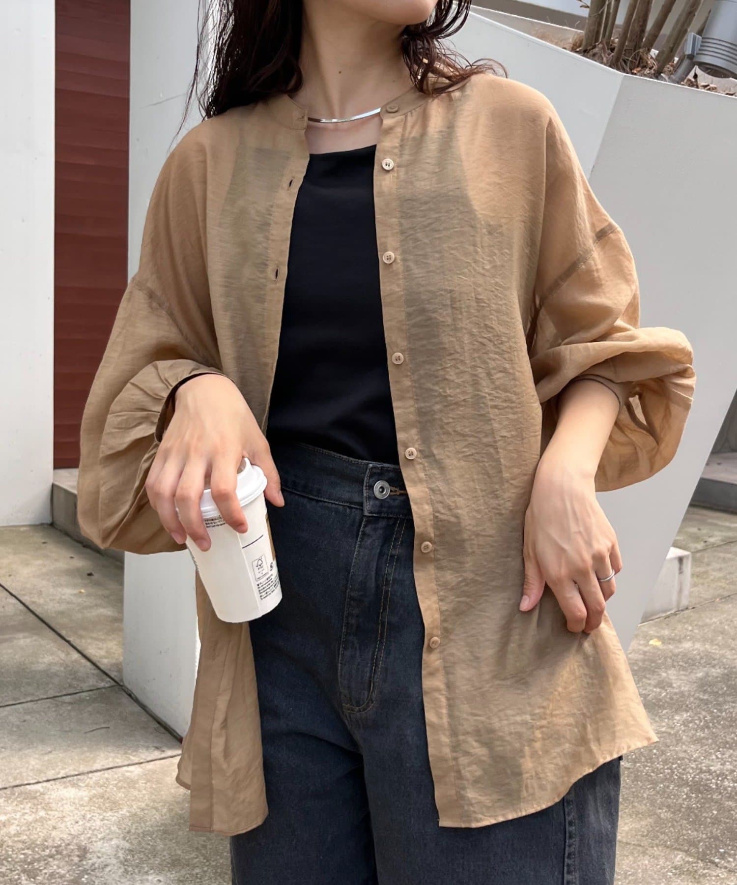 【累計販売数1万枚突破/程よい透け感】シアーバンドカラーシャツ