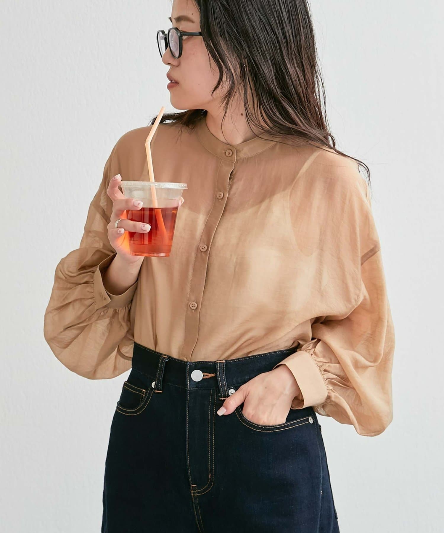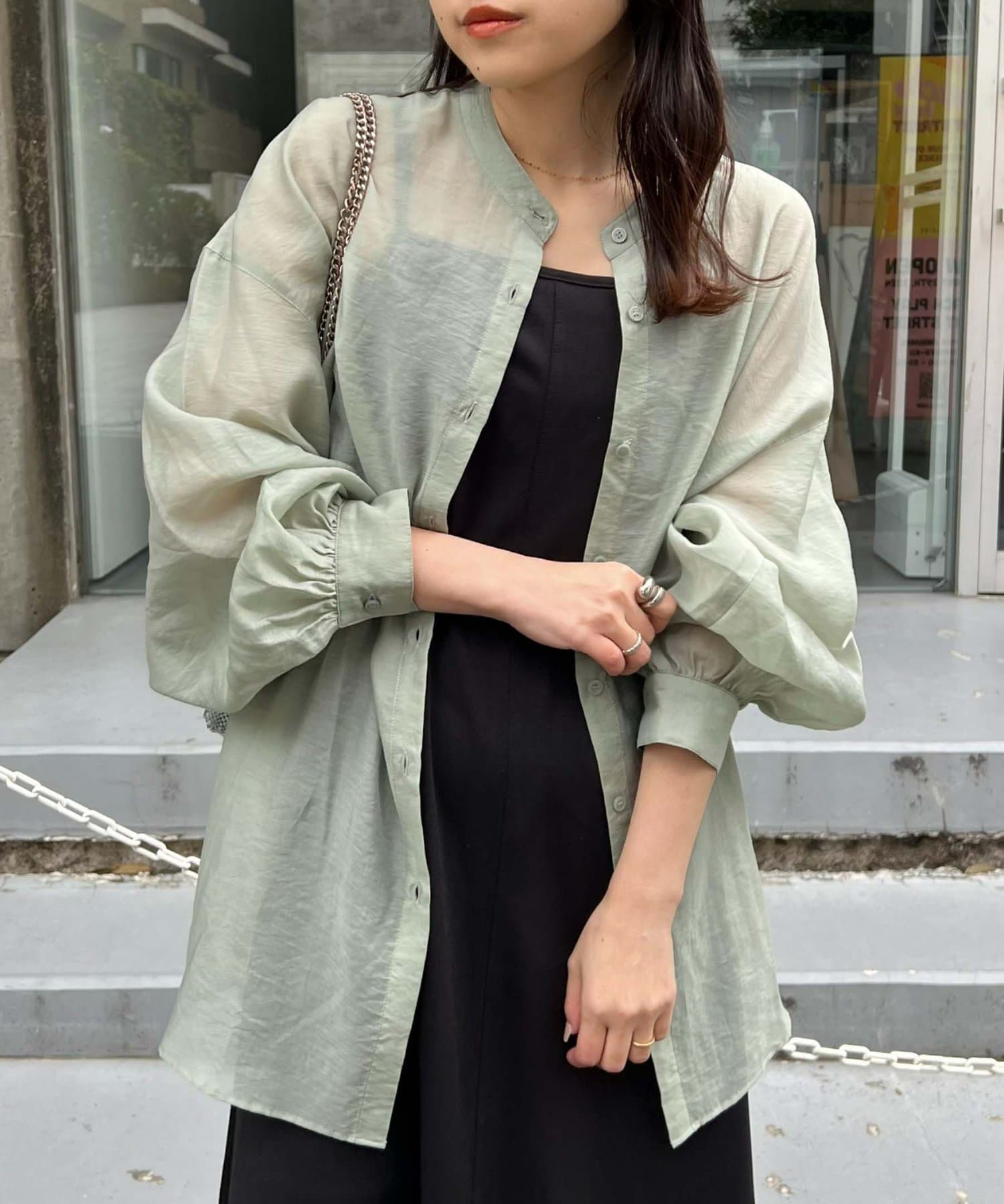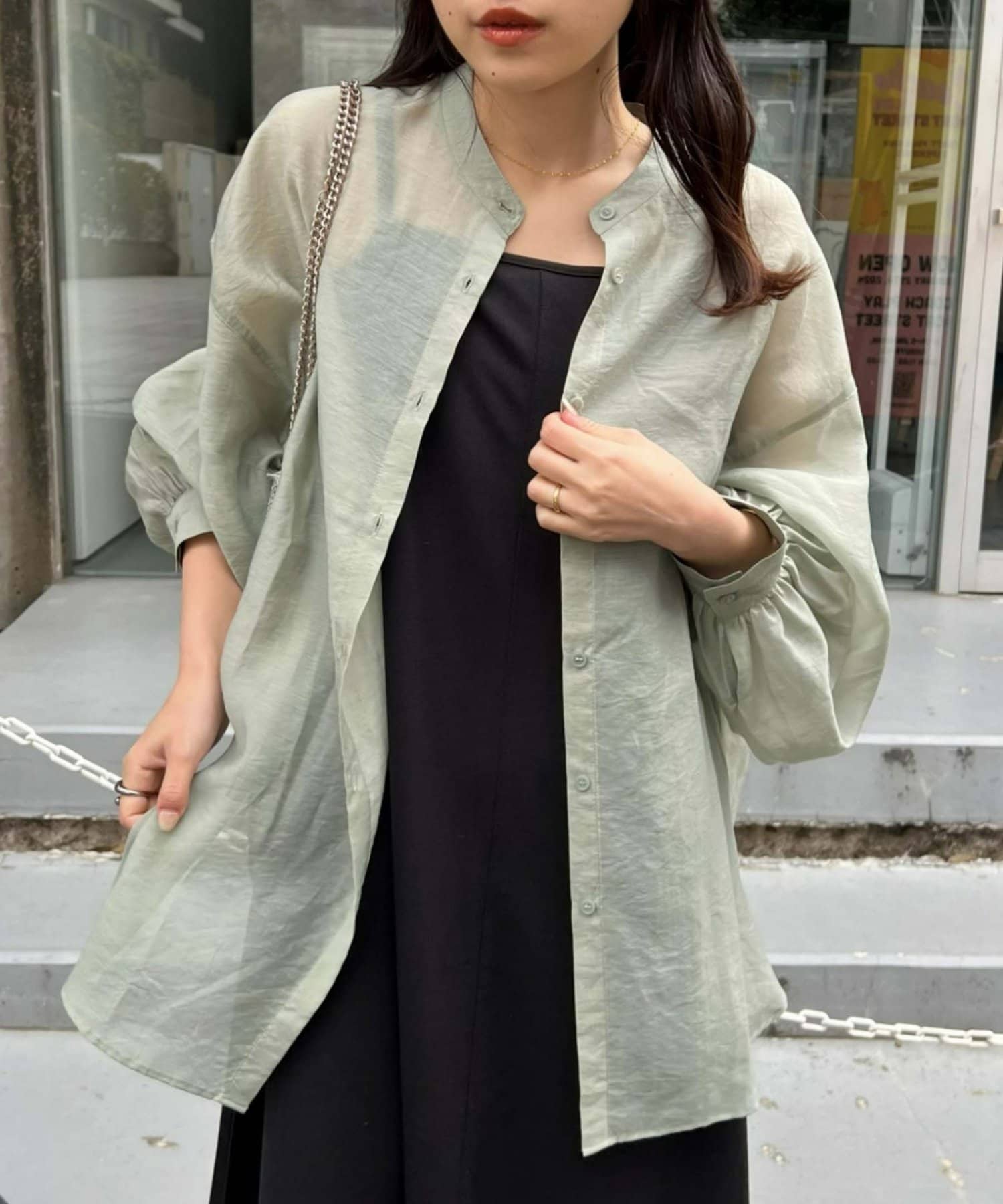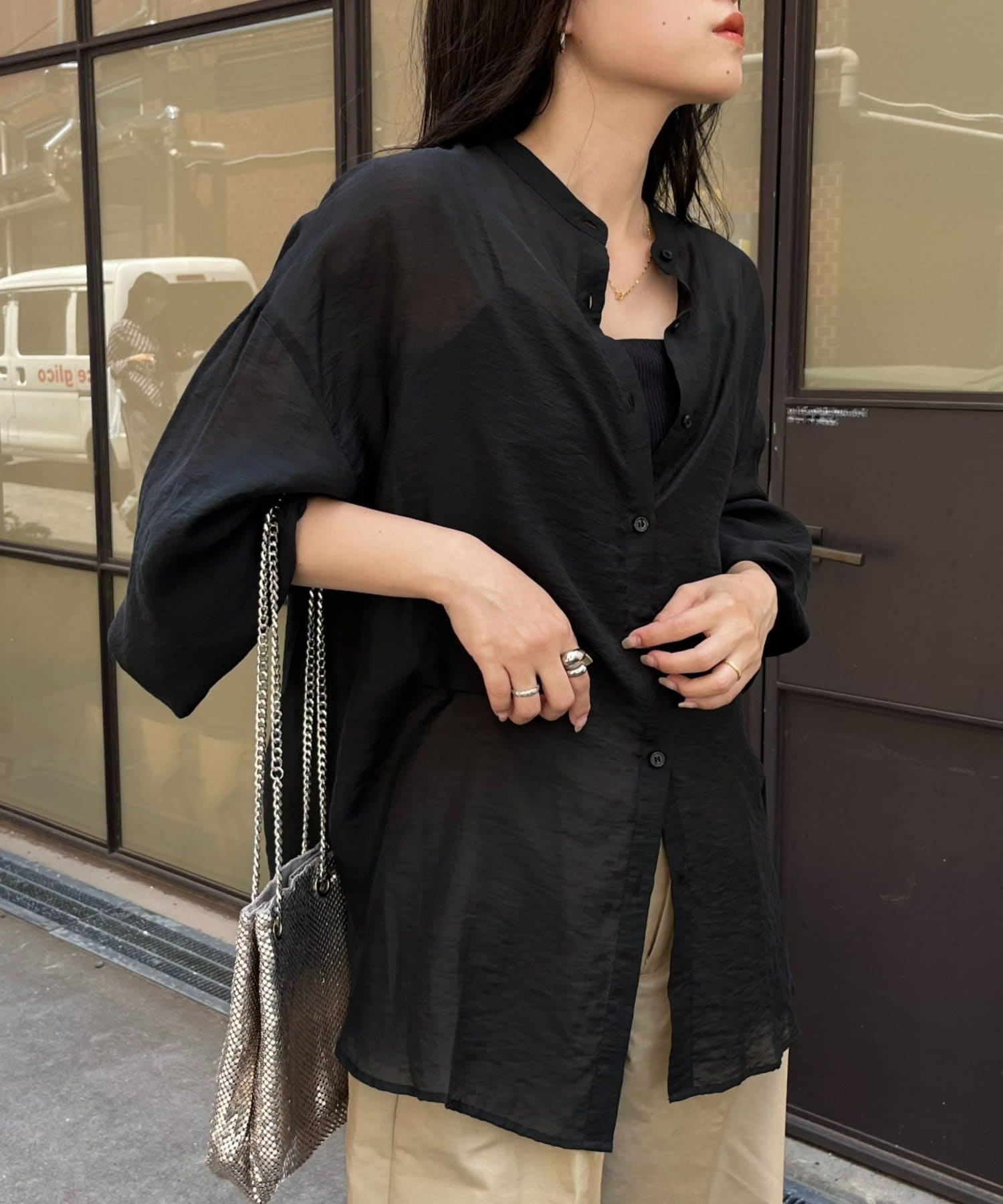 バンドカラーシャツが、トレンドのシアー素材で今年も登場!
