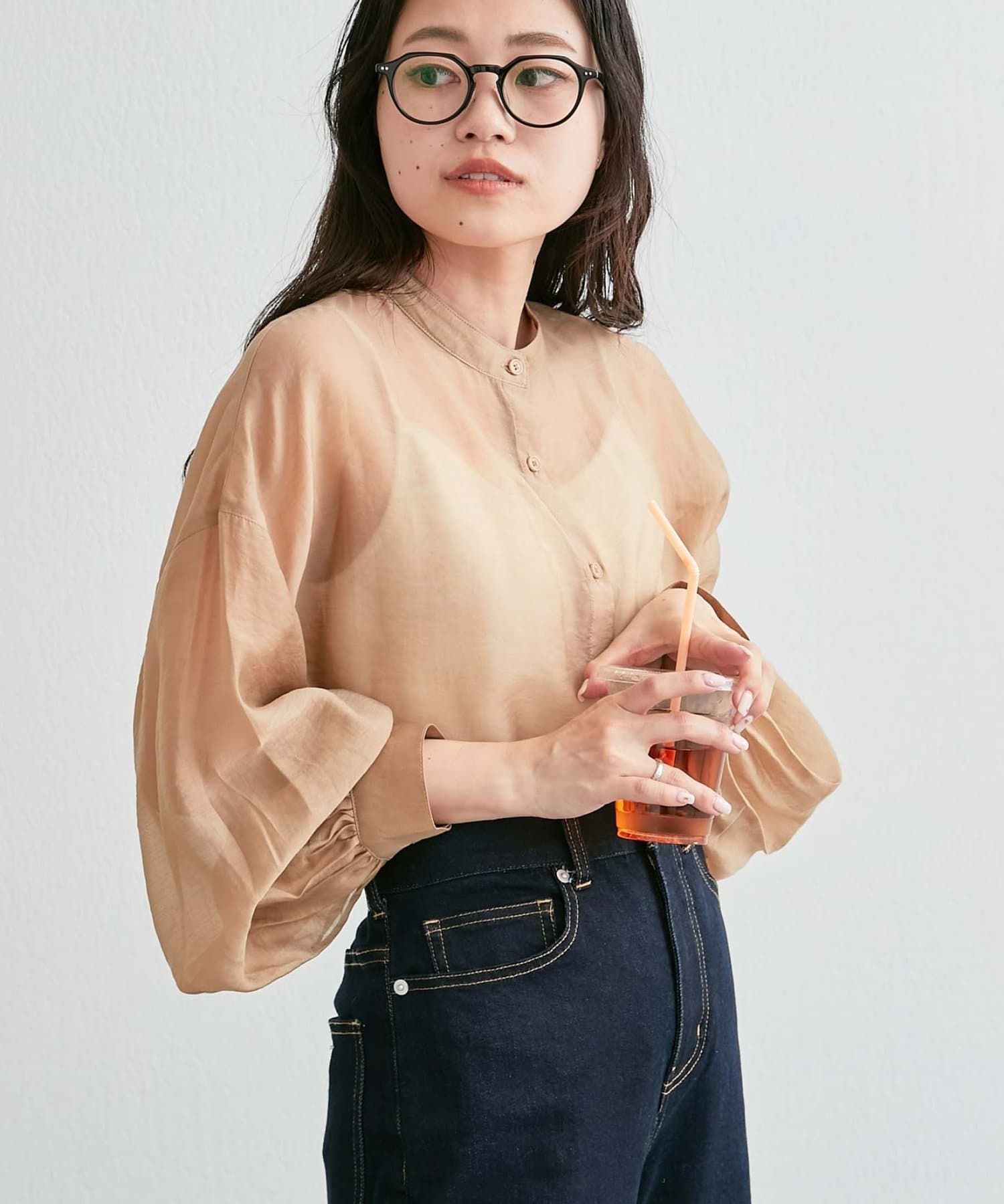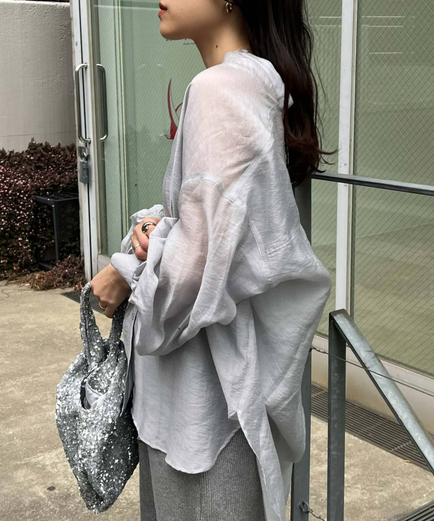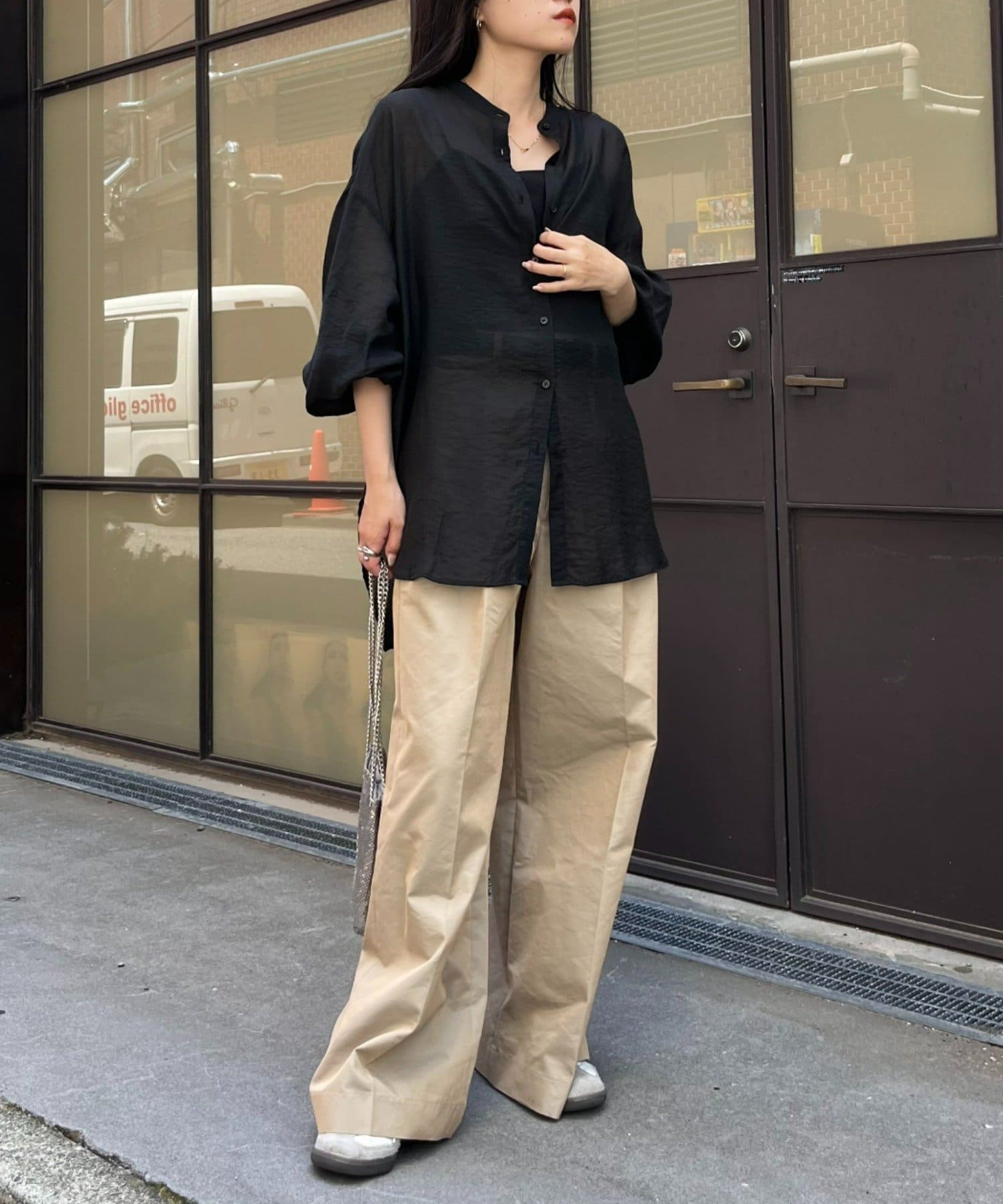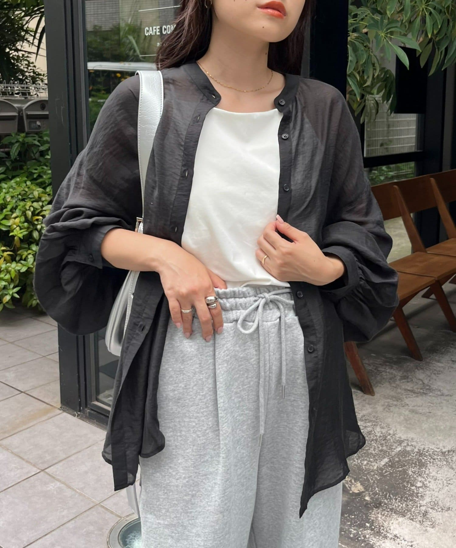 バンドカラーシャツが、トレンドのシアー素材で今年も登場!