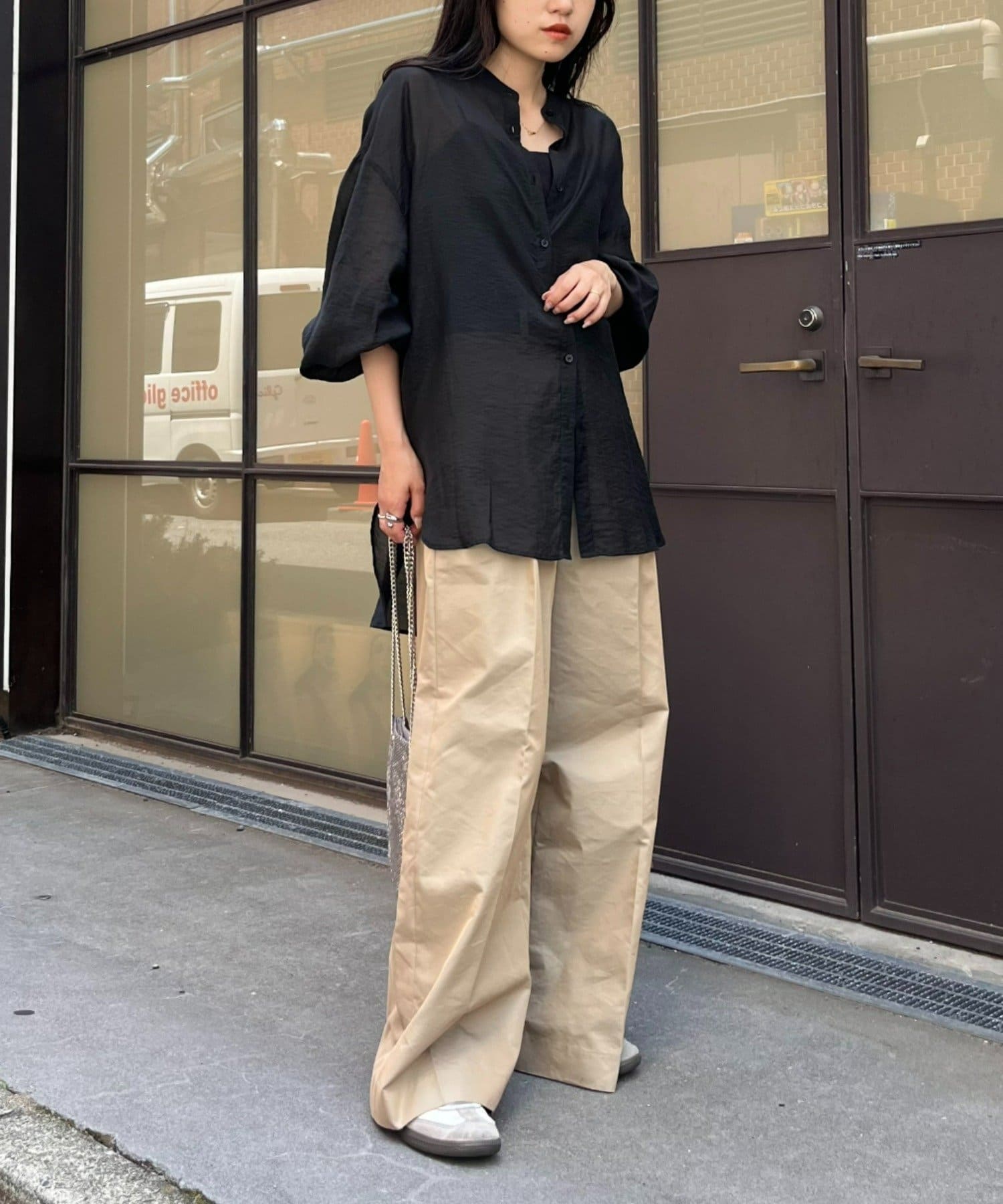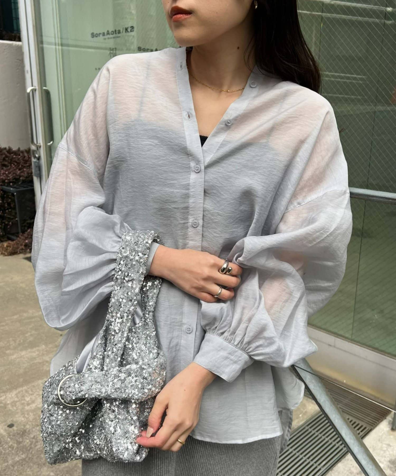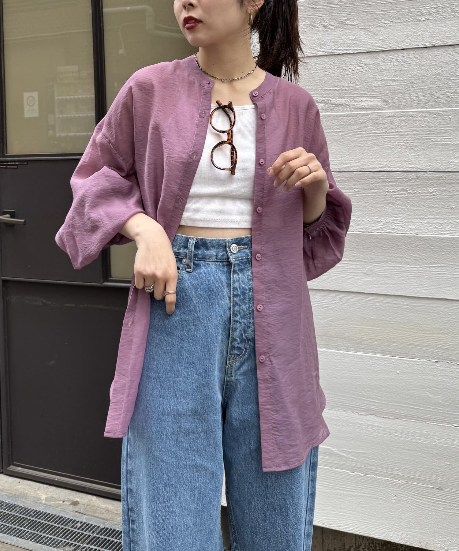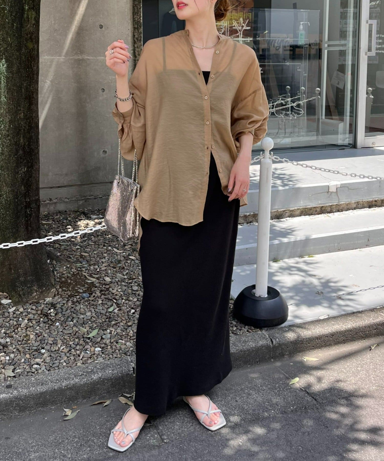 バンドカラーシャツが、トレンドのシアー素材で今年も登場!