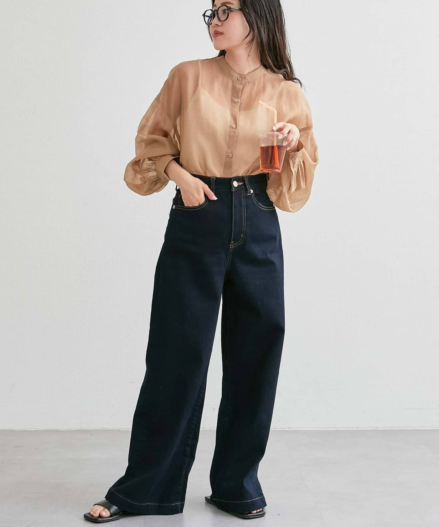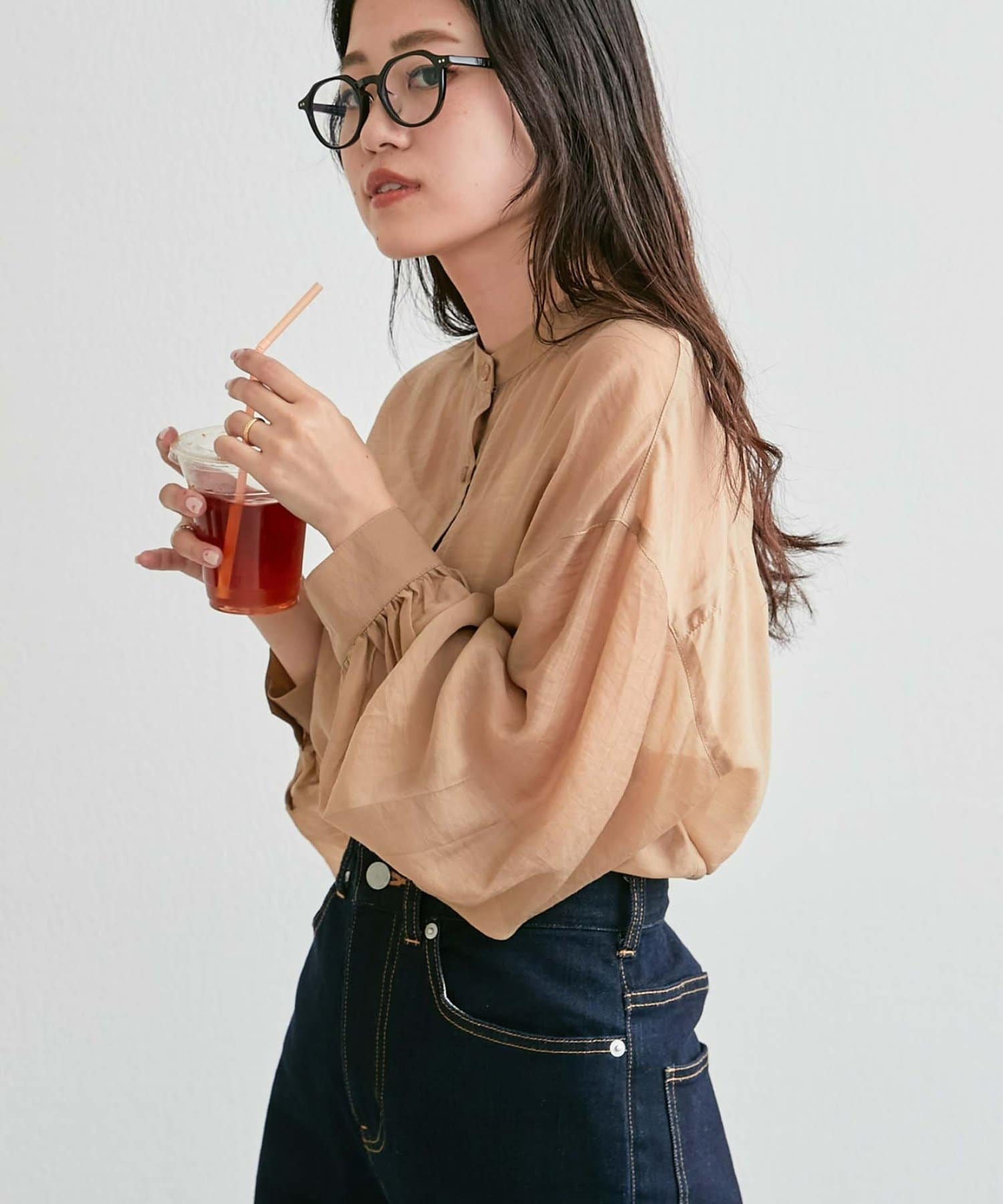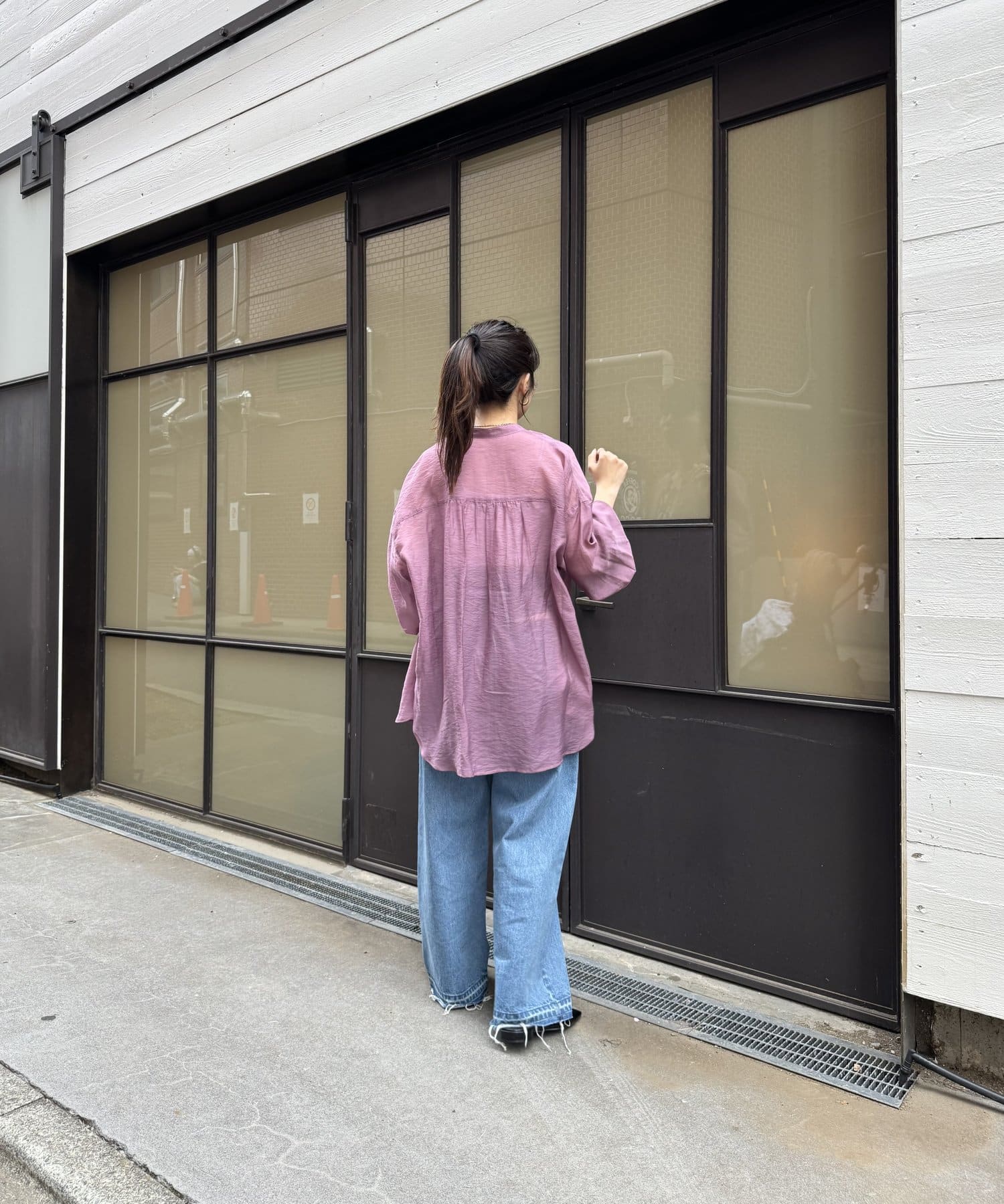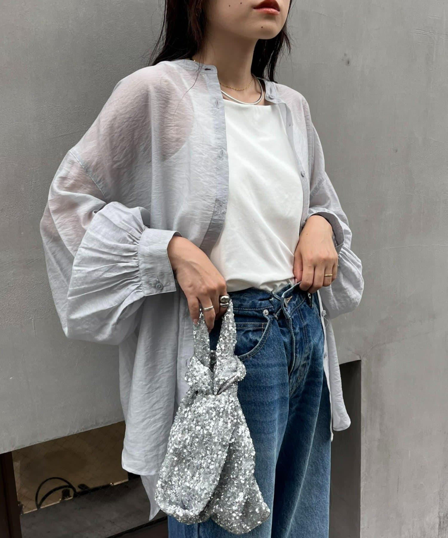 バンドカラーシャツが、トレンドのシアー素材で今年も登場!