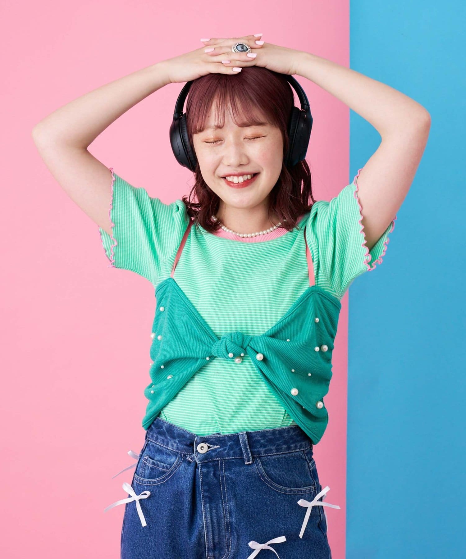 コンパクトなサイズ感なので、ボリュームのあるスカートやサロペのインナーとしても♡