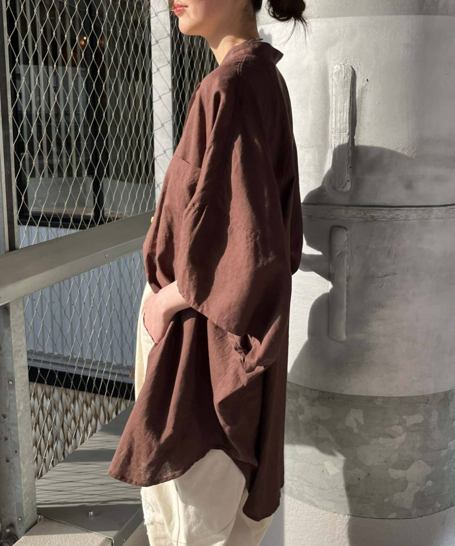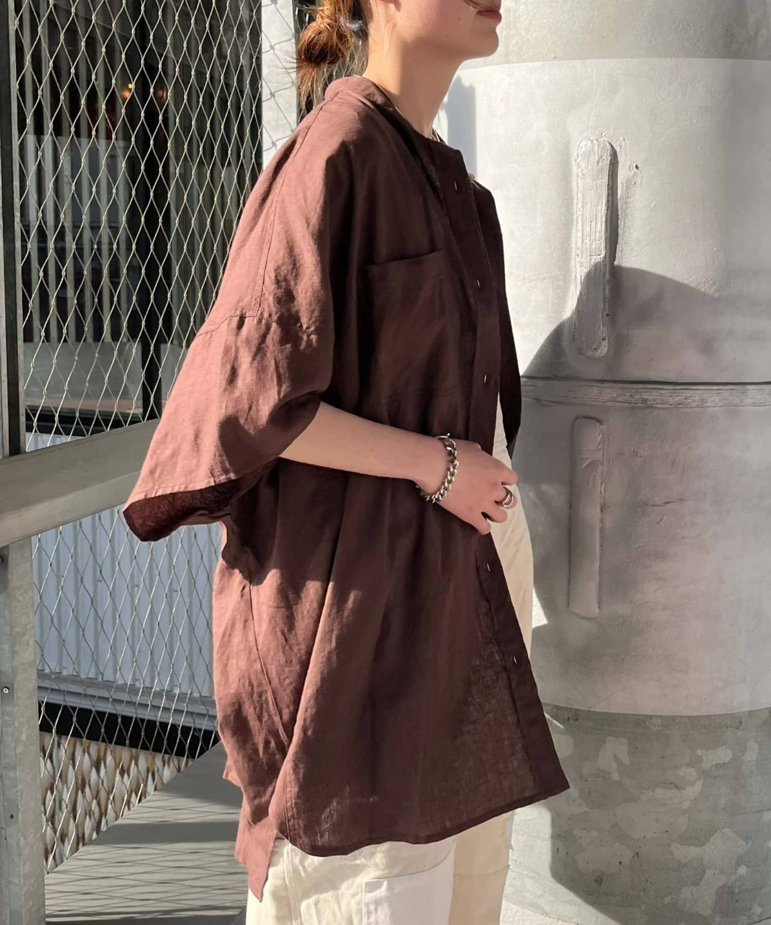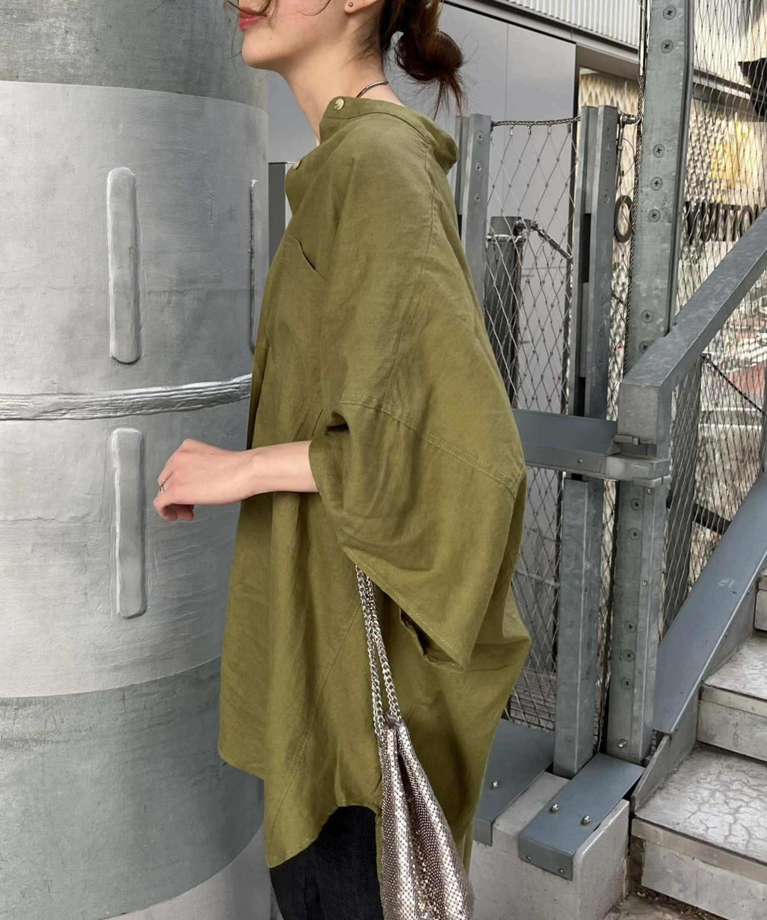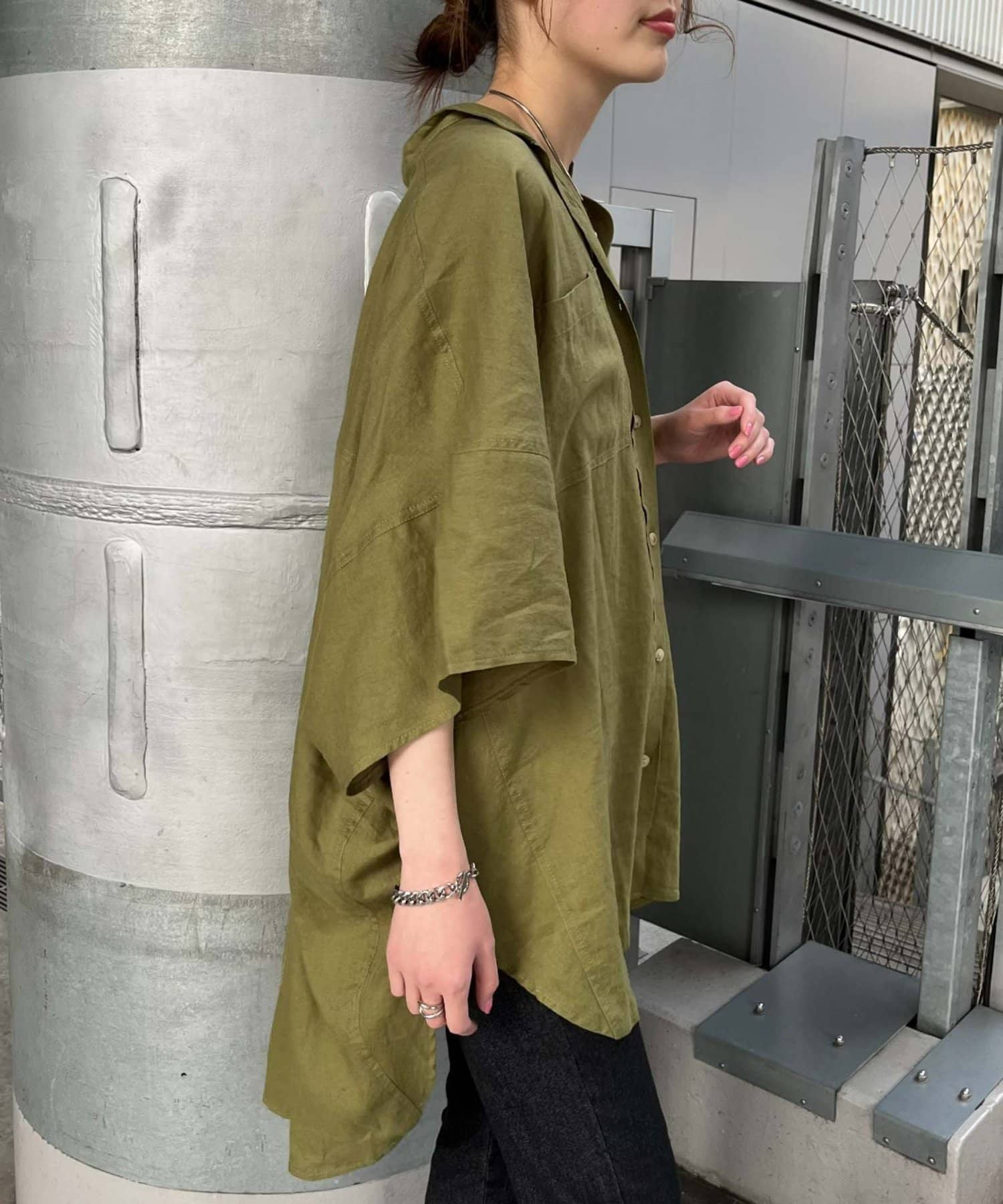 リネンレーヨン×オーバーサイズで、リラックス感のあるシャツ。