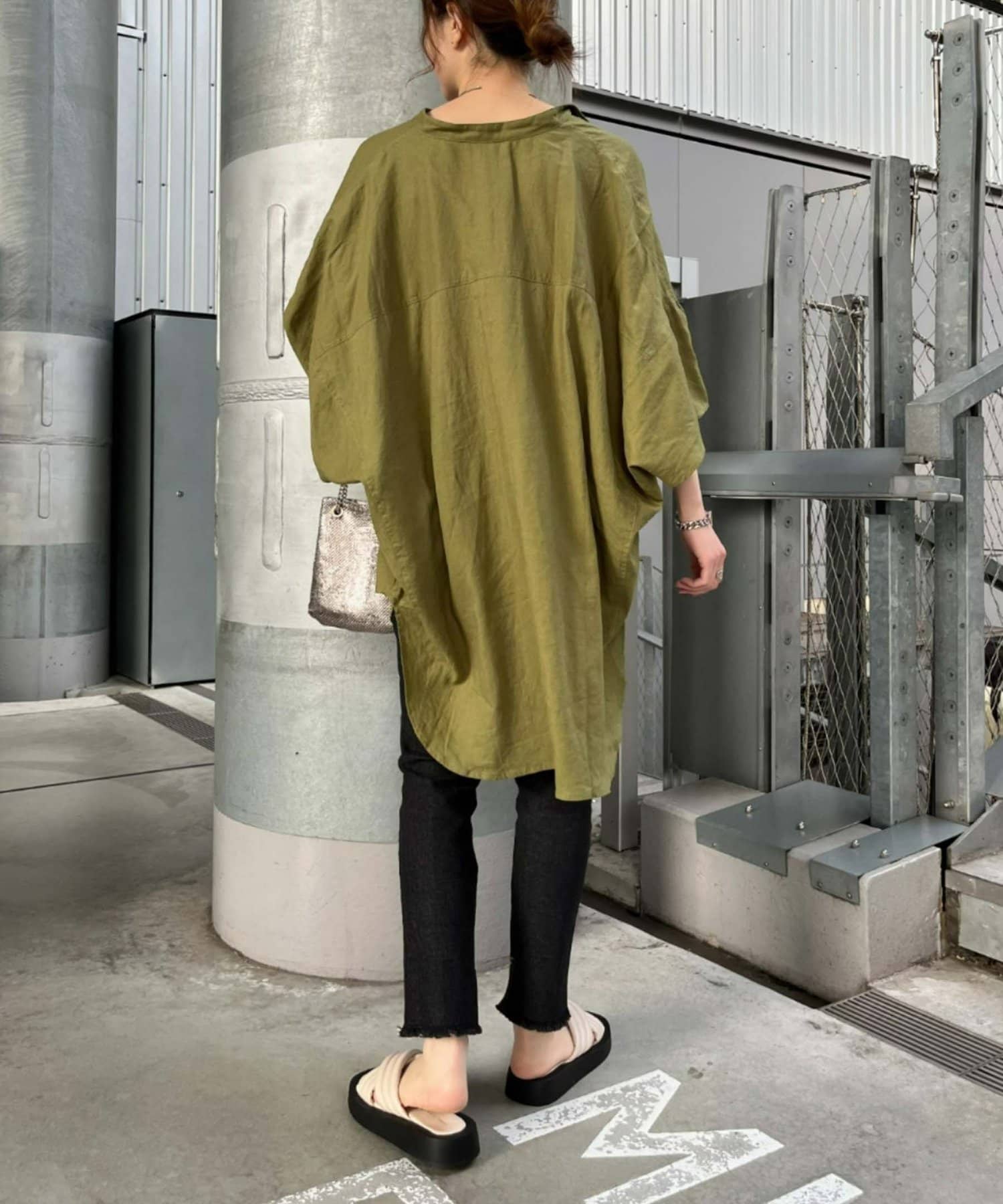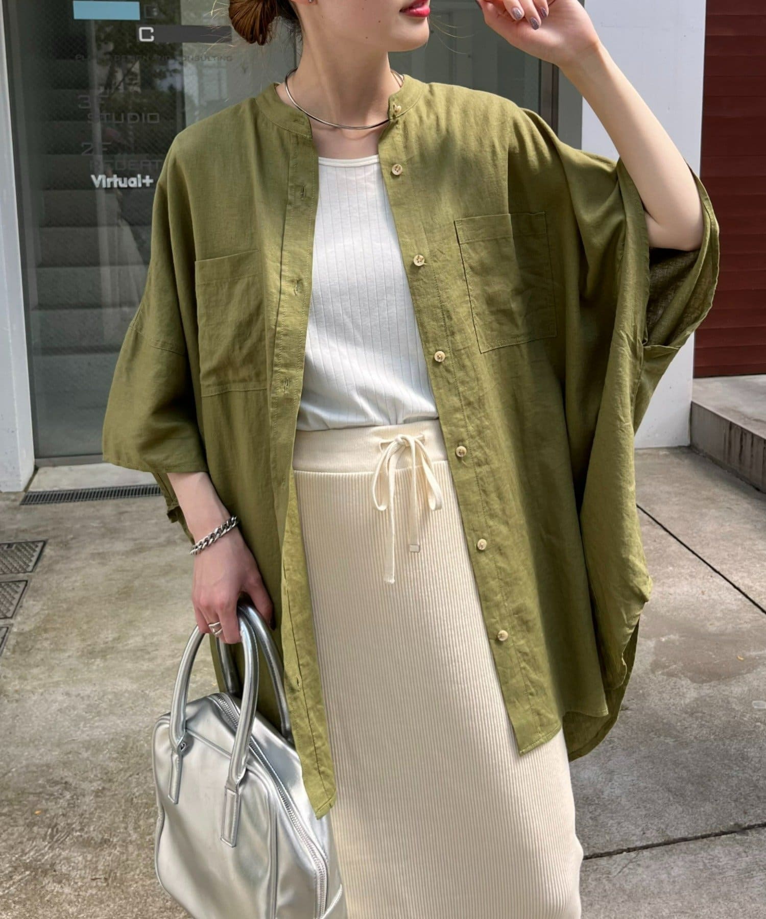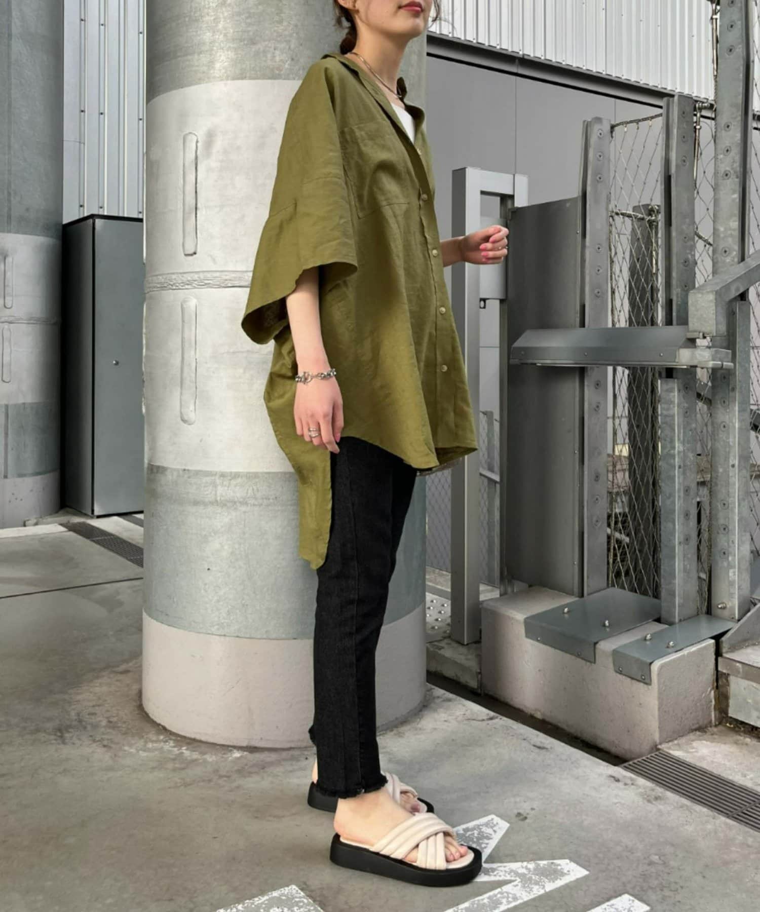リネンレーヨン×オーバーサイズで、リラックス感のあるシャツ。
