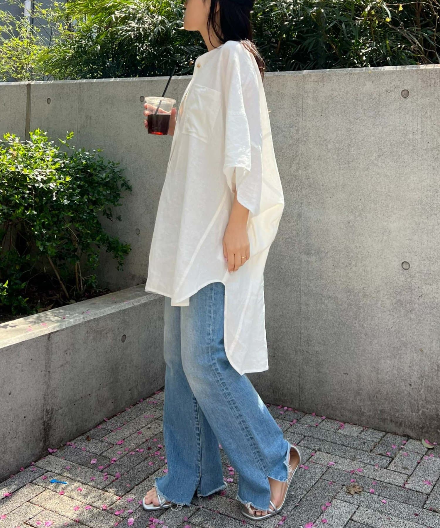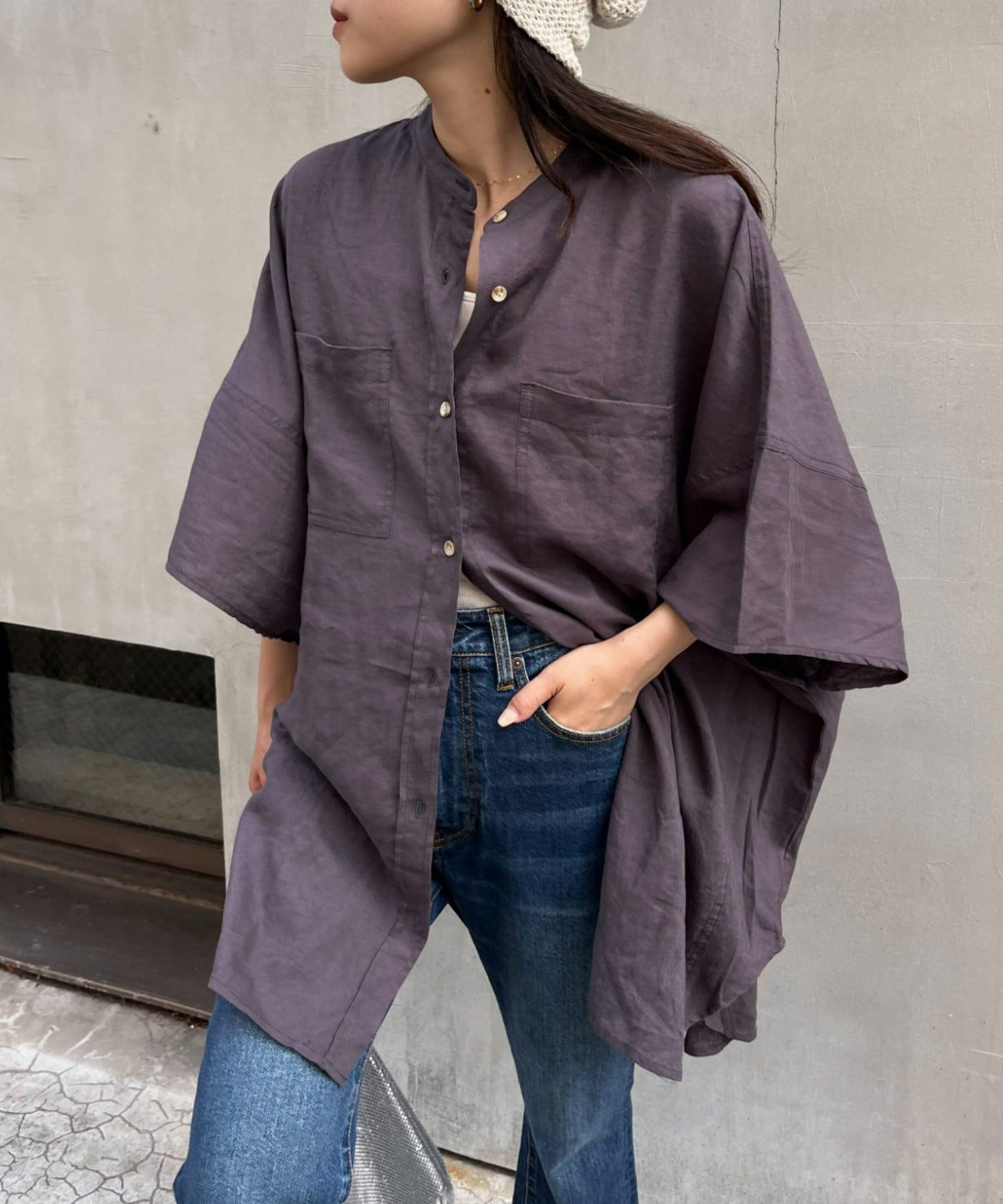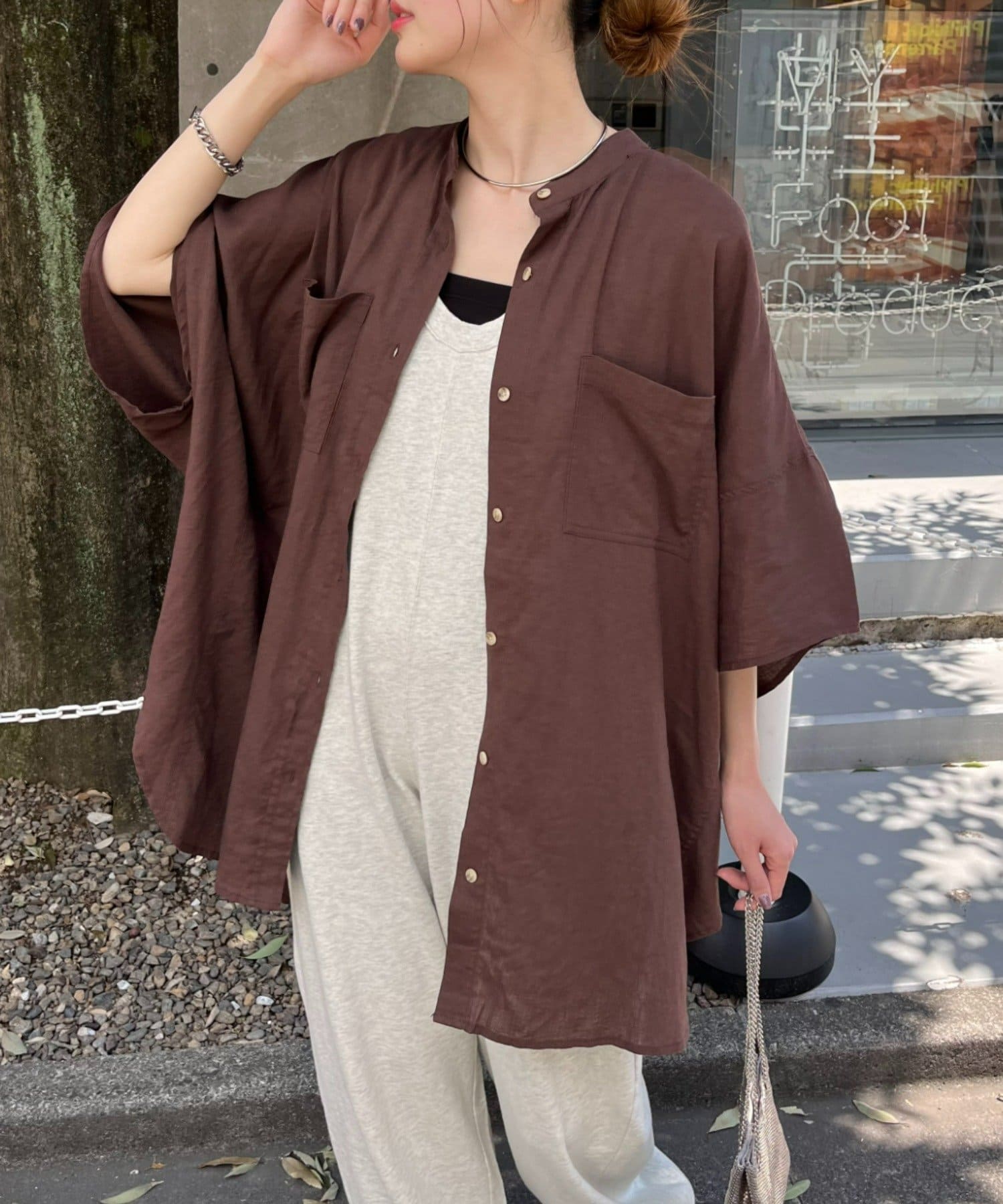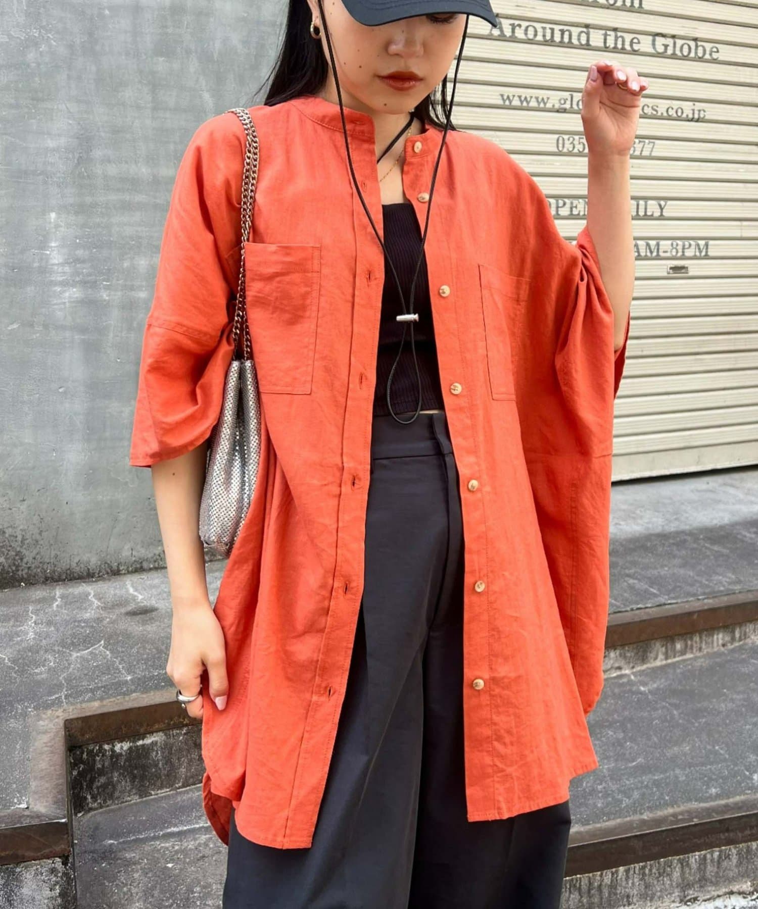 リネンレーヨン×オーバーサイズで、リラックス感のあるシャツ。