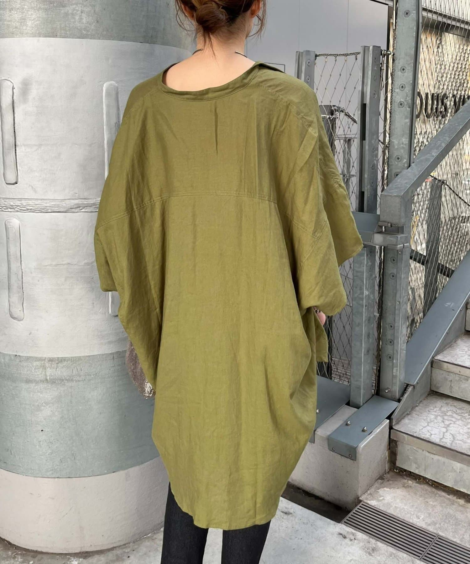 【二の腕すっきり】リネンレーヨンドルマンシャツ