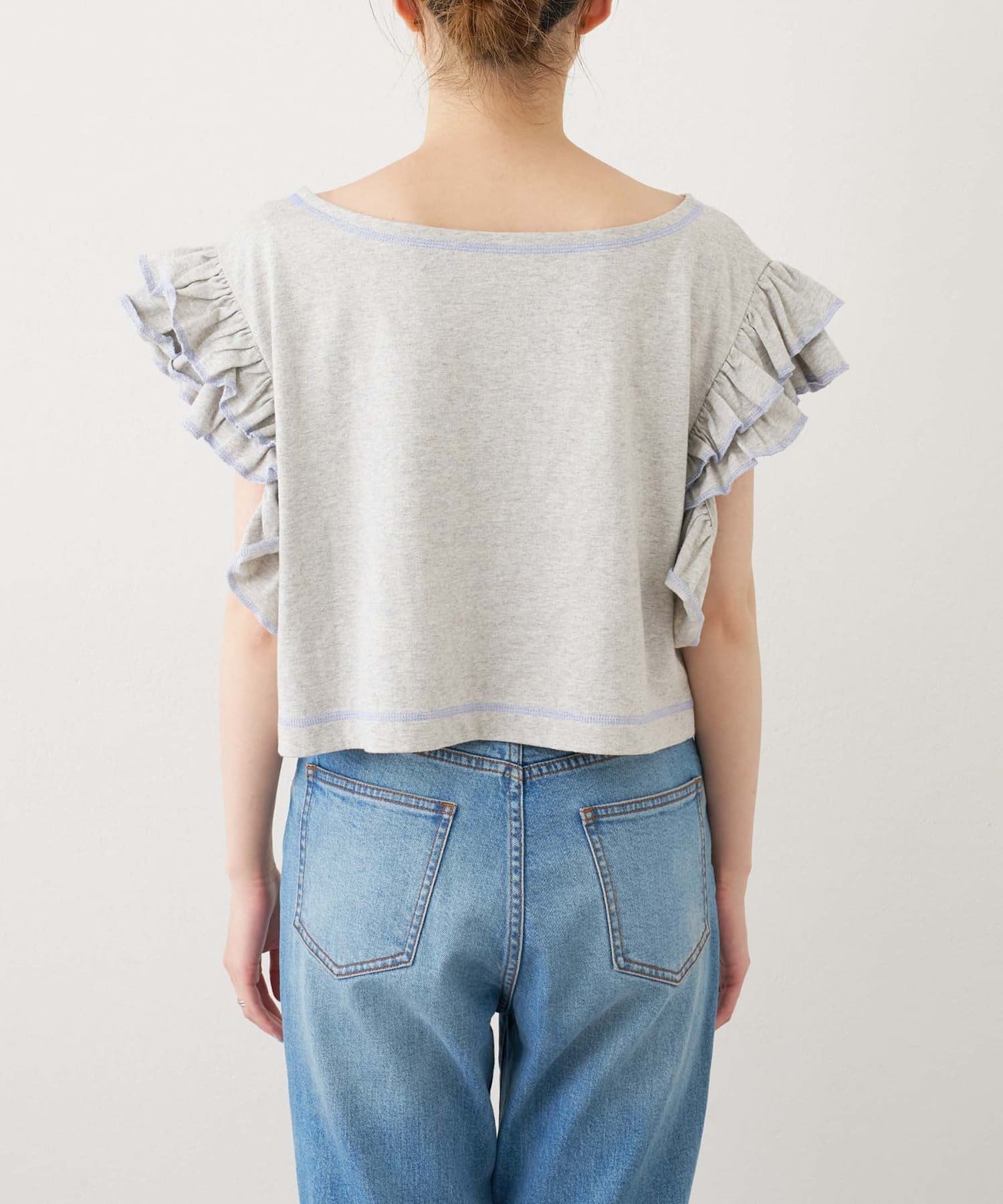 ボリューム感のあるフリルや配色ステッチがアクセントになり、