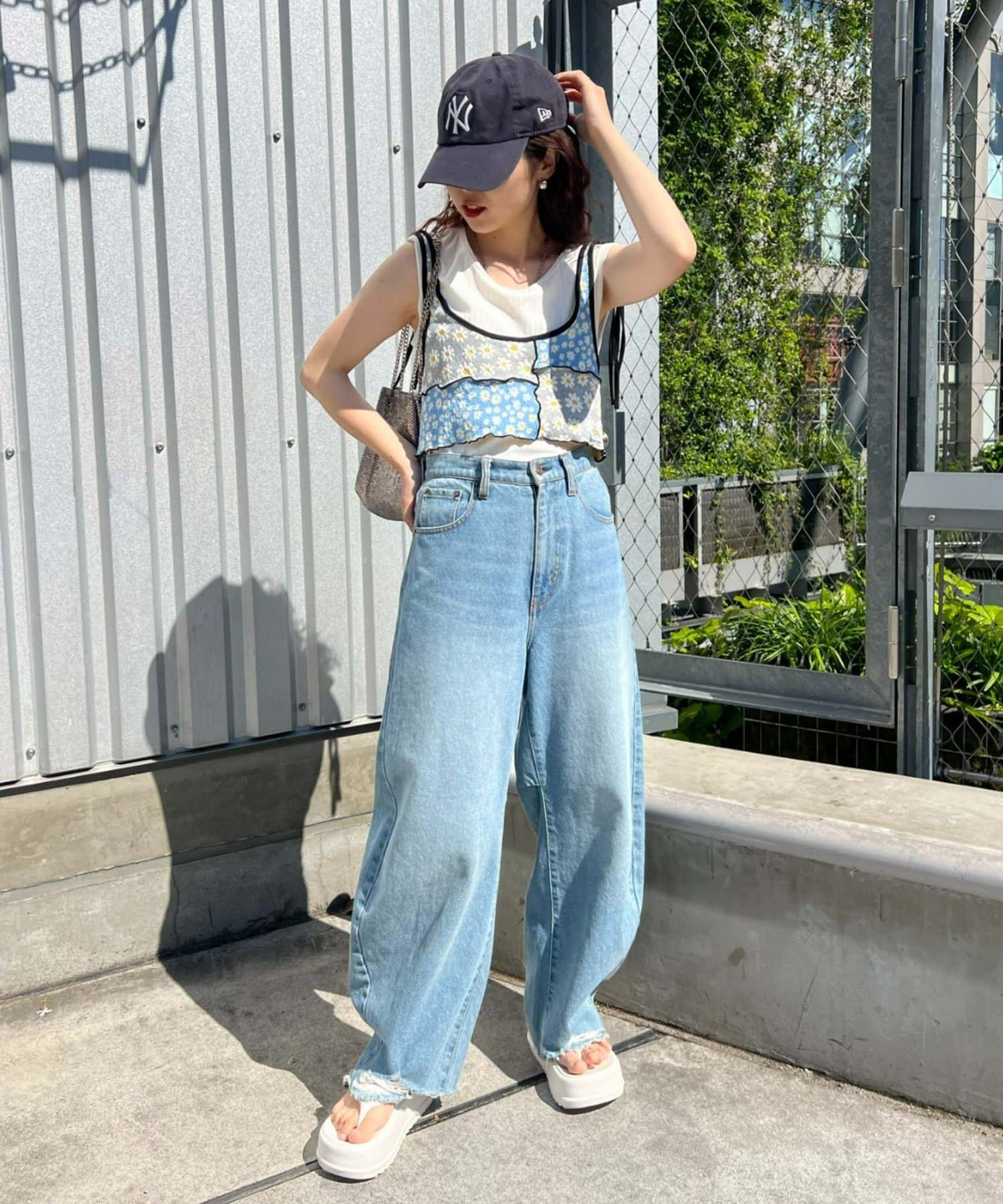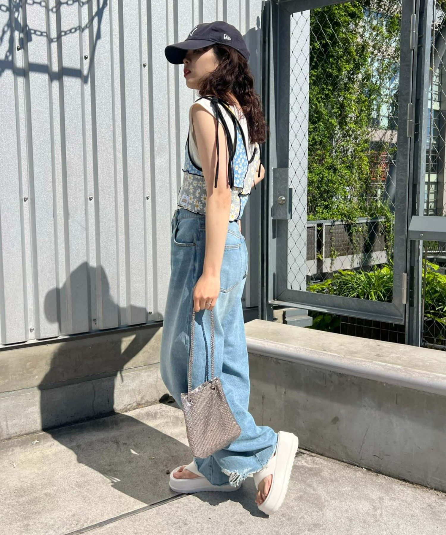 これからの季節は、キャミソールやタンクトップと合わせたヘルシーコーデも◎