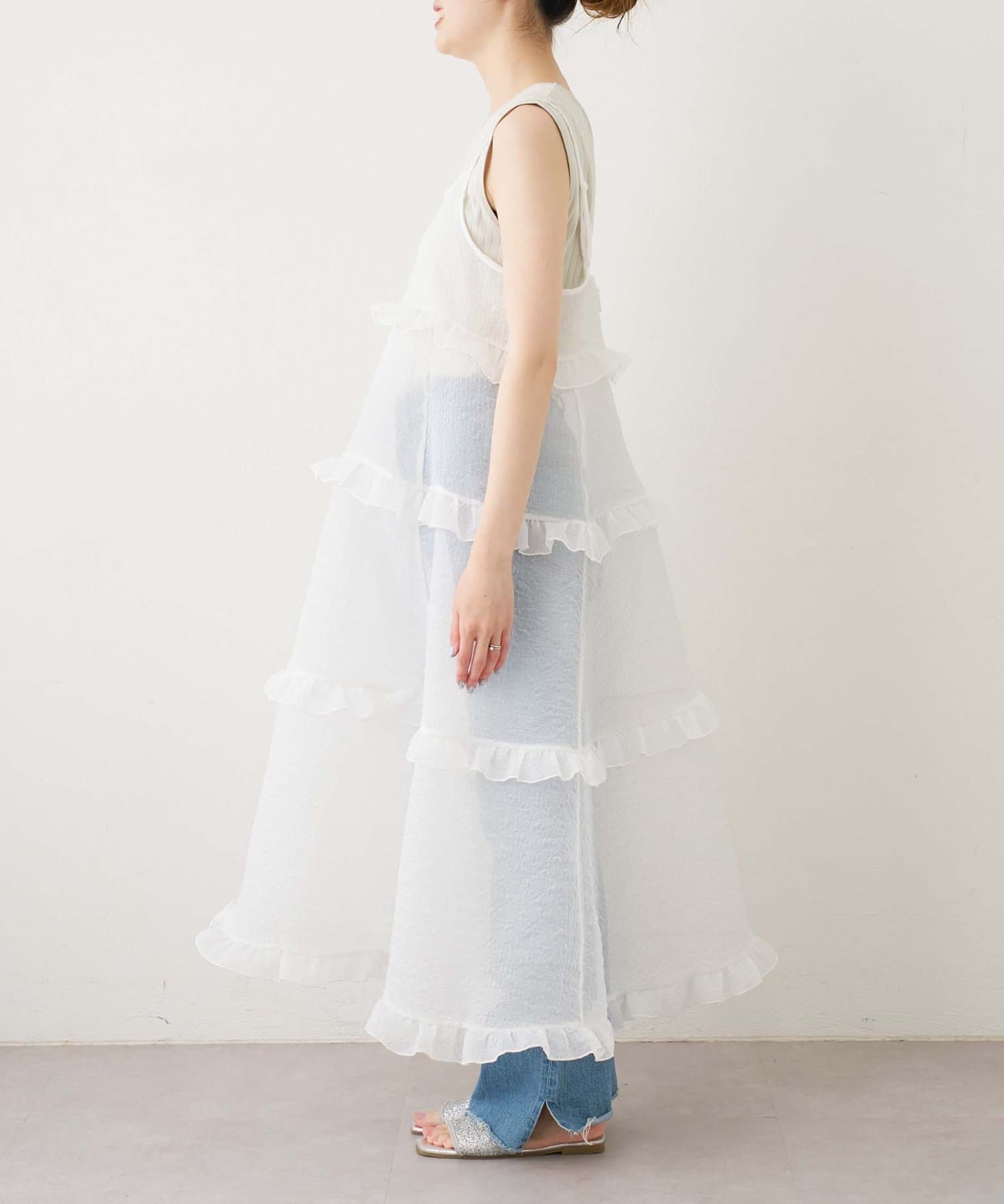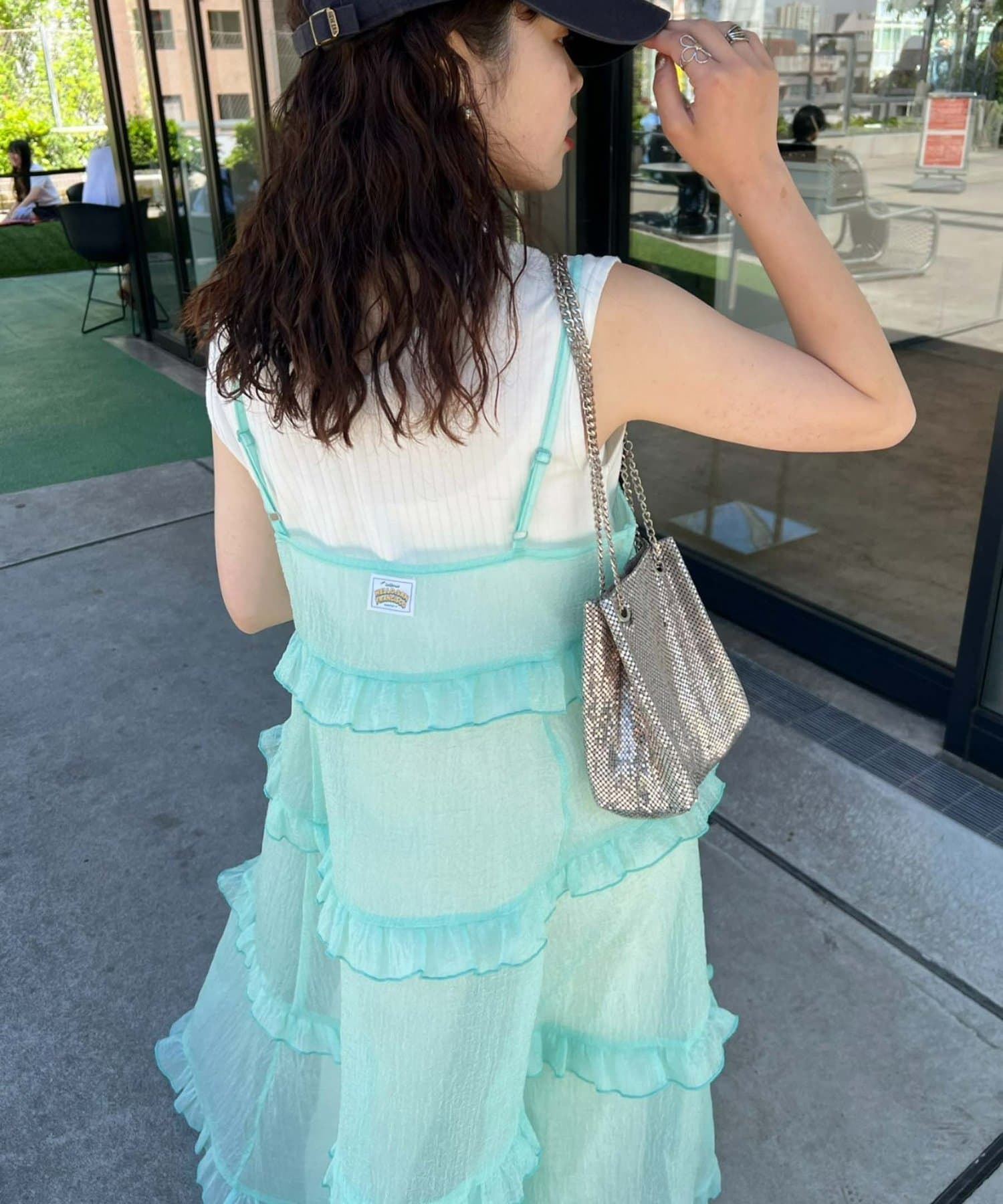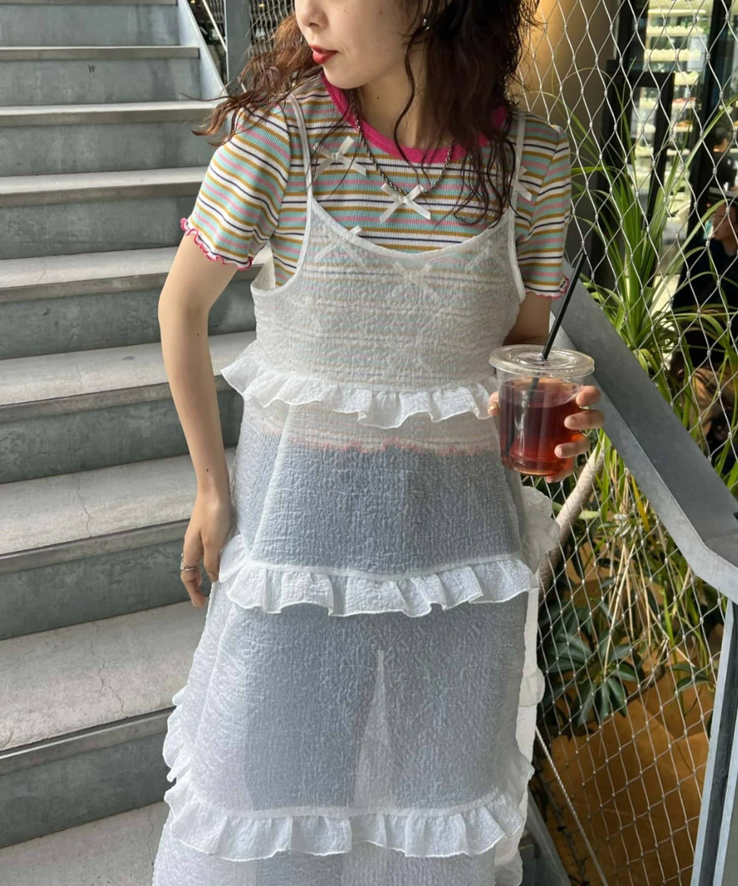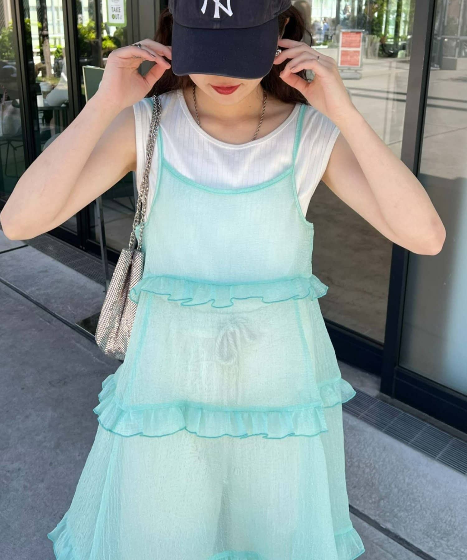 プラスワンするだけで、ハロサンコーデが完成するシアーキャミワンピース。