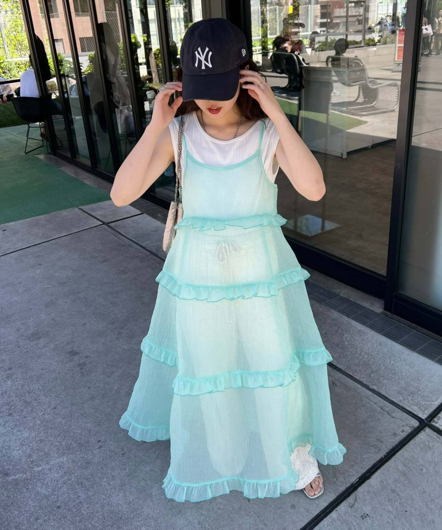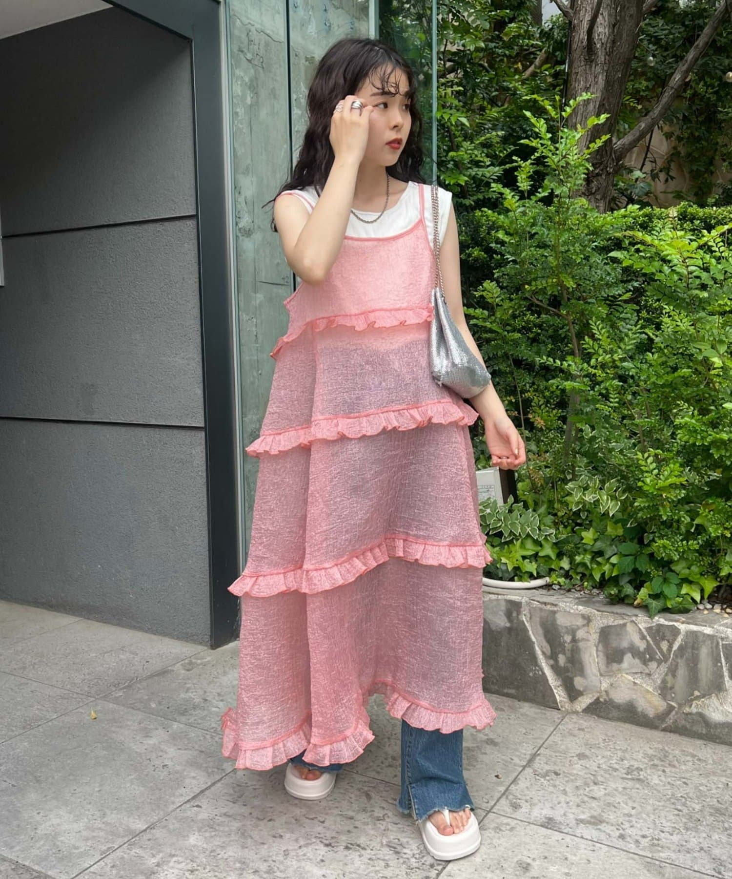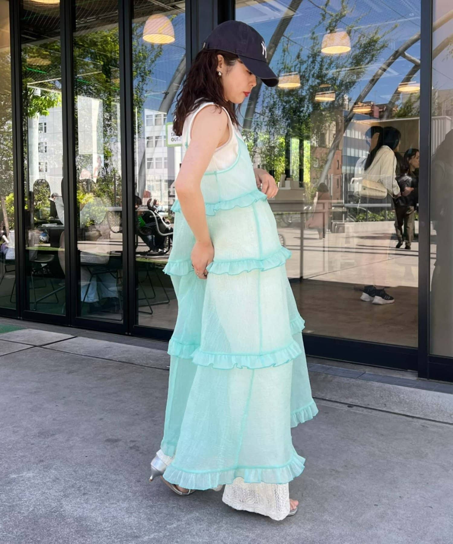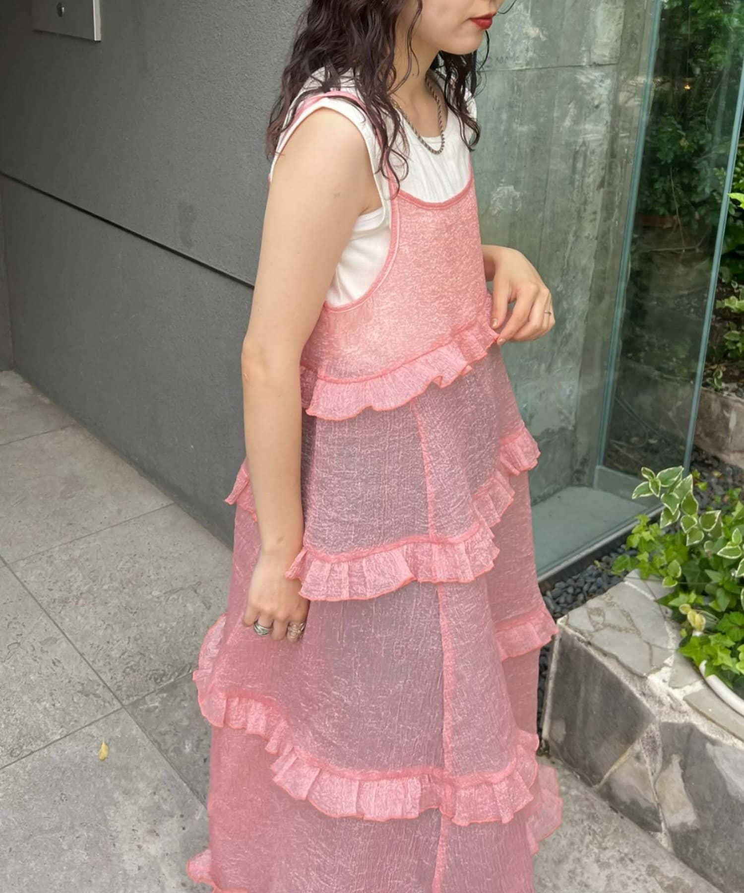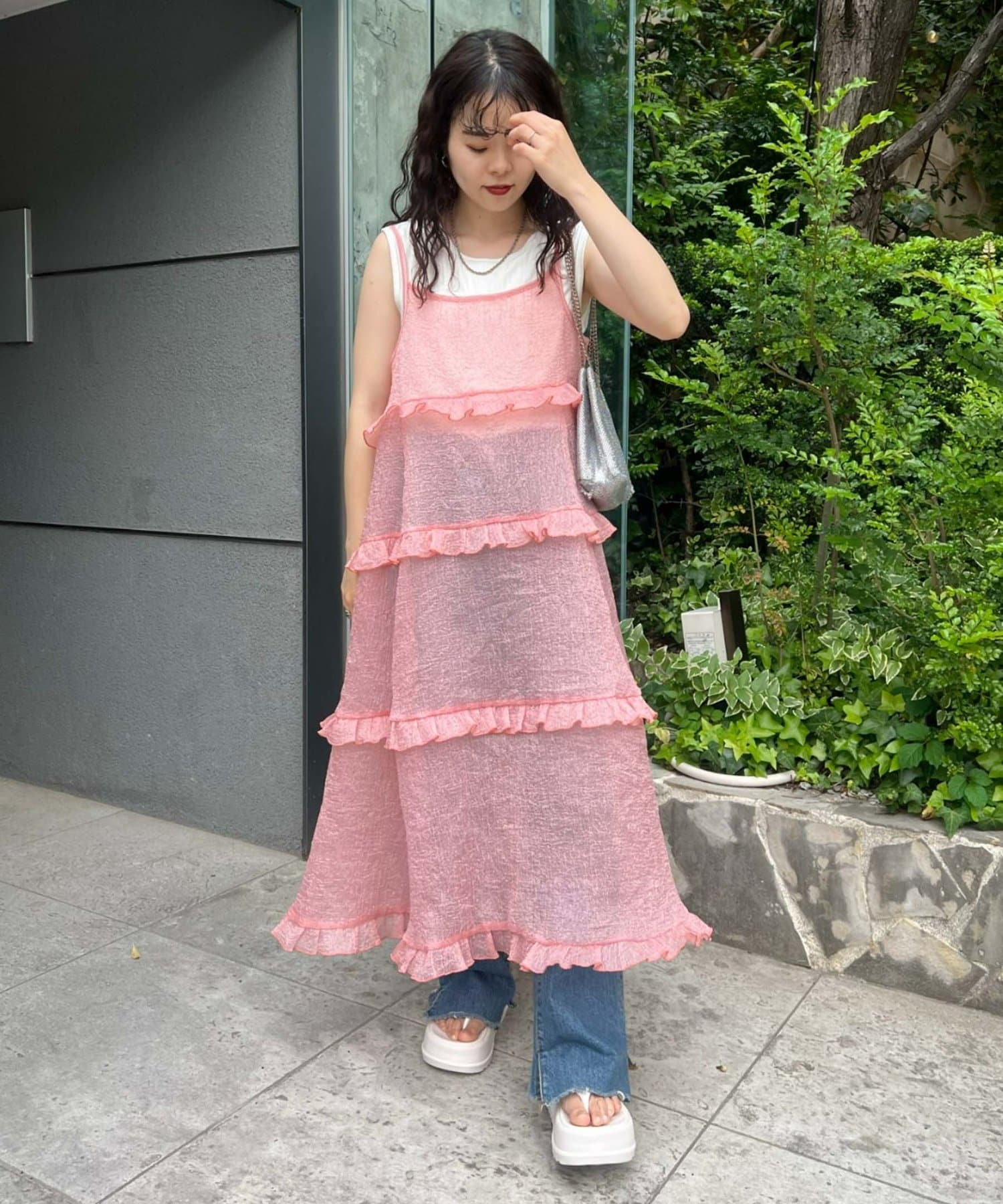 プラスワンするだけで、ハロサンコーデが完成するシアーキャミワンピース。