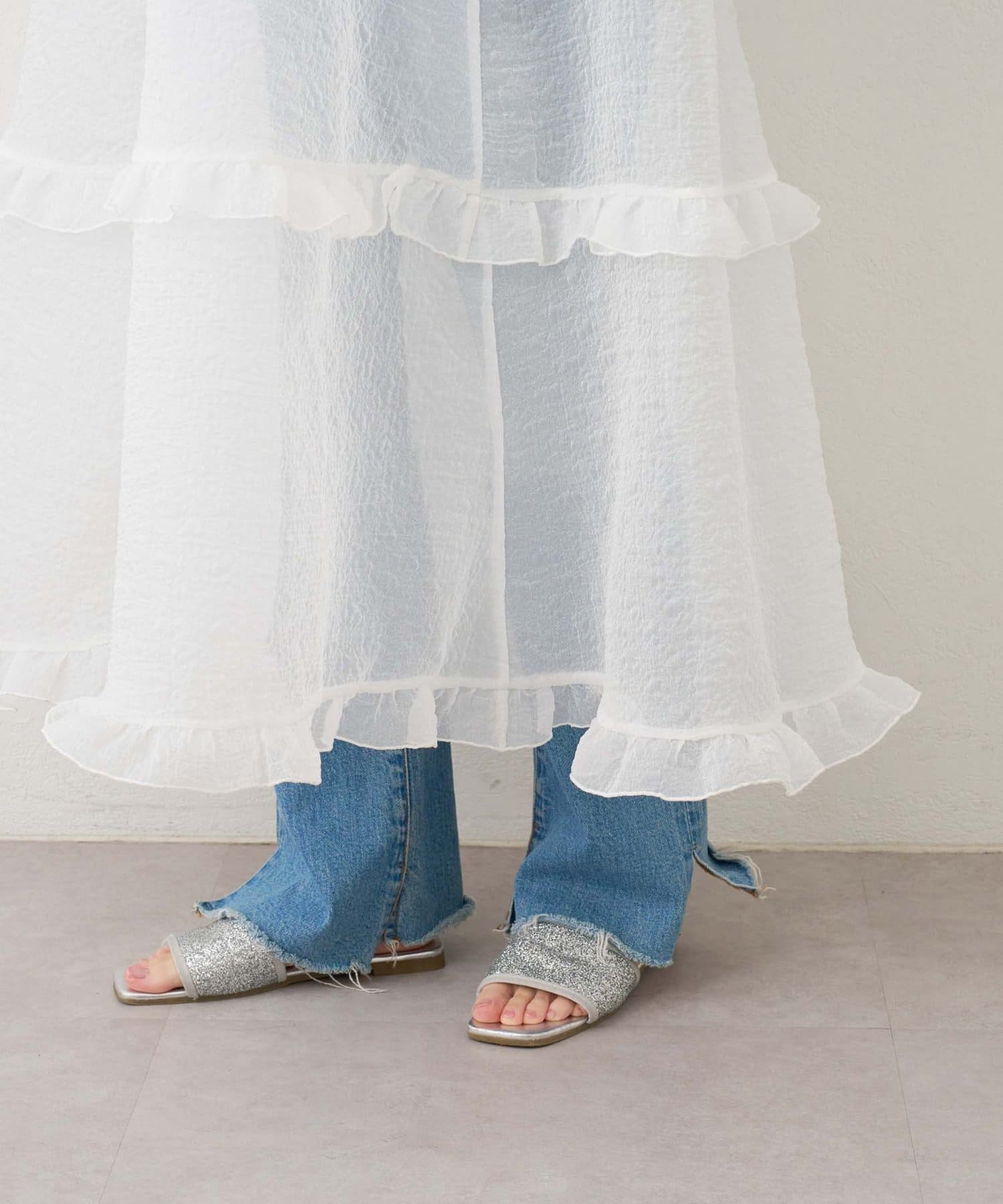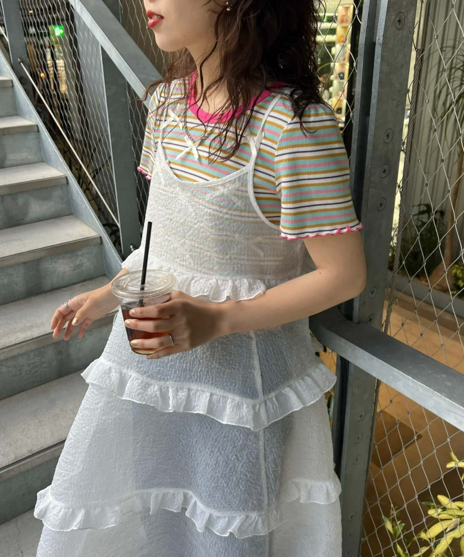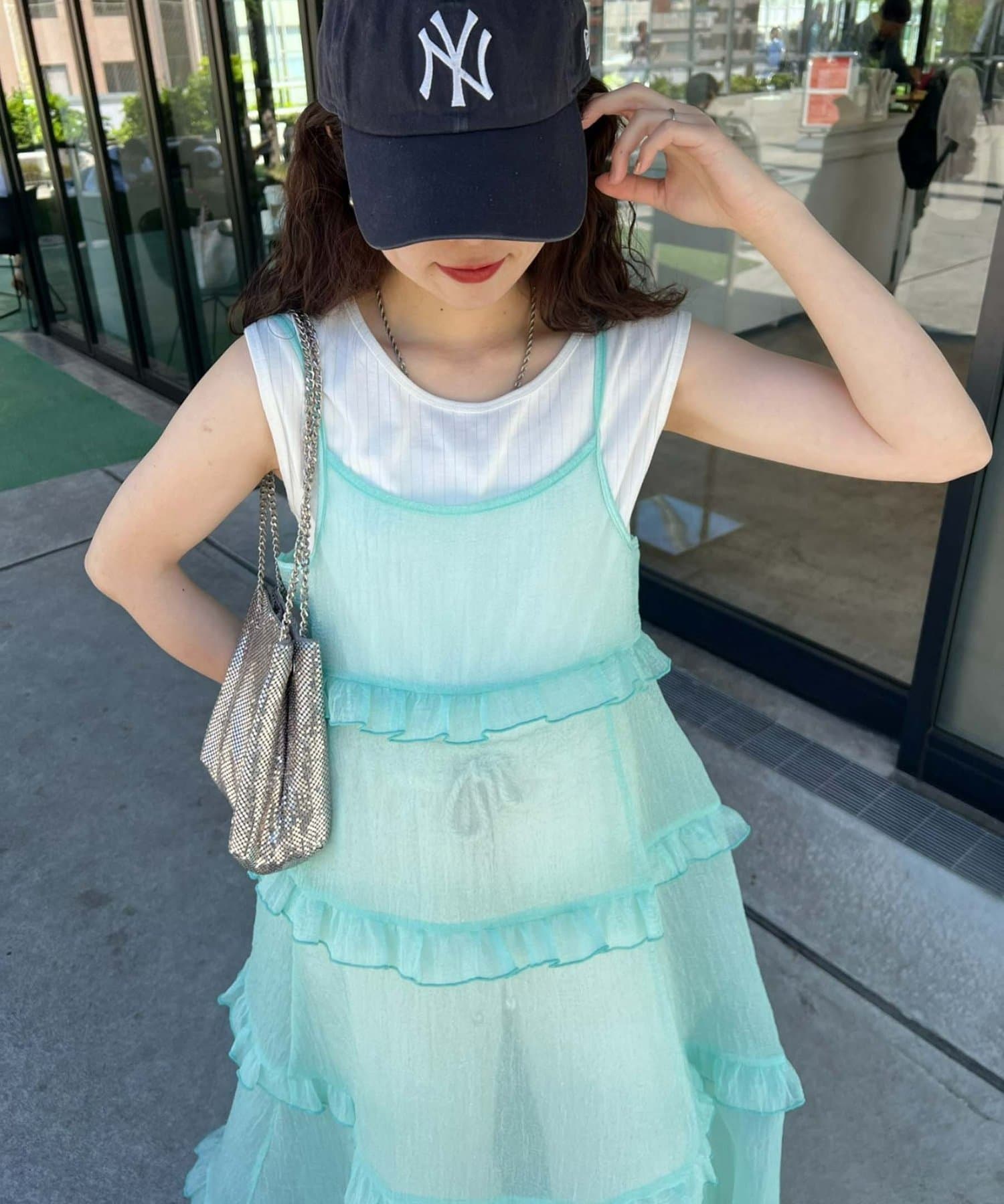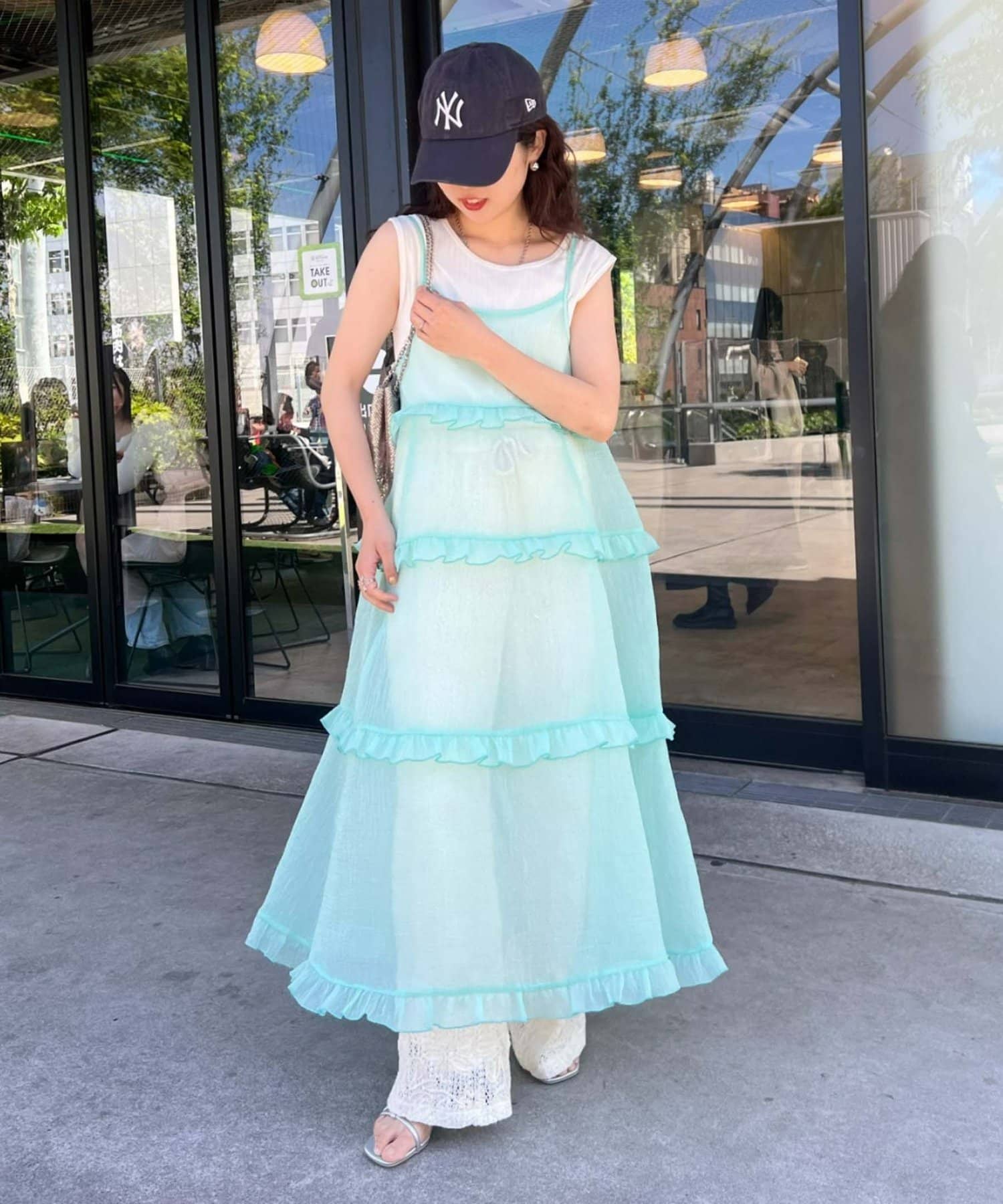 プラスワンするだけで、ハロサンコーデが完成するシアーキャミワンピース。