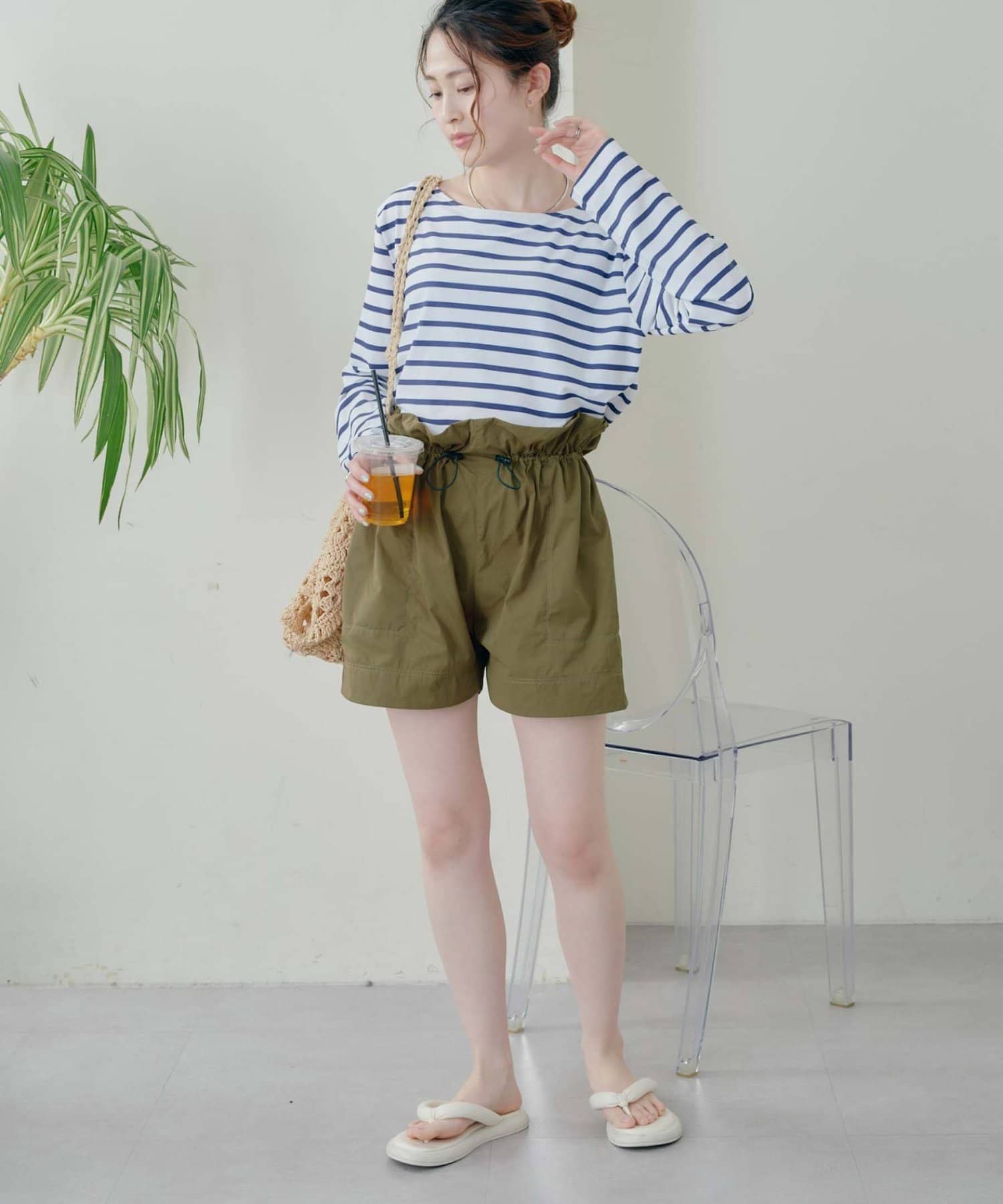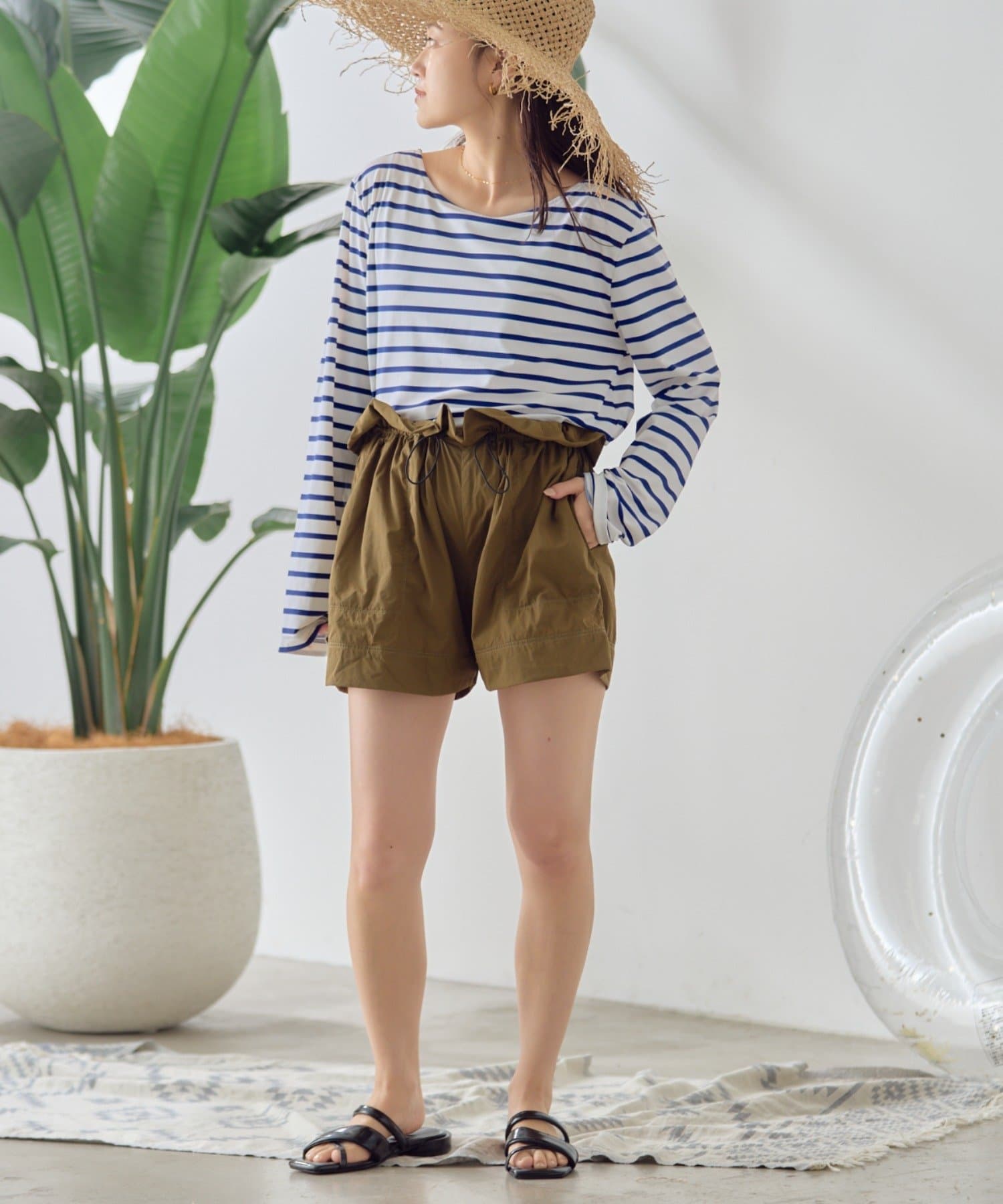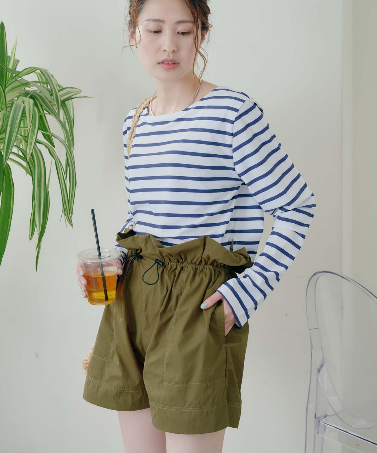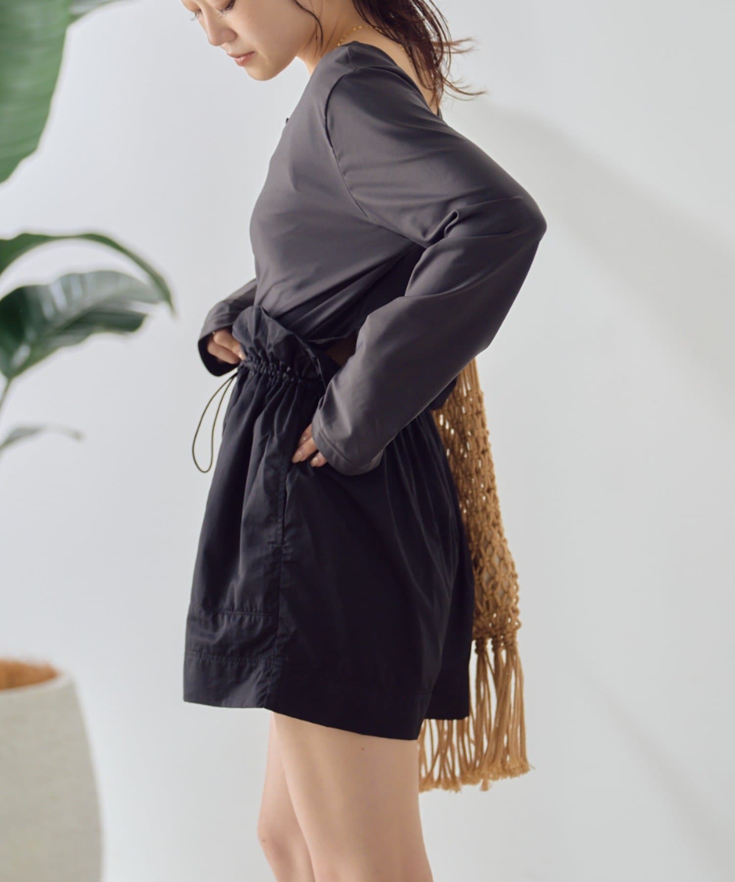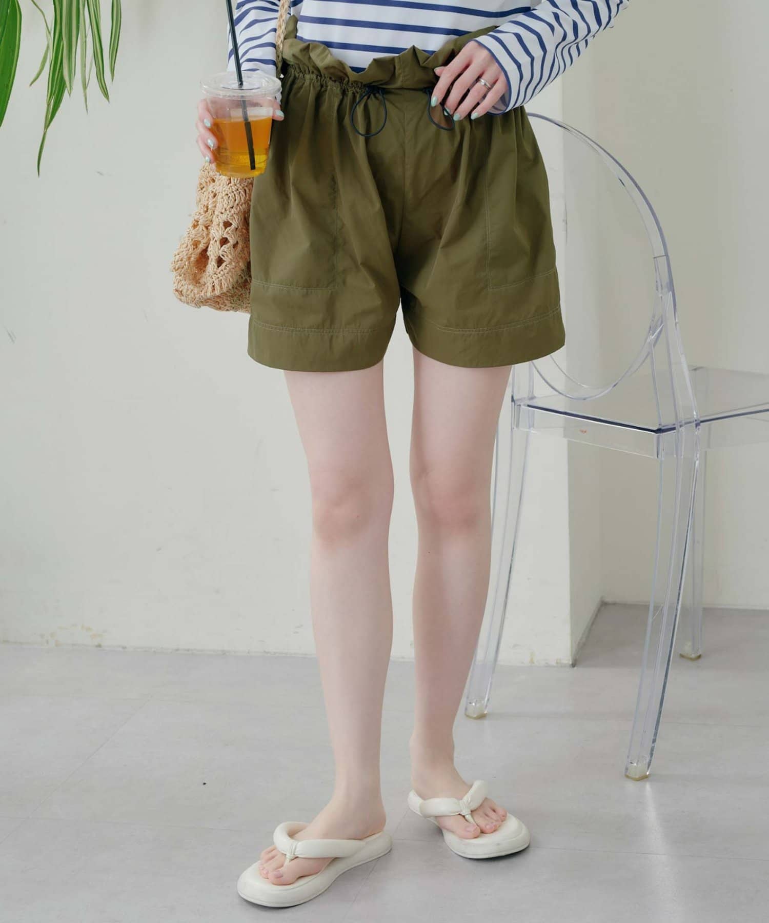 ショートパンツは、ウエストにドローコードがついていて楽ちん◎