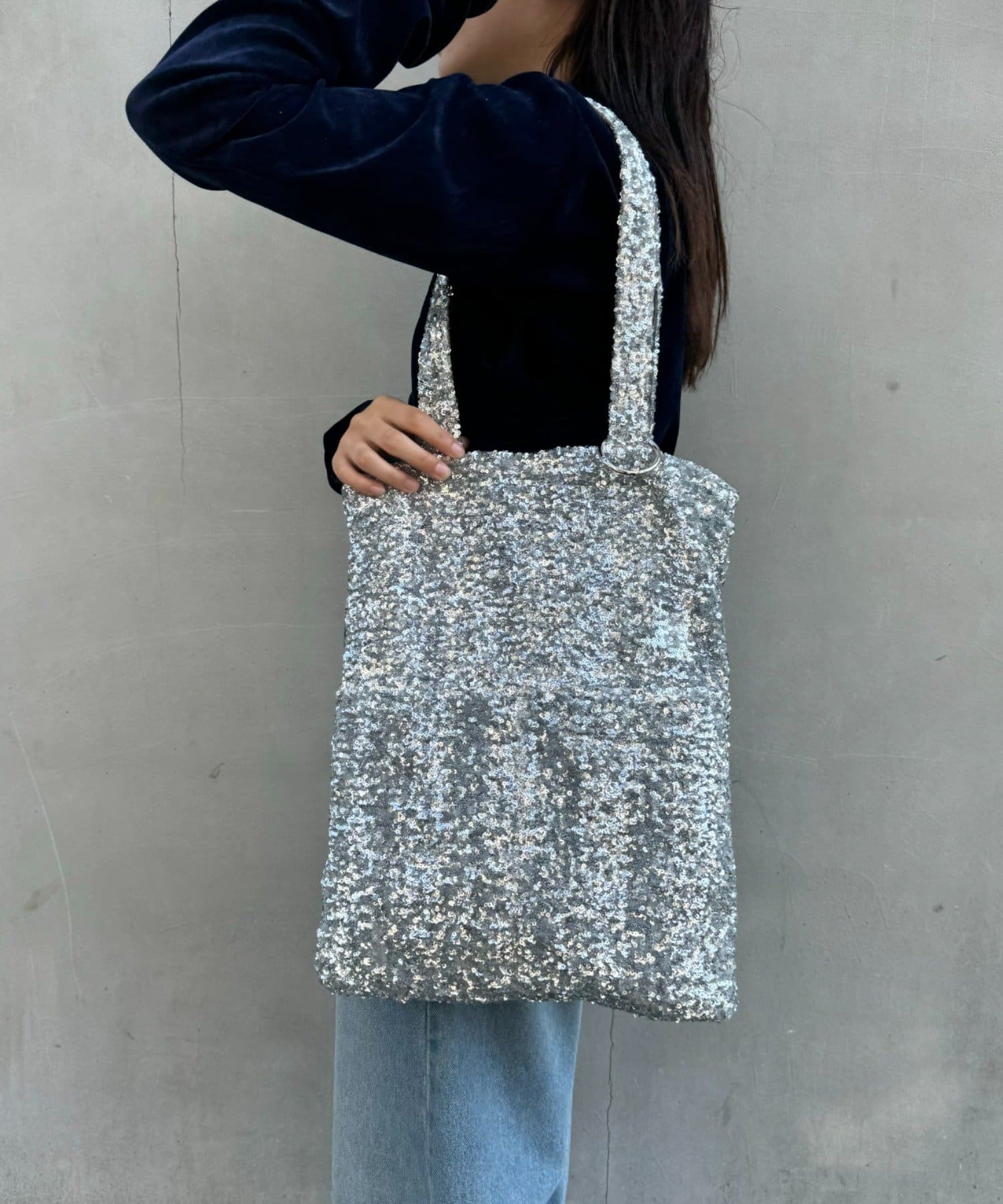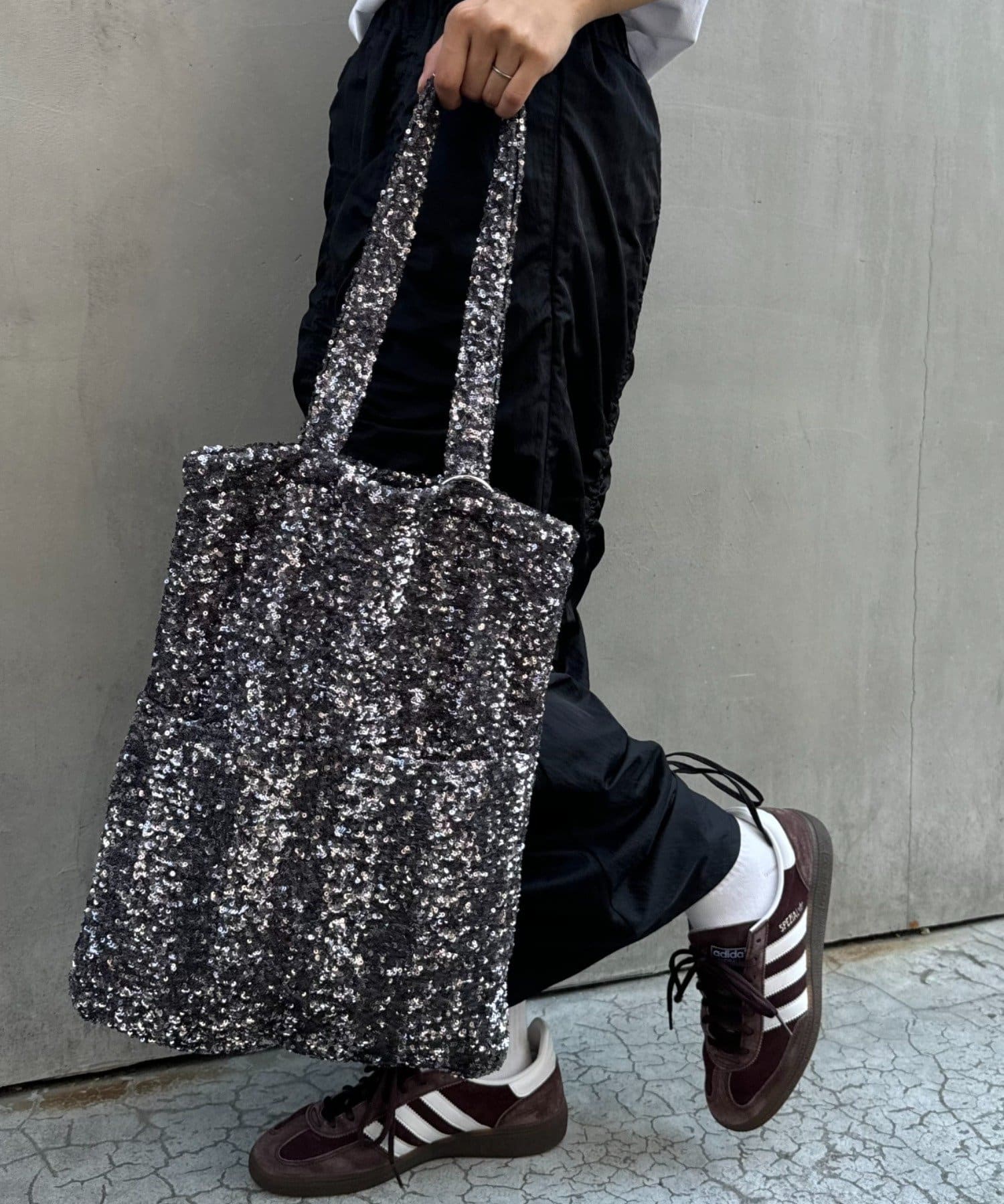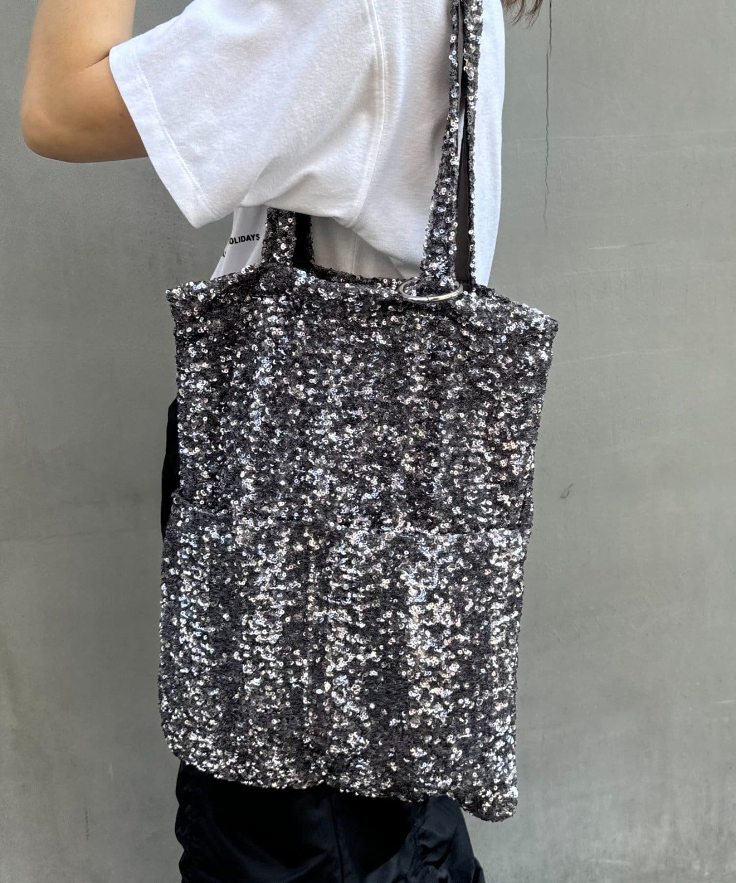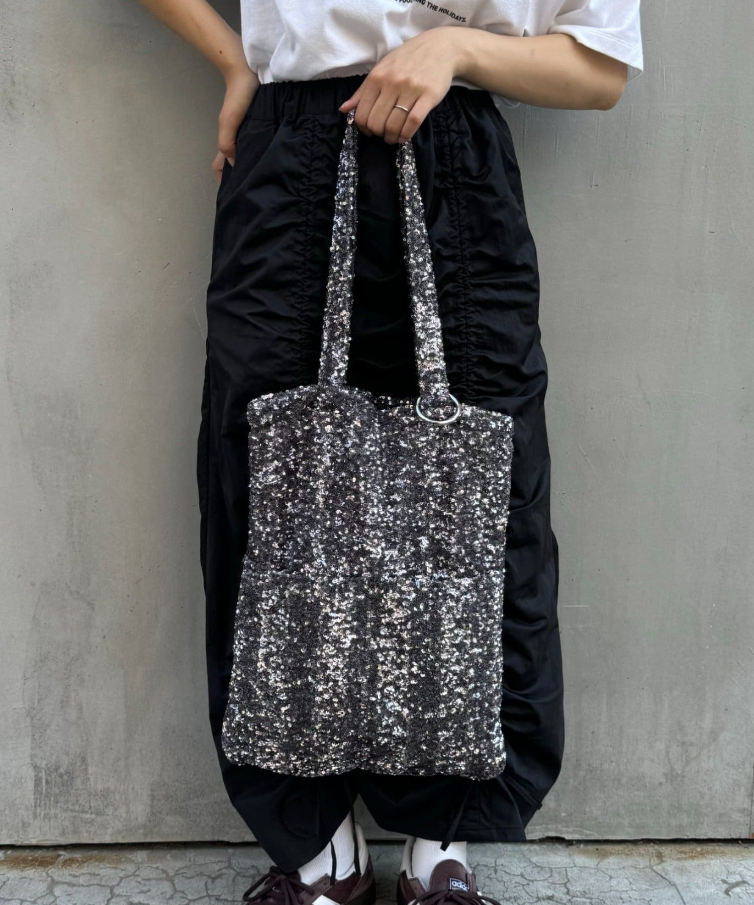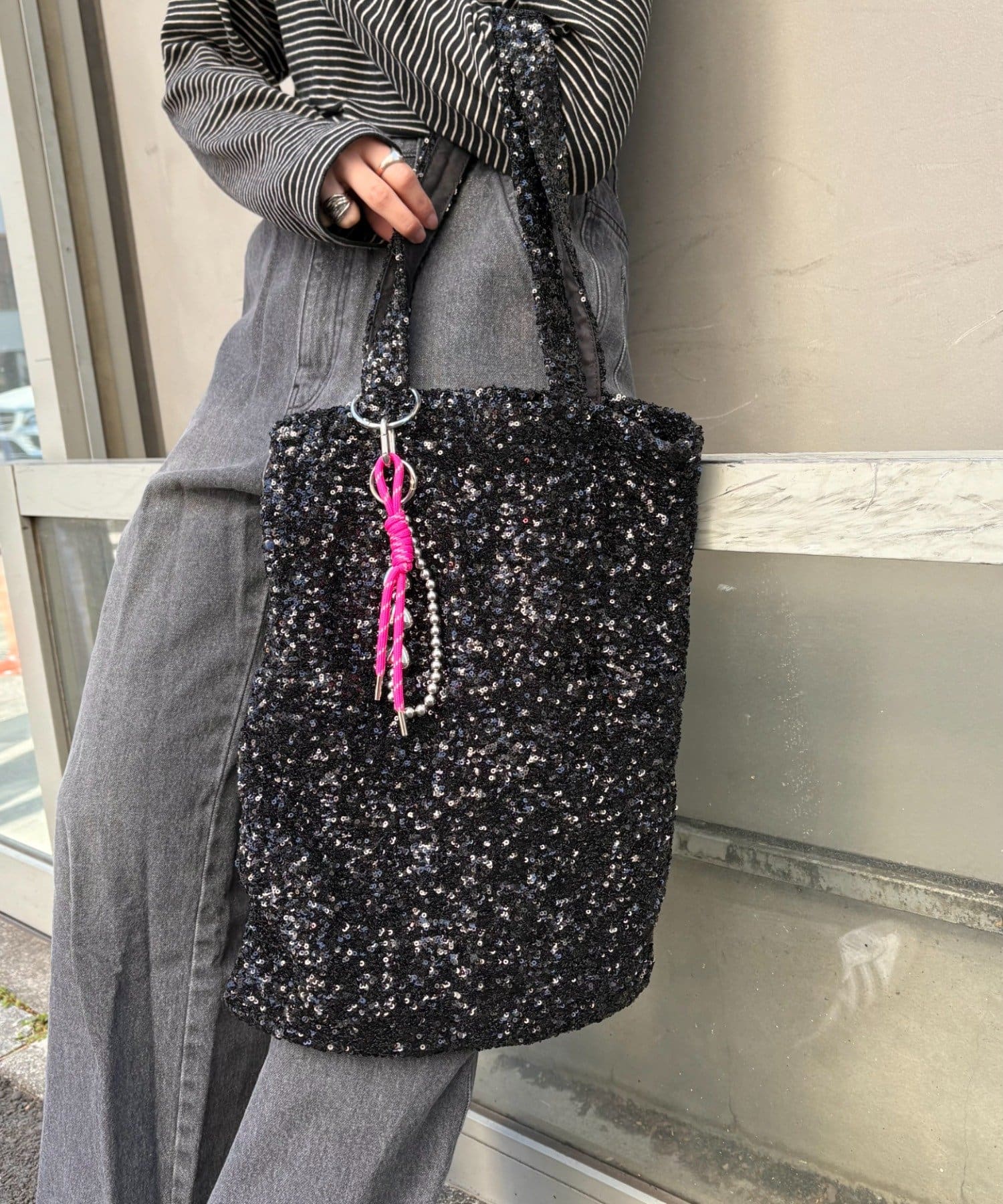 【A4サイズ対応】カラビナ付きスパンコールトートバッグ