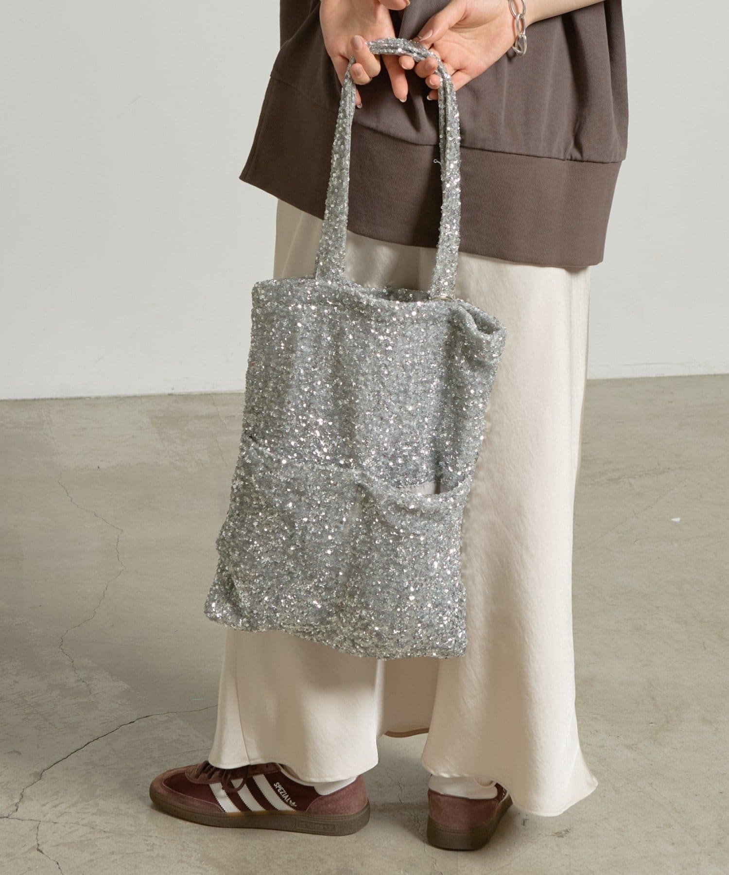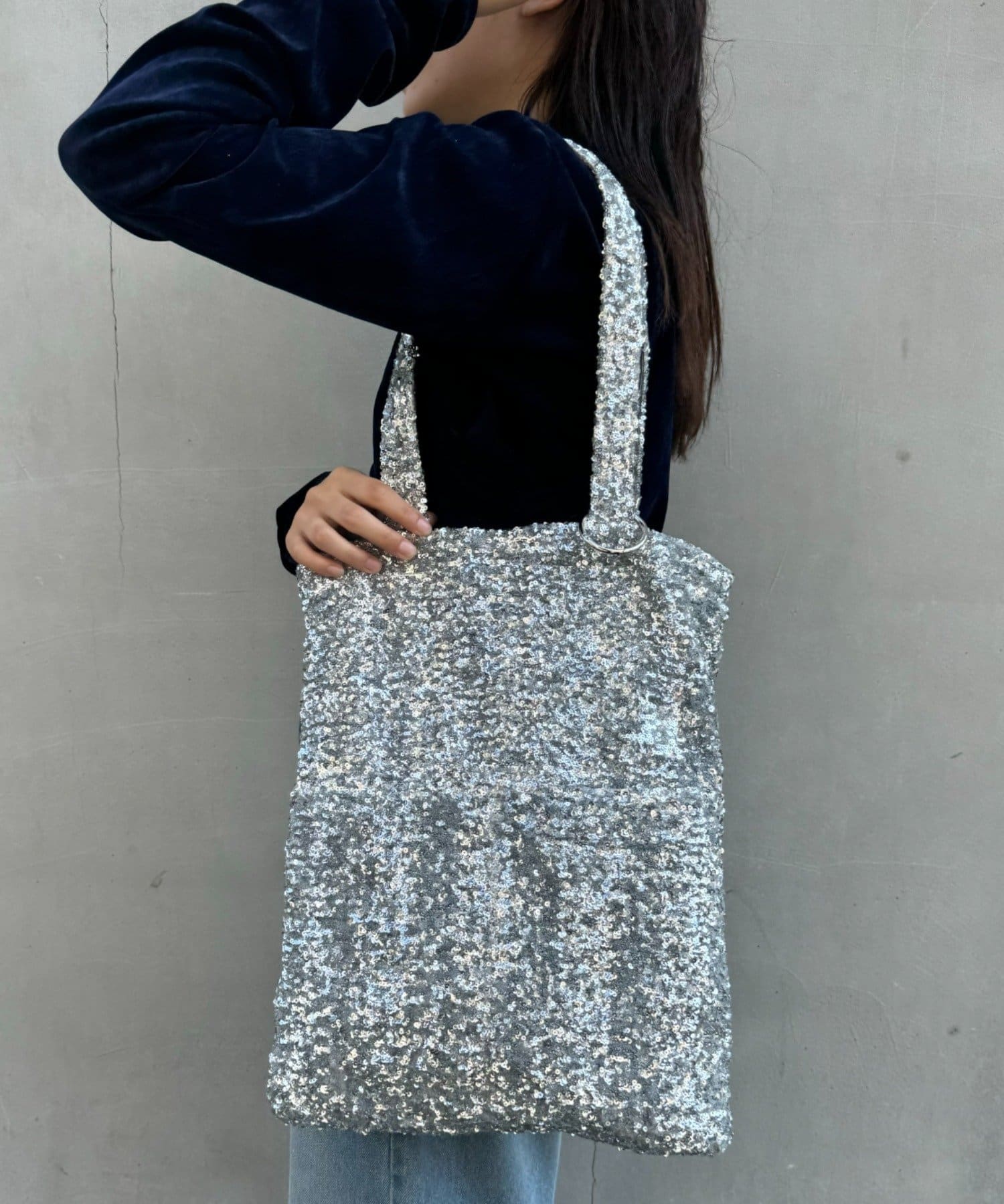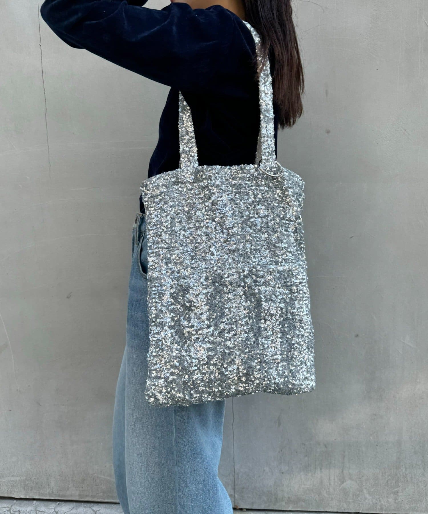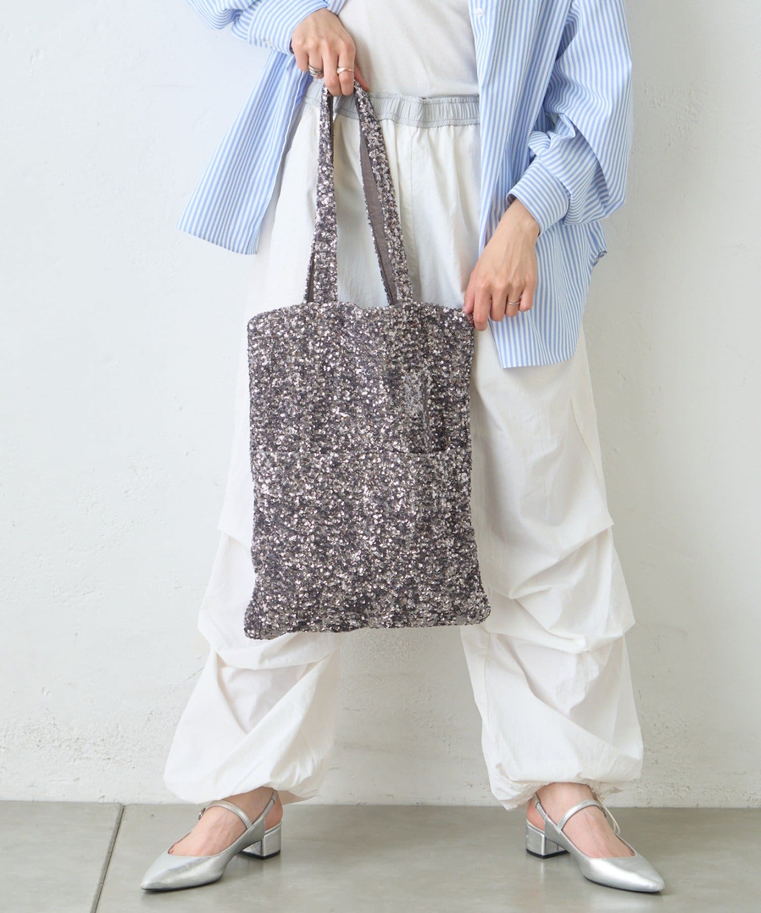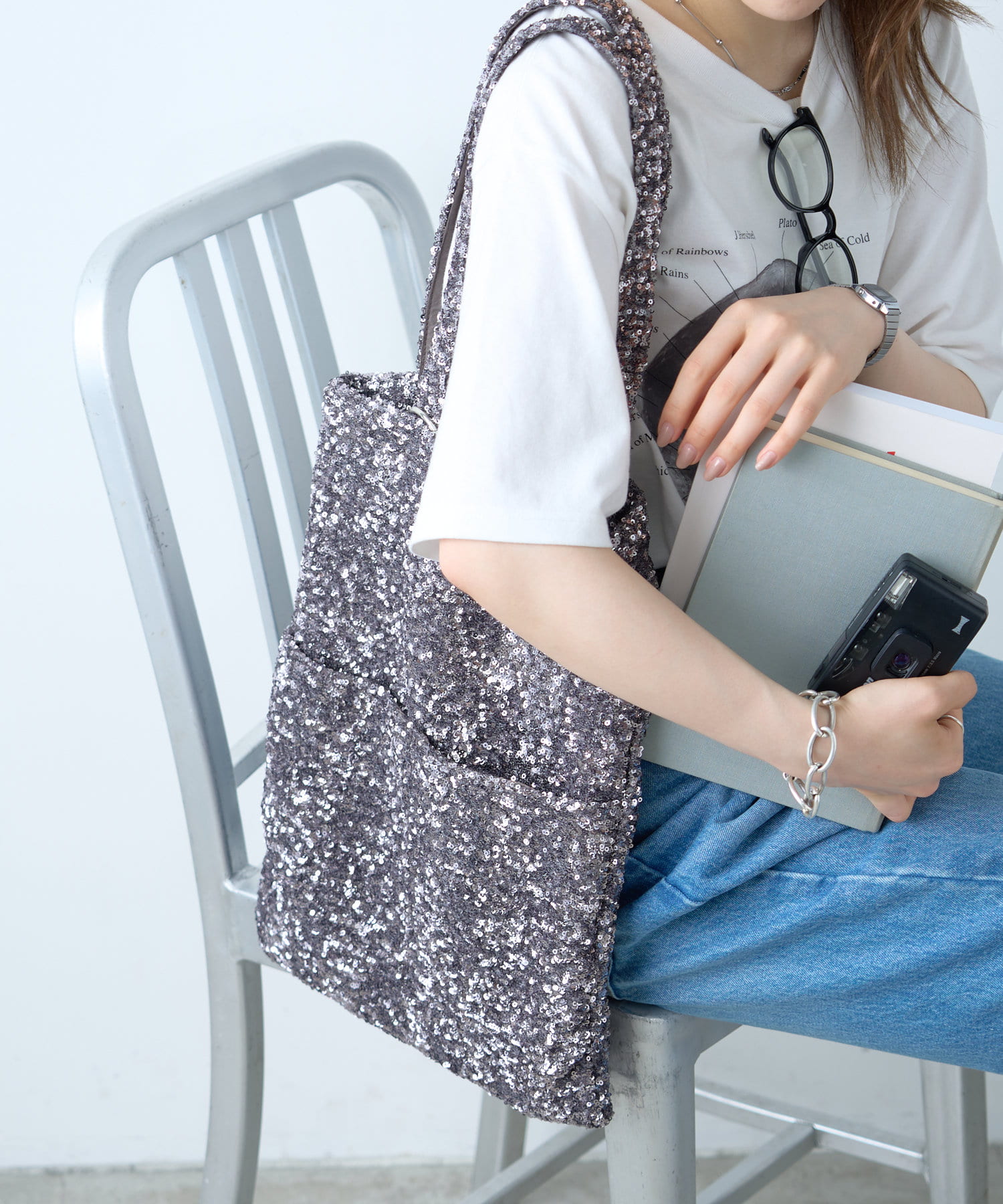 【A4サイズ対応】カラビナ付きスパンコールトートバッグ