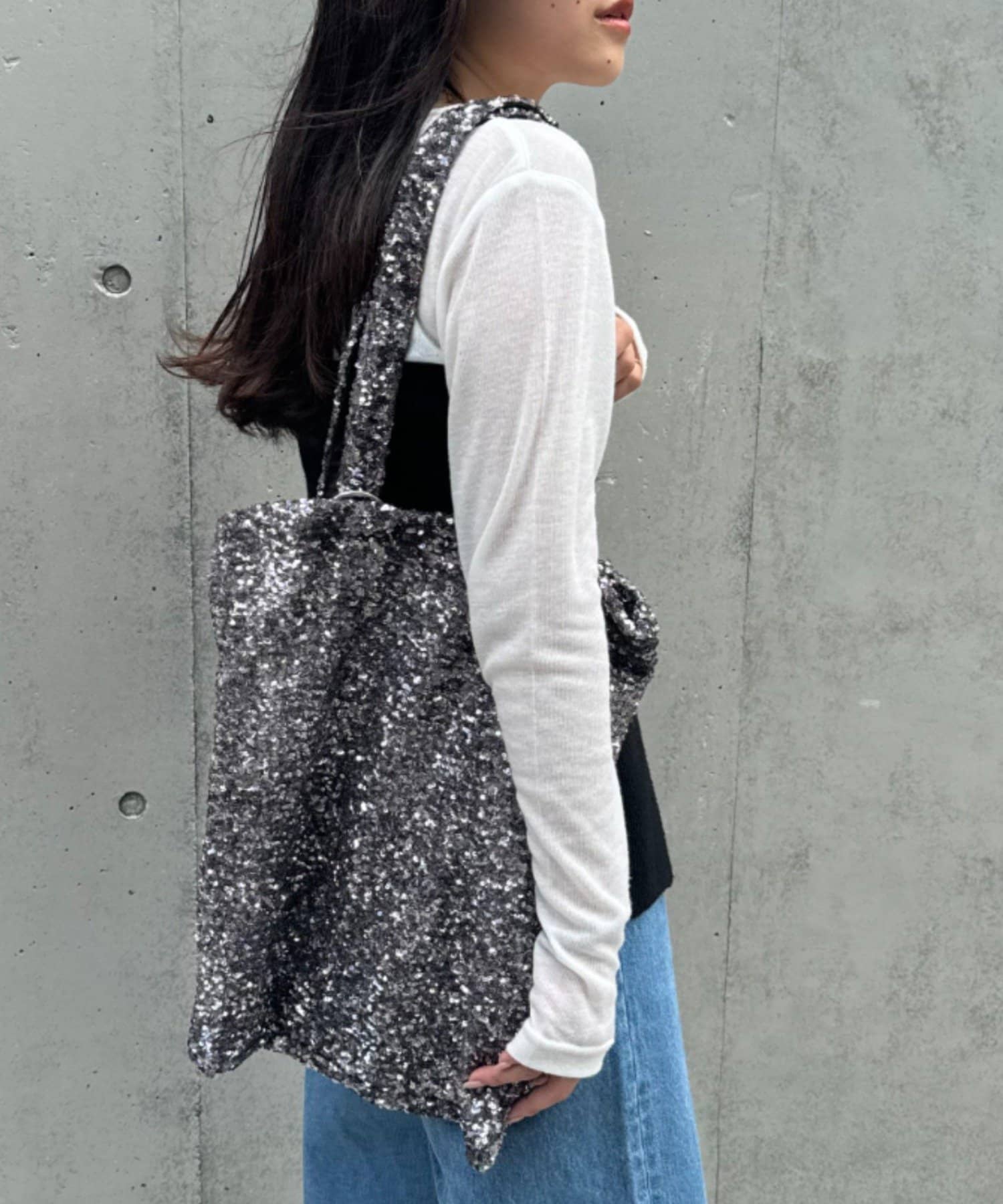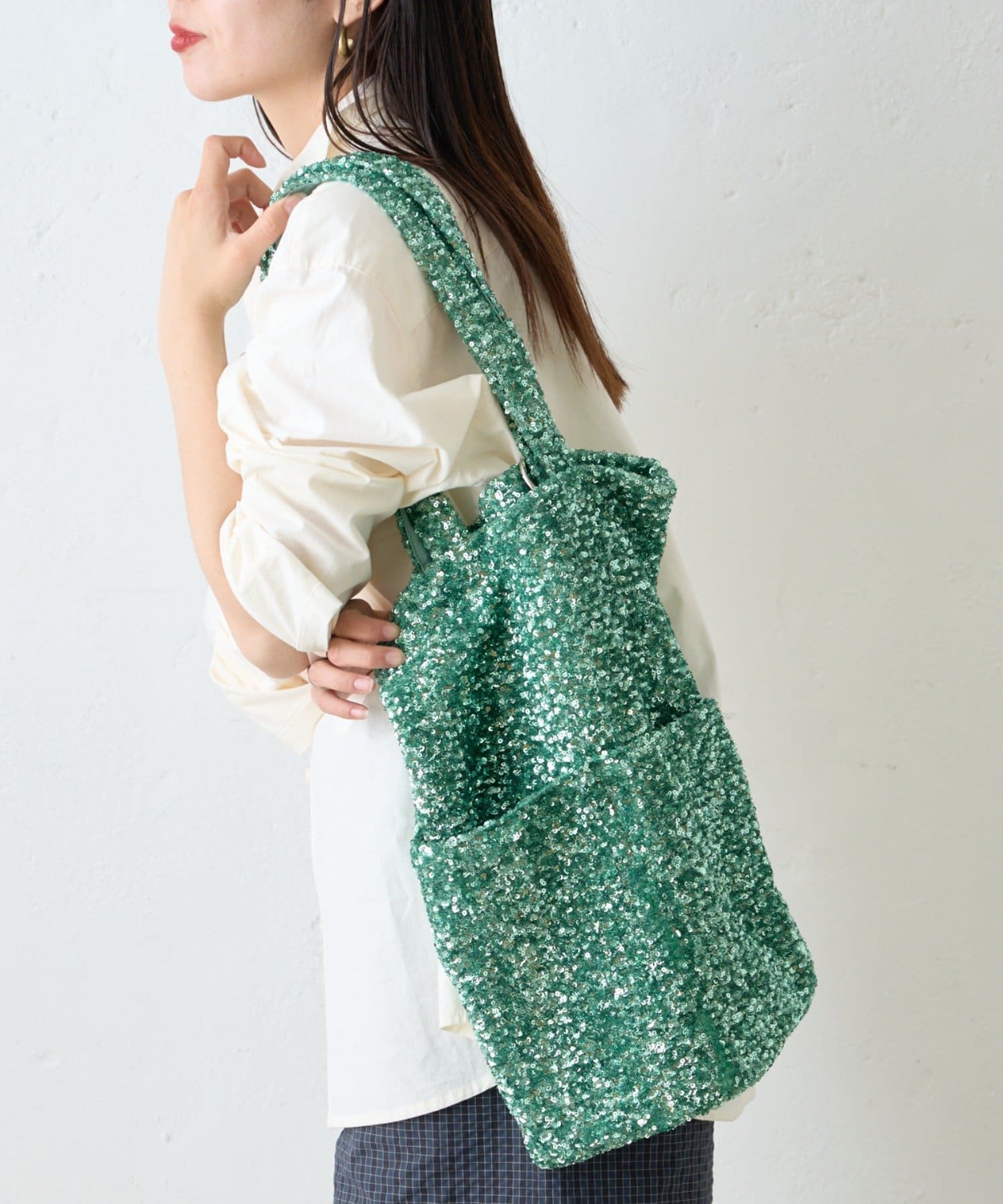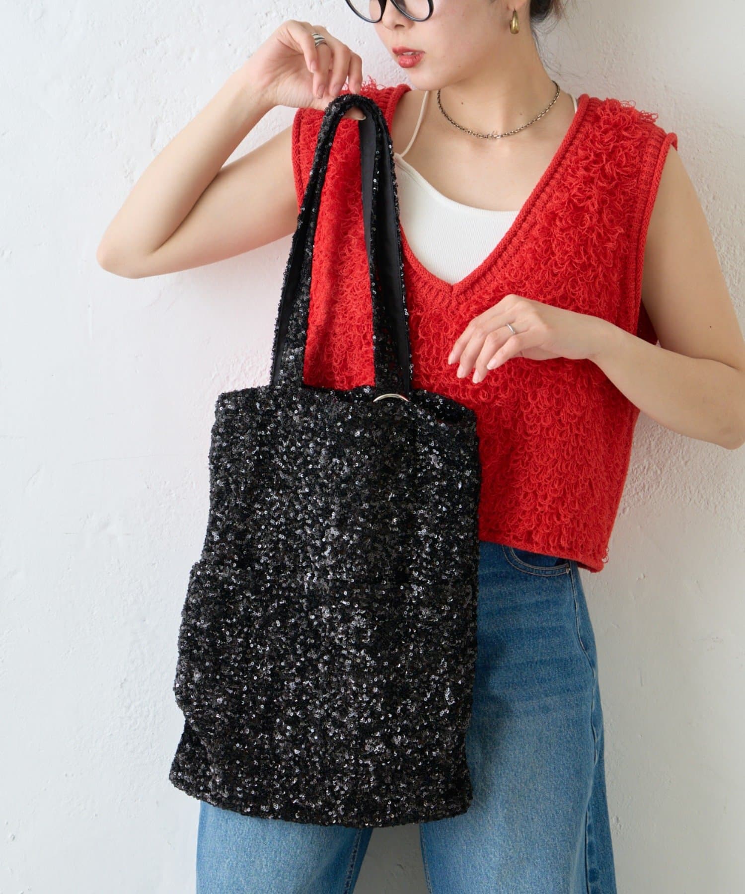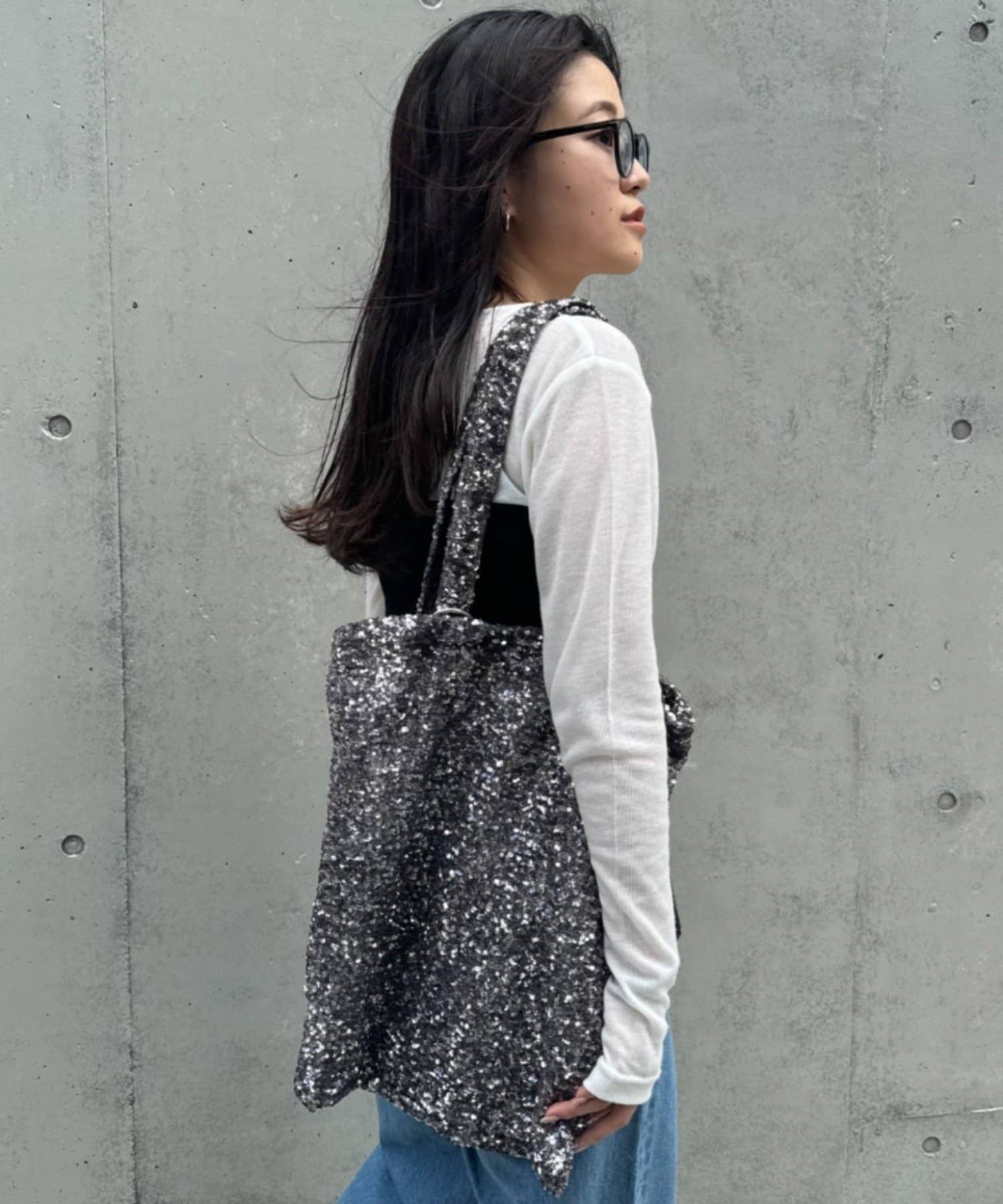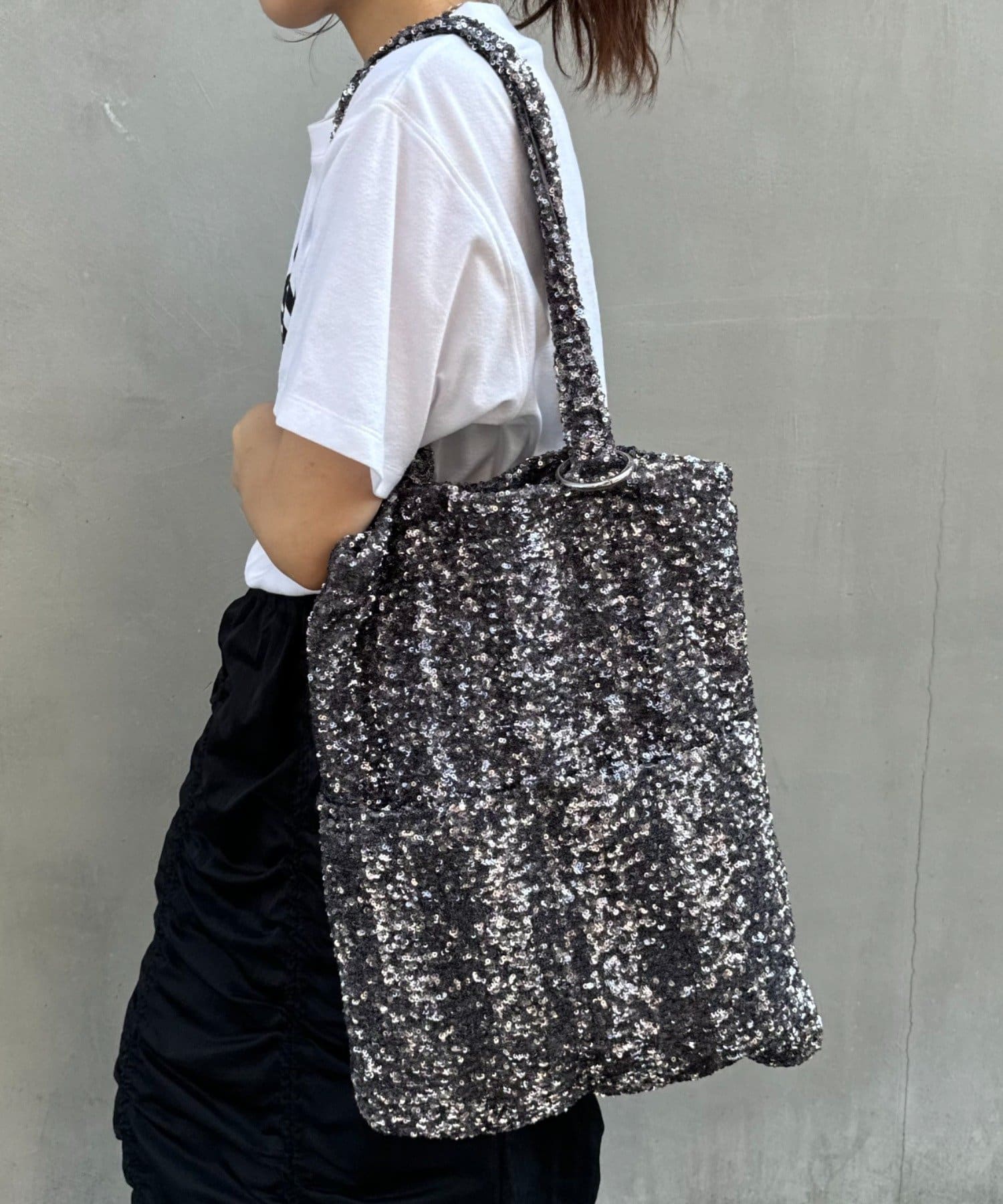 【A4サイズ対応】カラビナ付きスパンコールトートバッグ