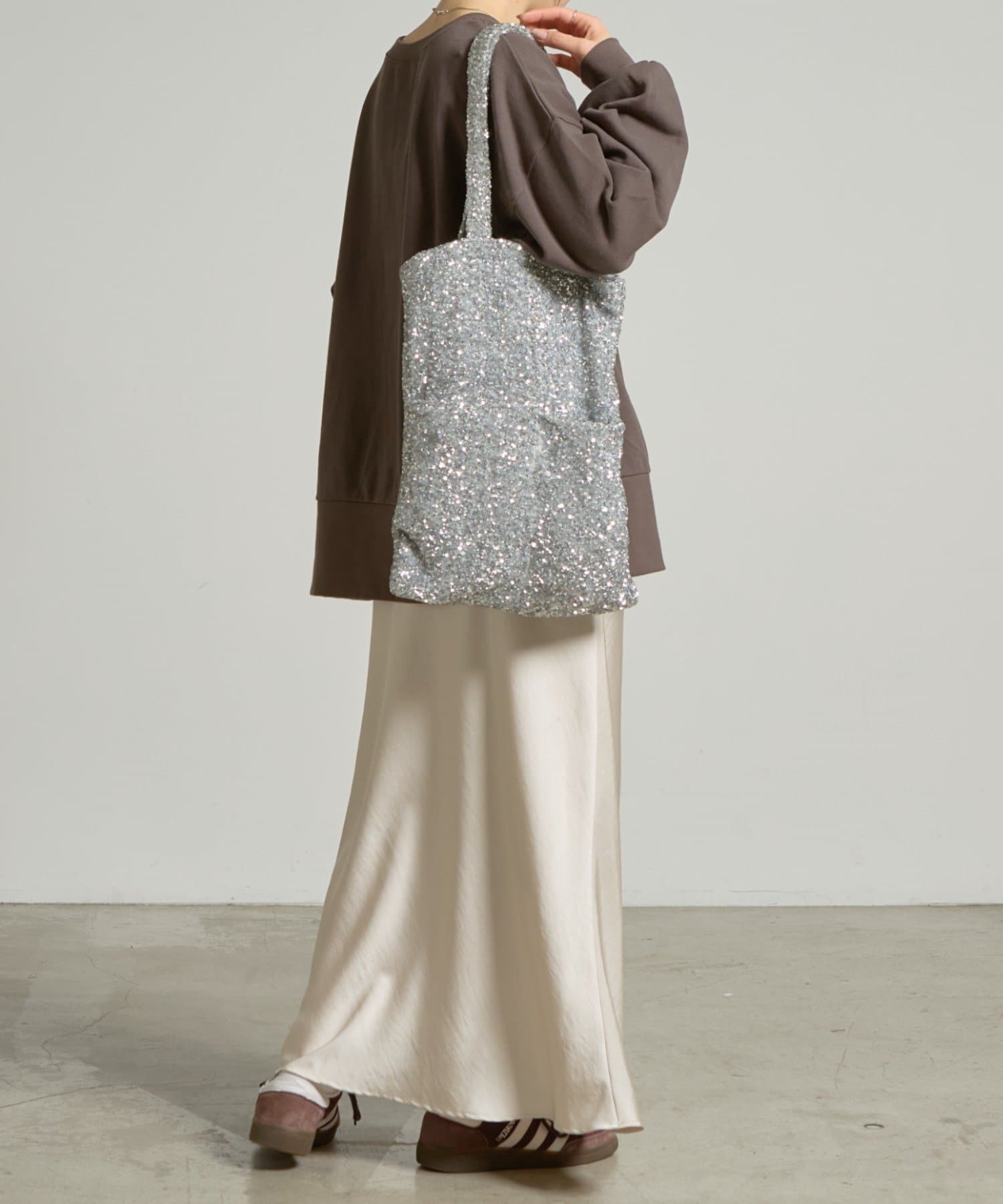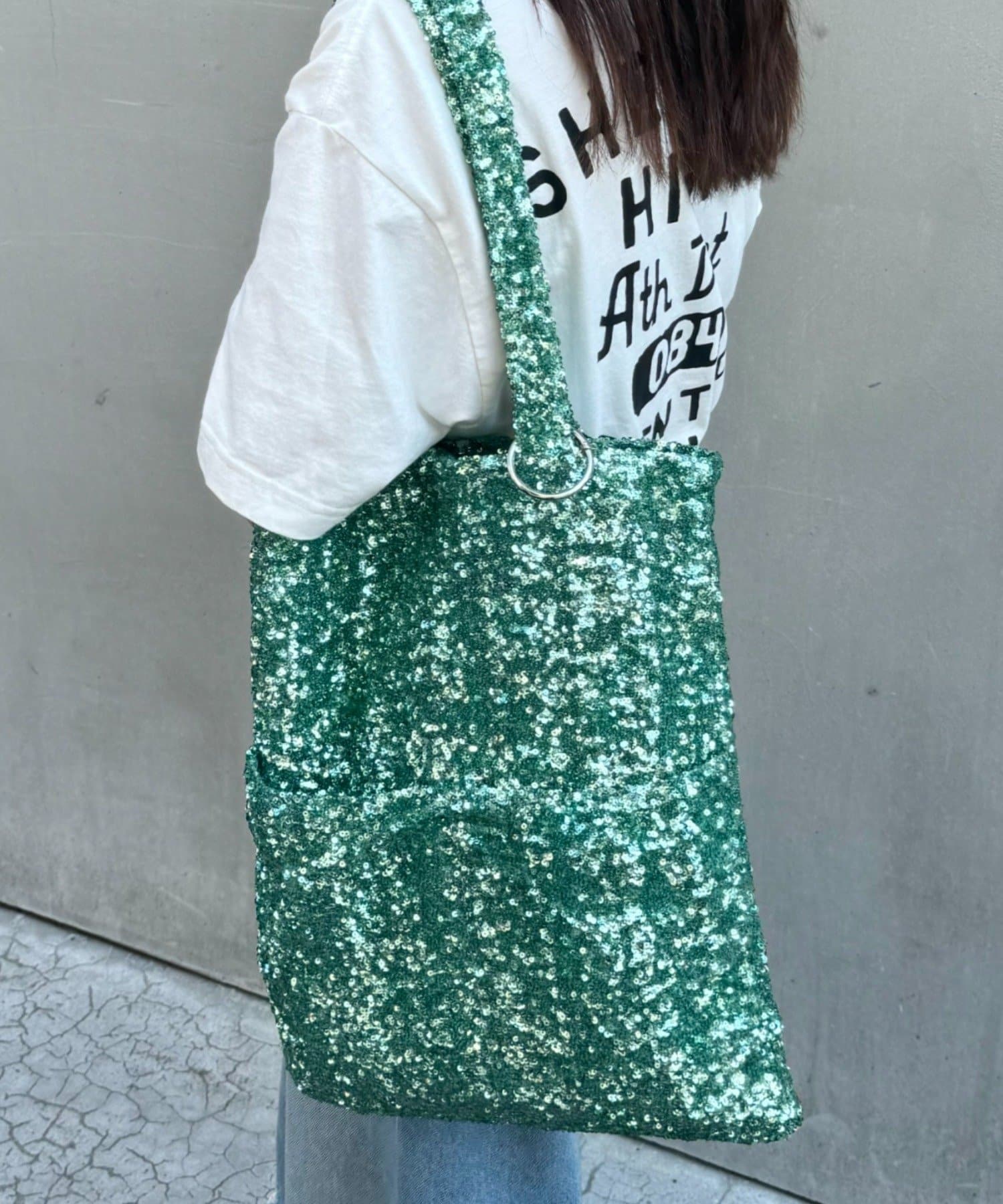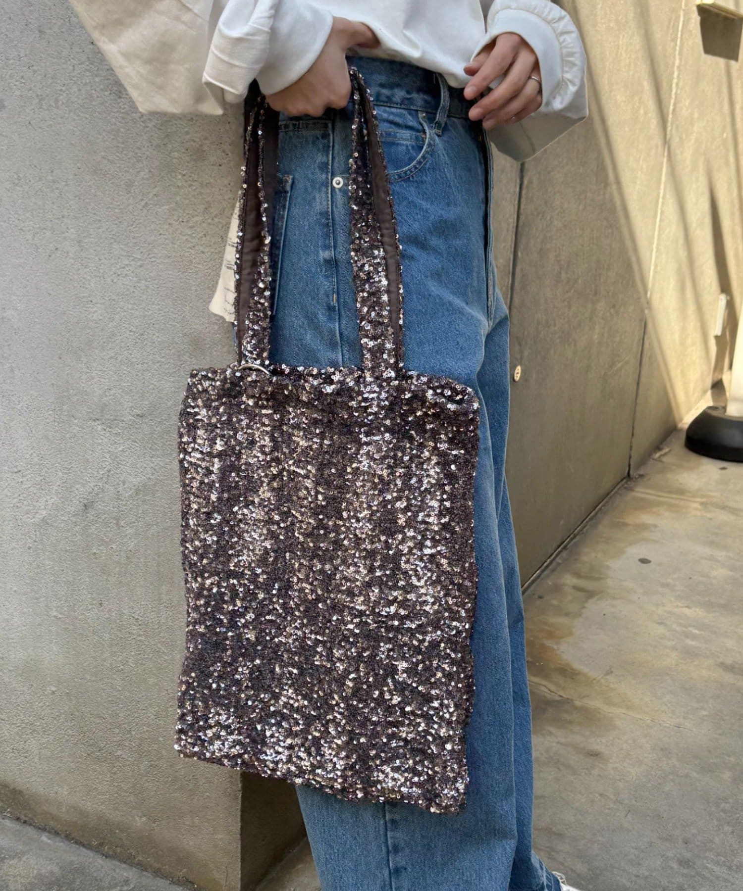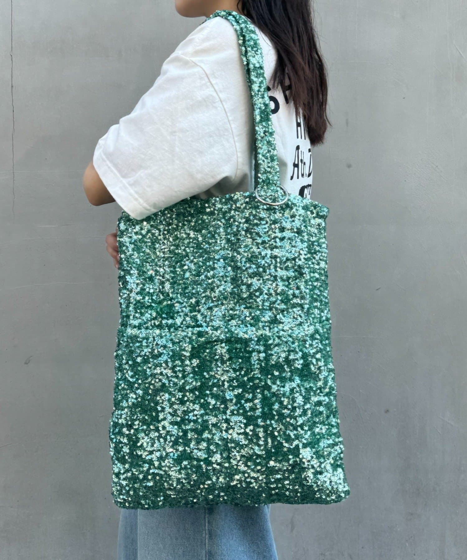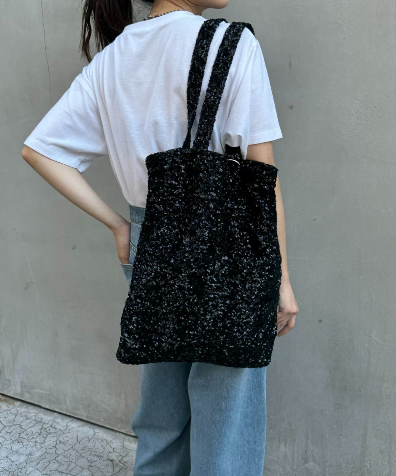 【A4サイズ対応】カラビナ付きスパンコールトートバッグ
