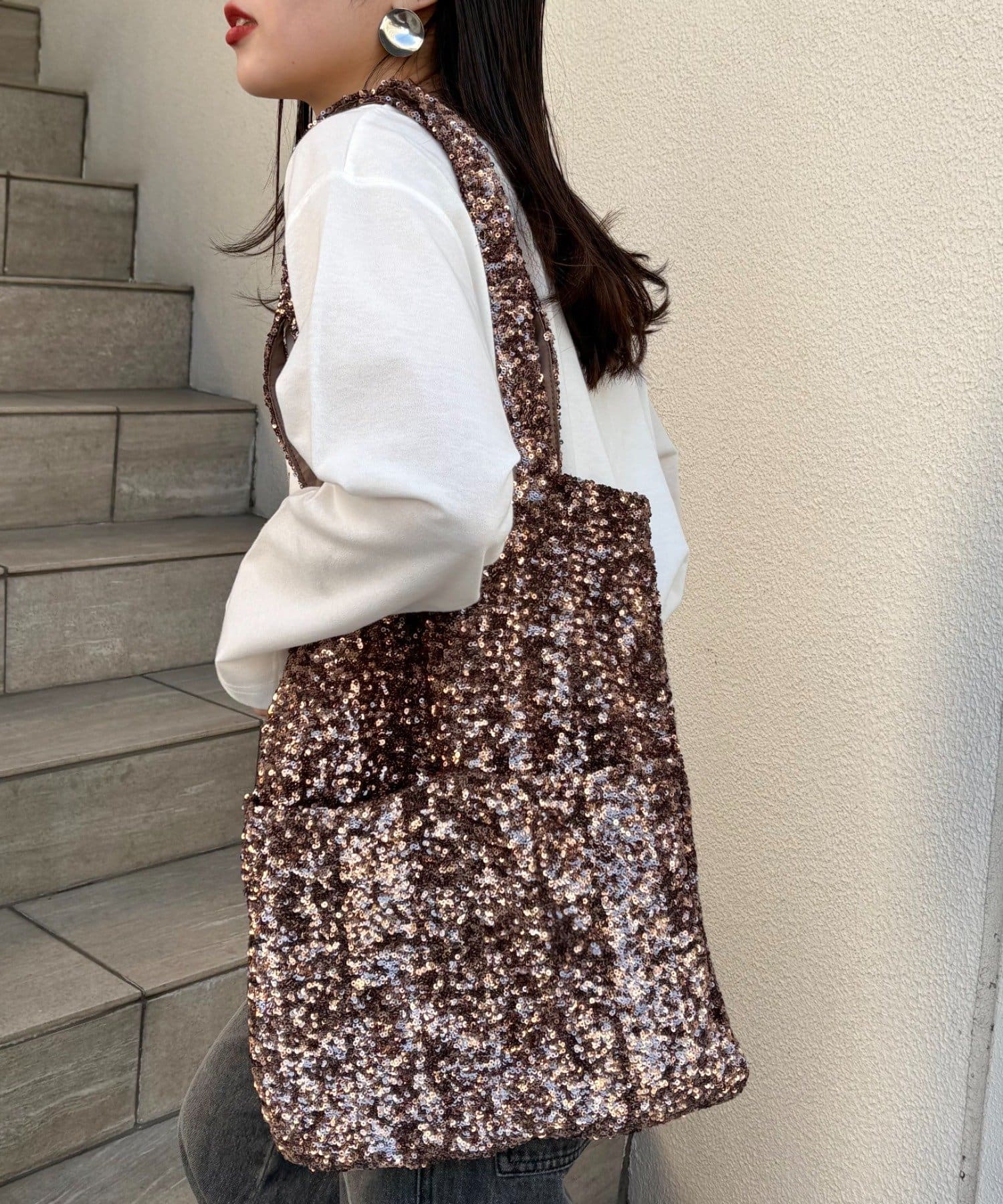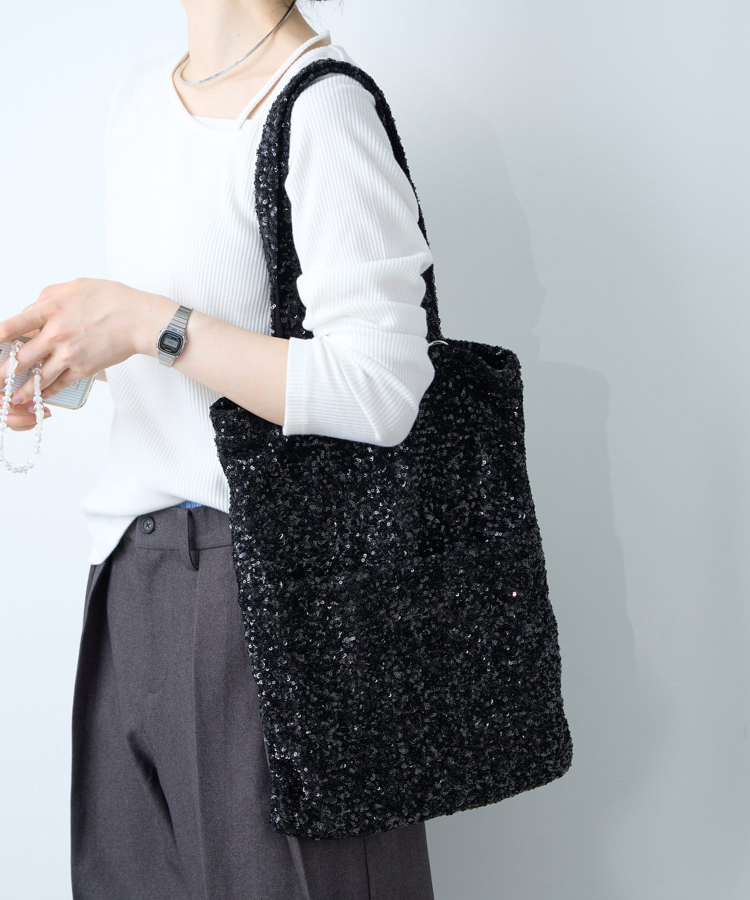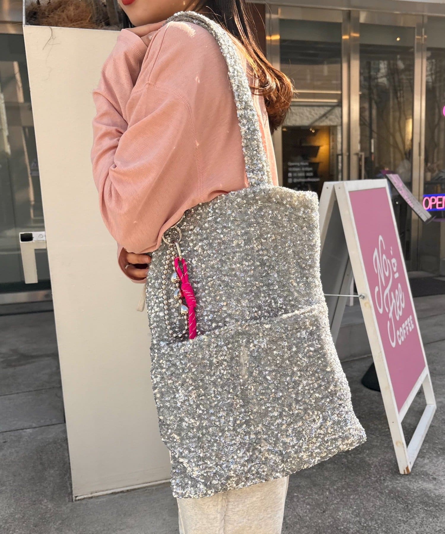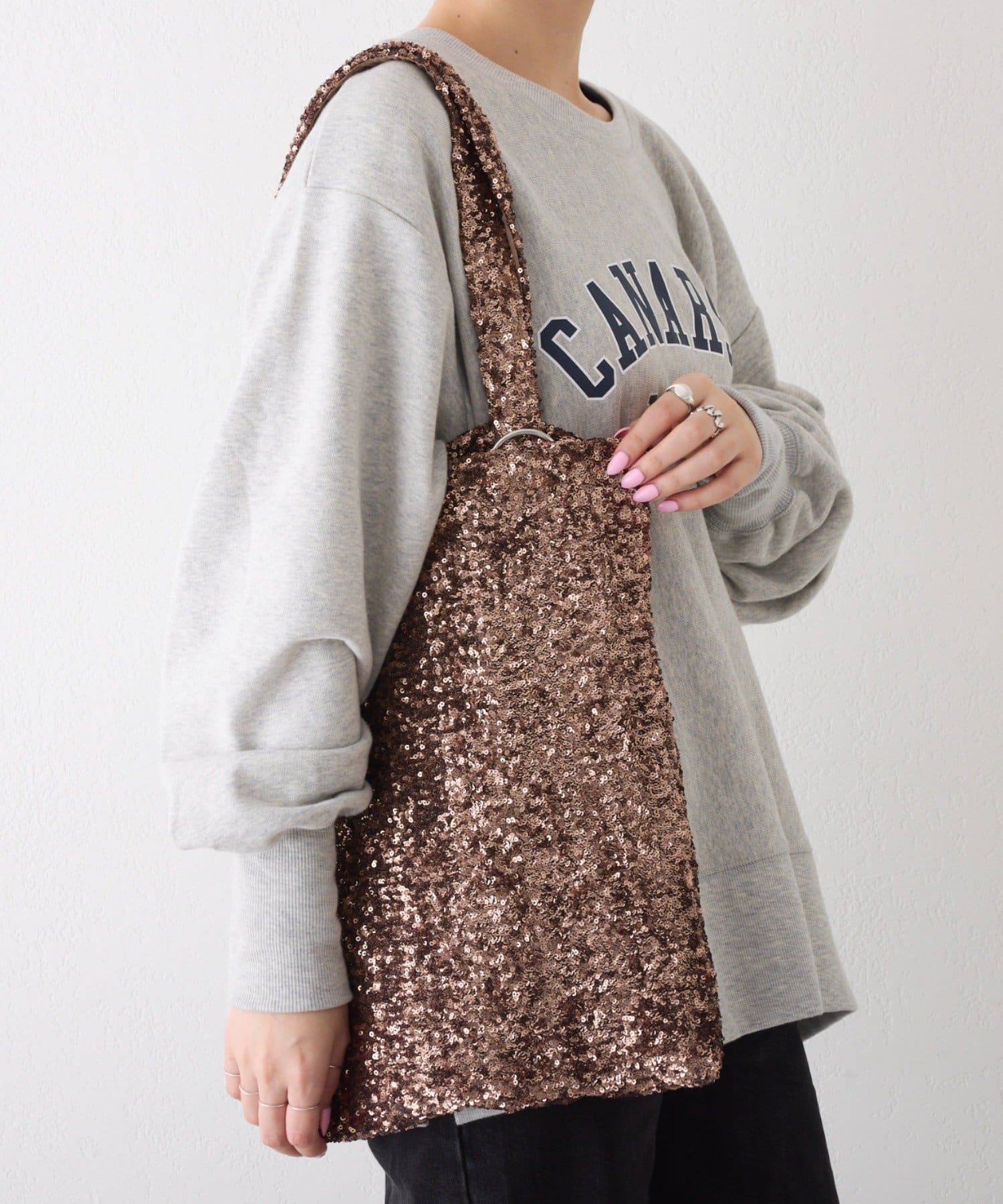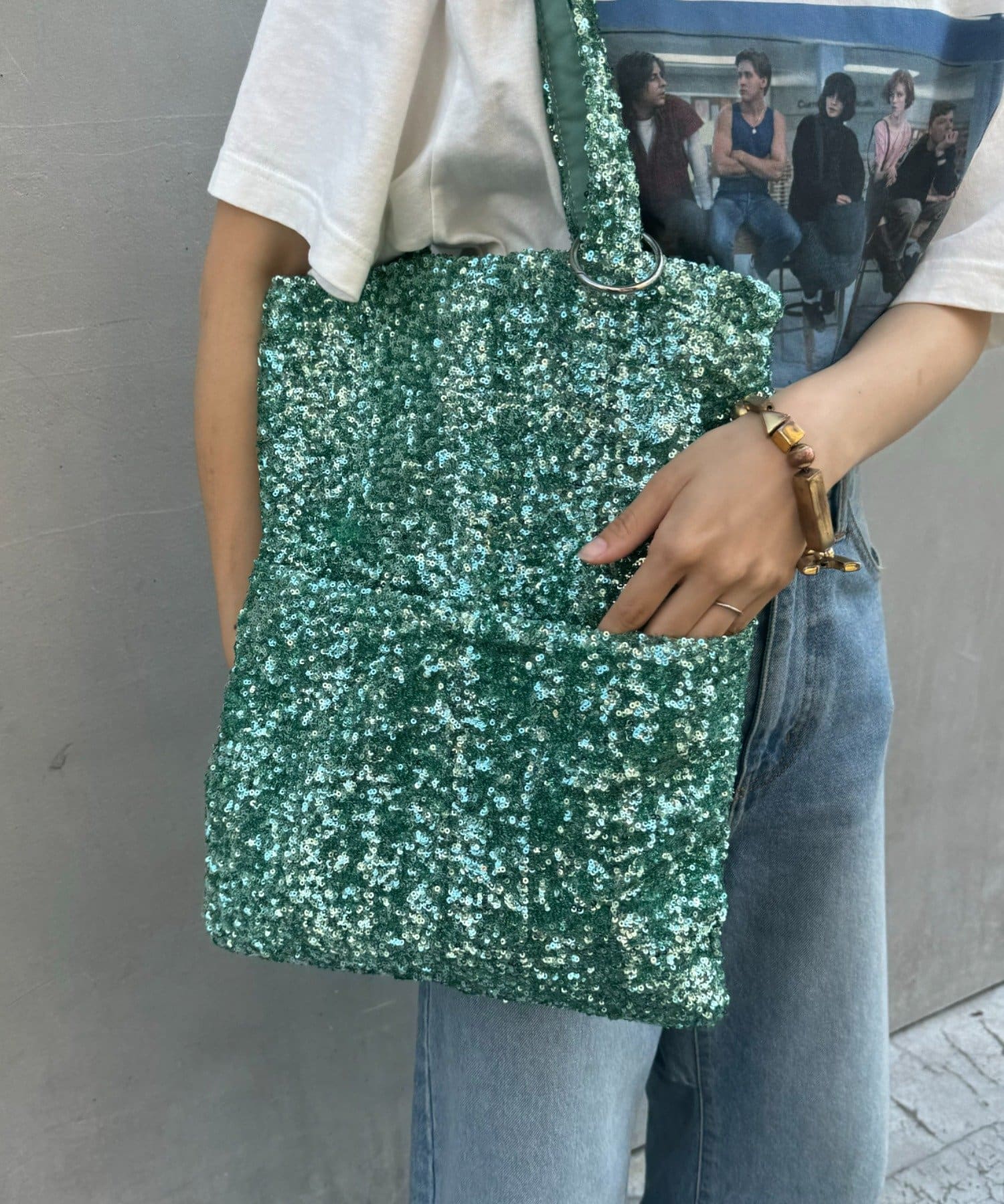 【A4サイズ対応】カラビナ付きスパンコールトートバッグ