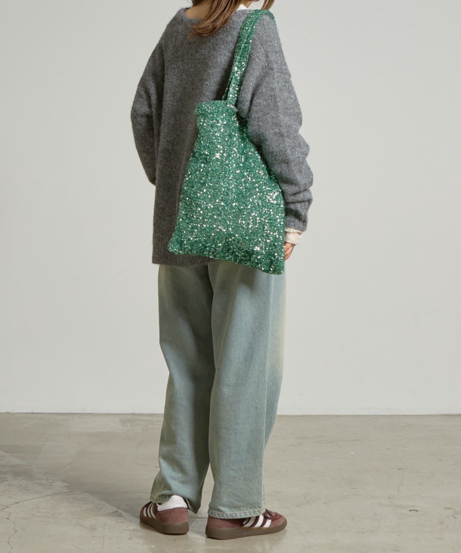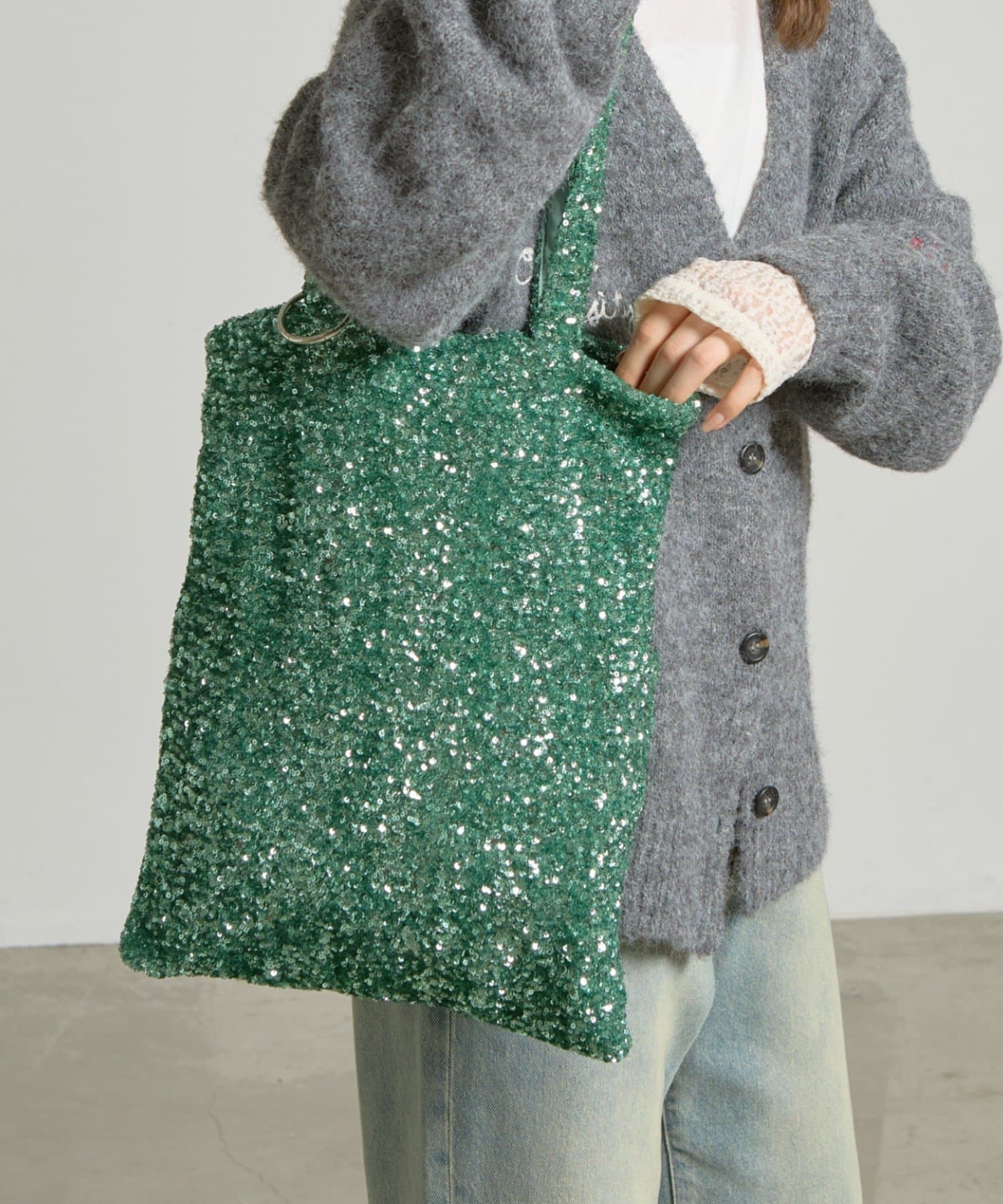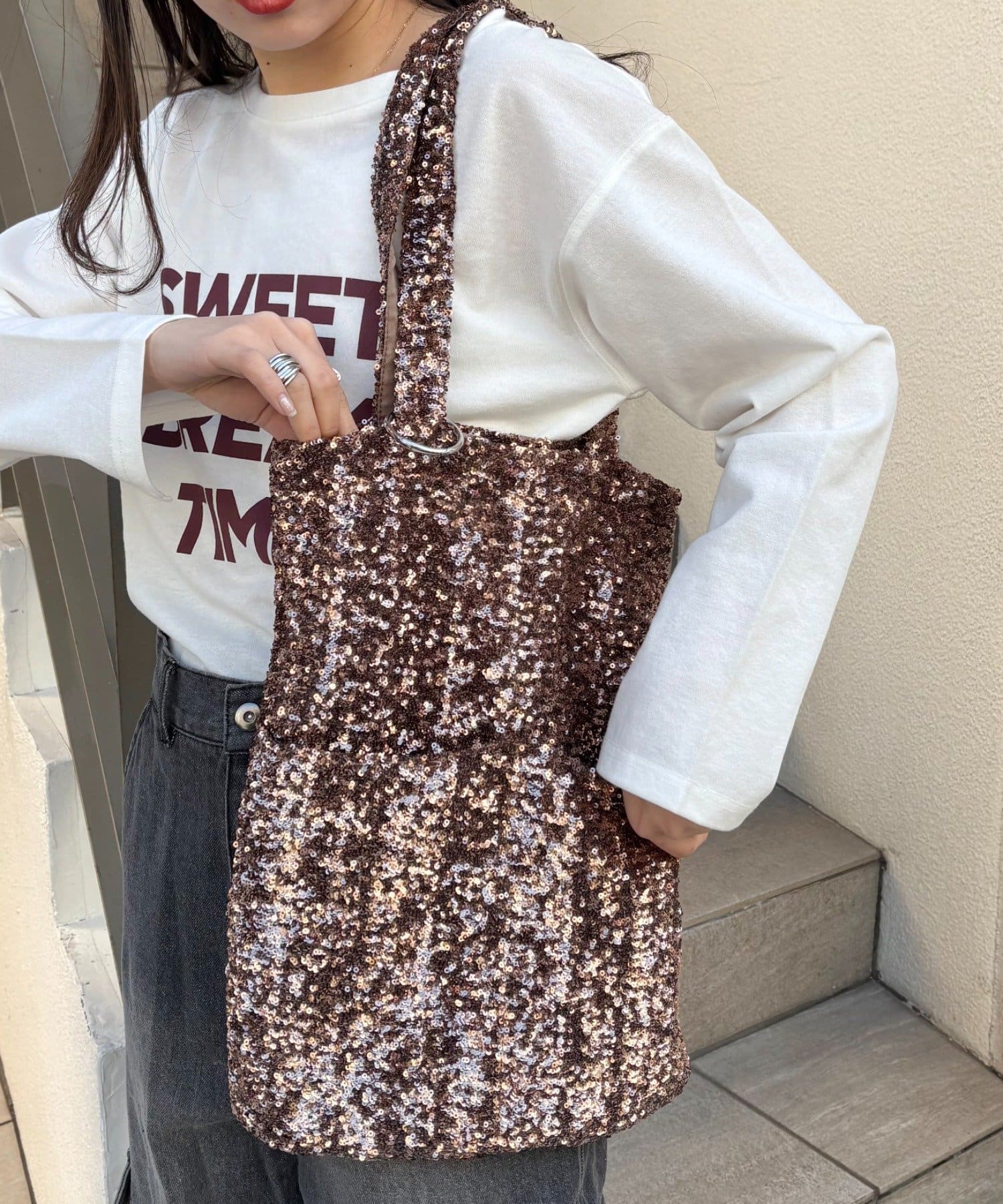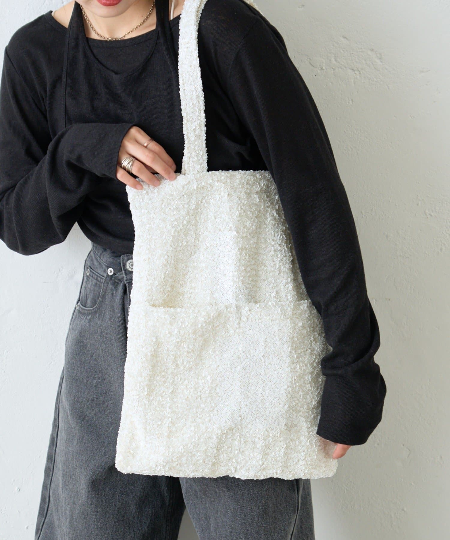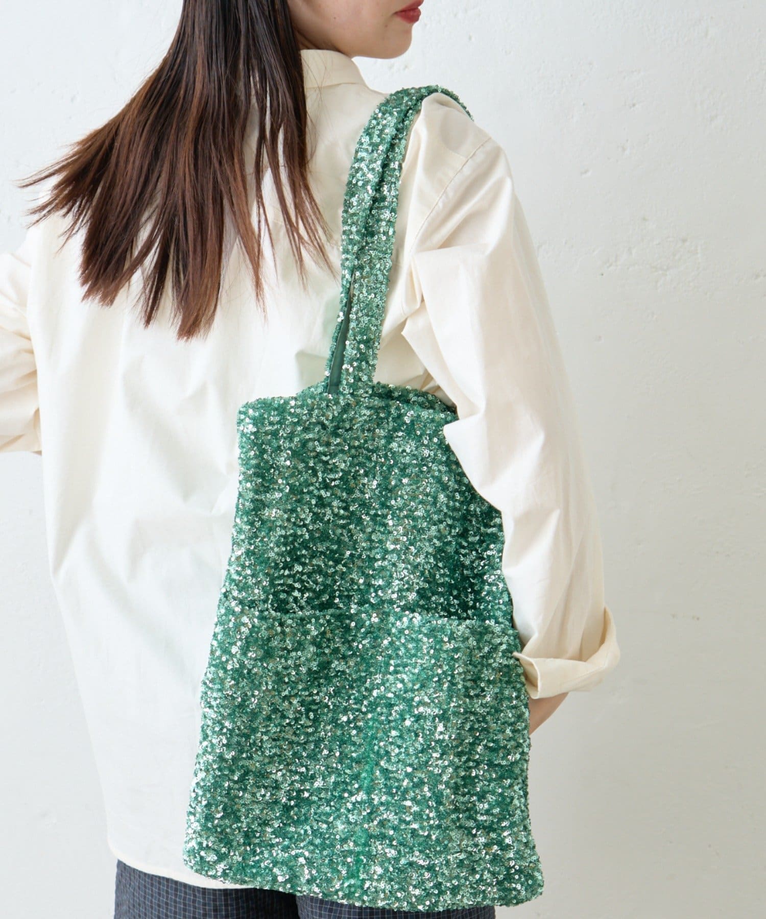 【A4サイズ対応】カラビナ付きスパンコールトートバッグ