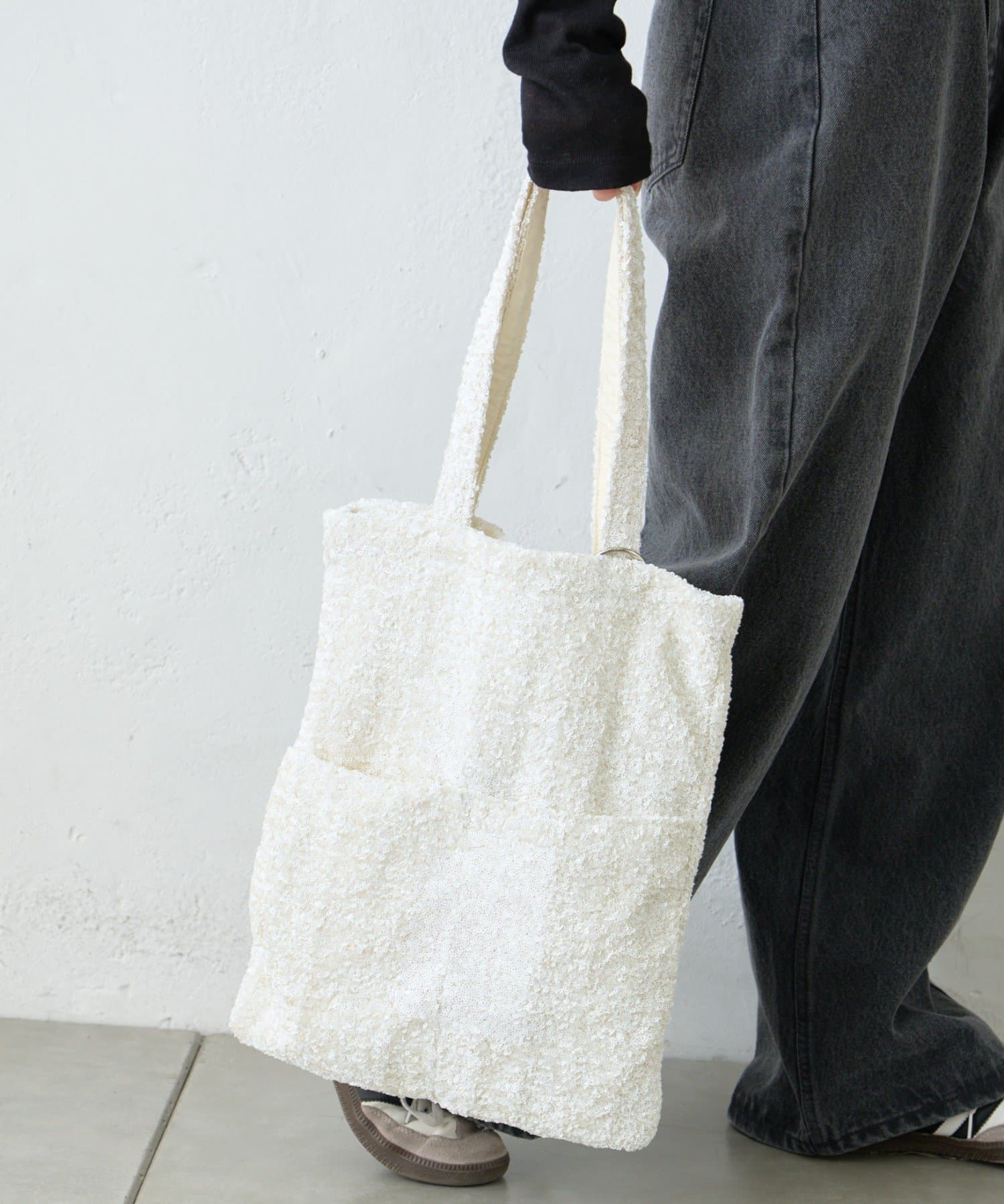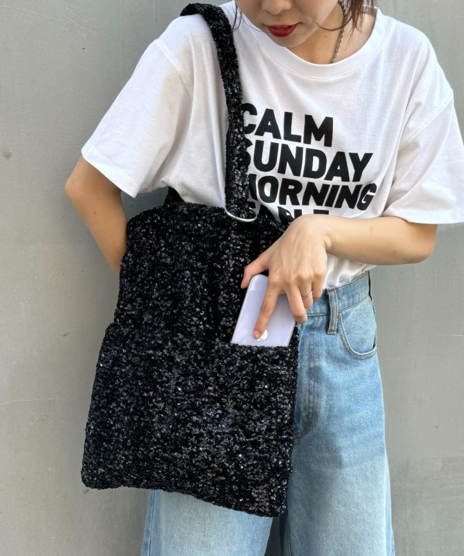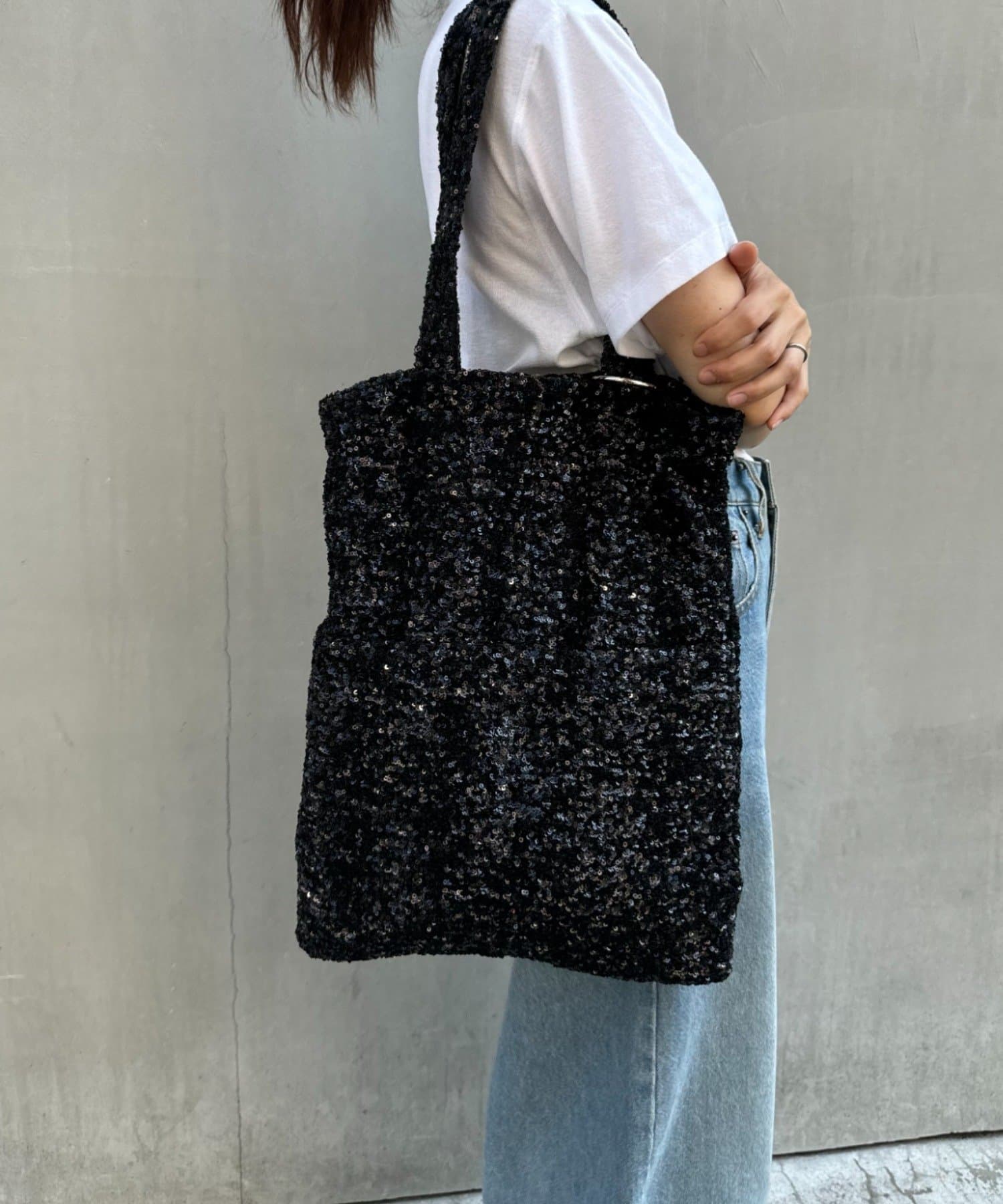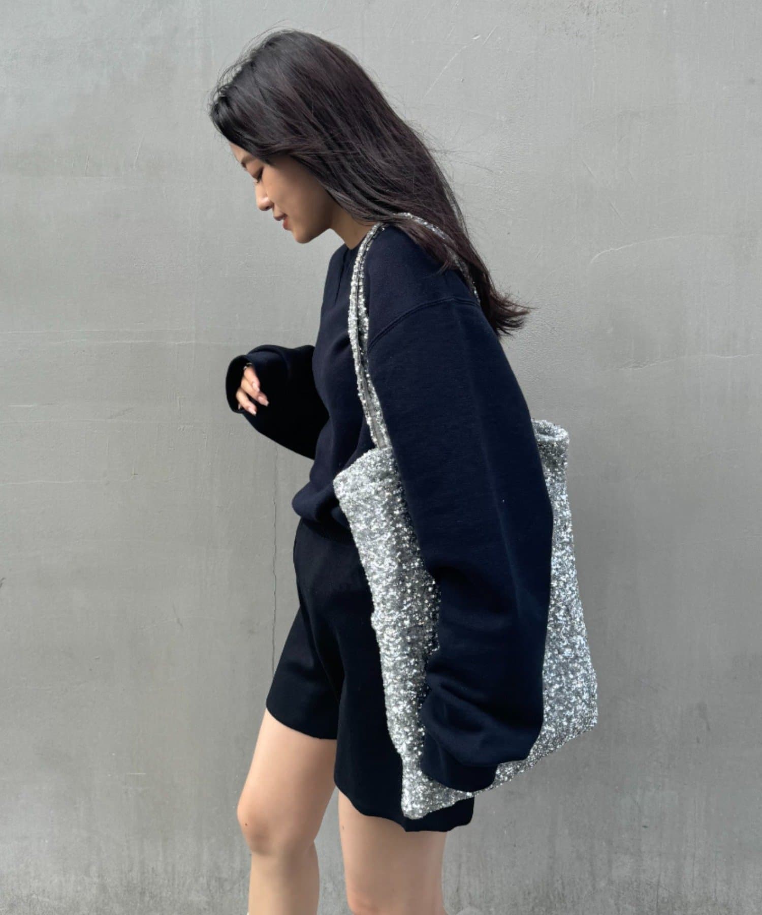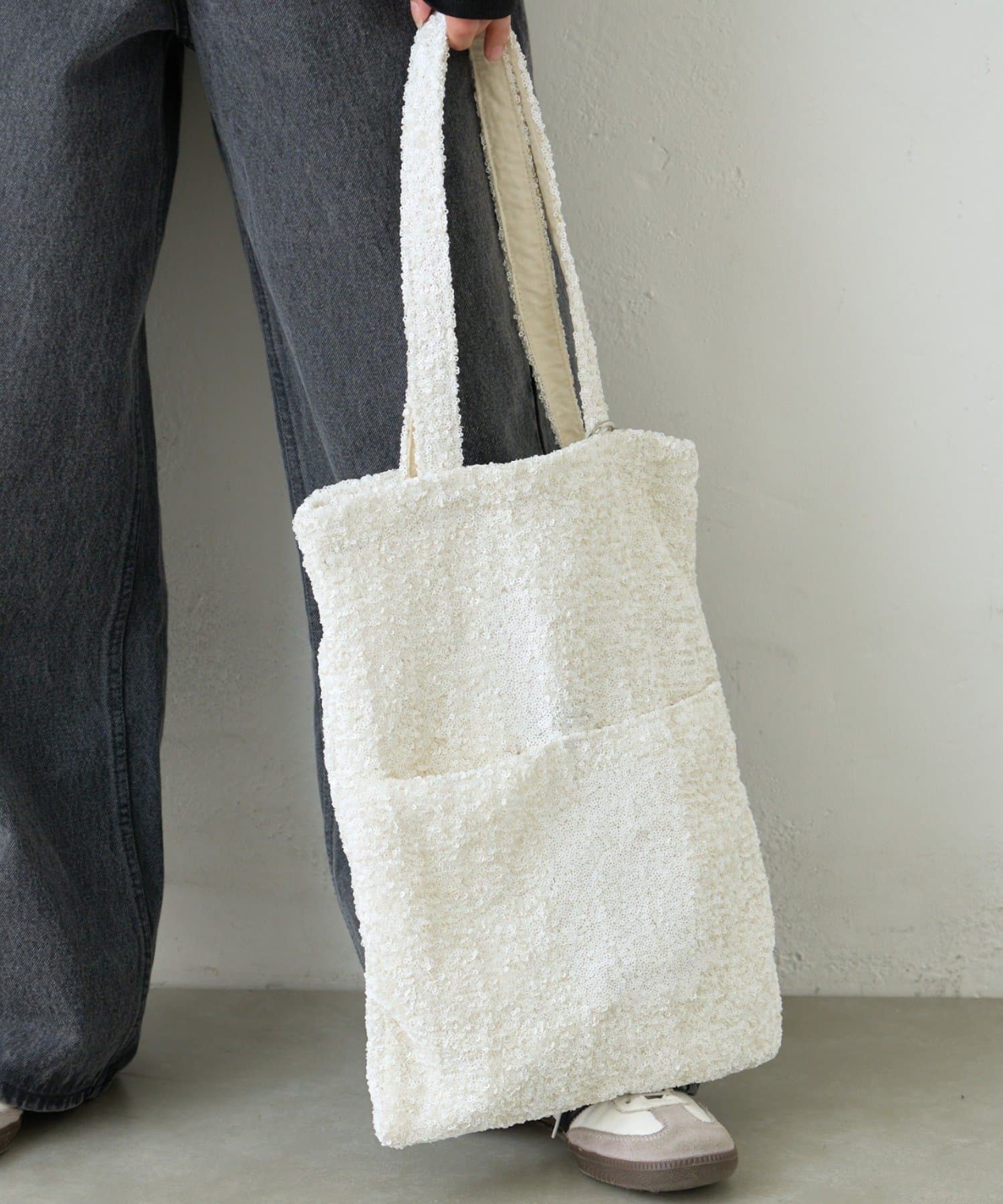 【A4サイズ対応】カラビナ付きスパンコールトートバッグ