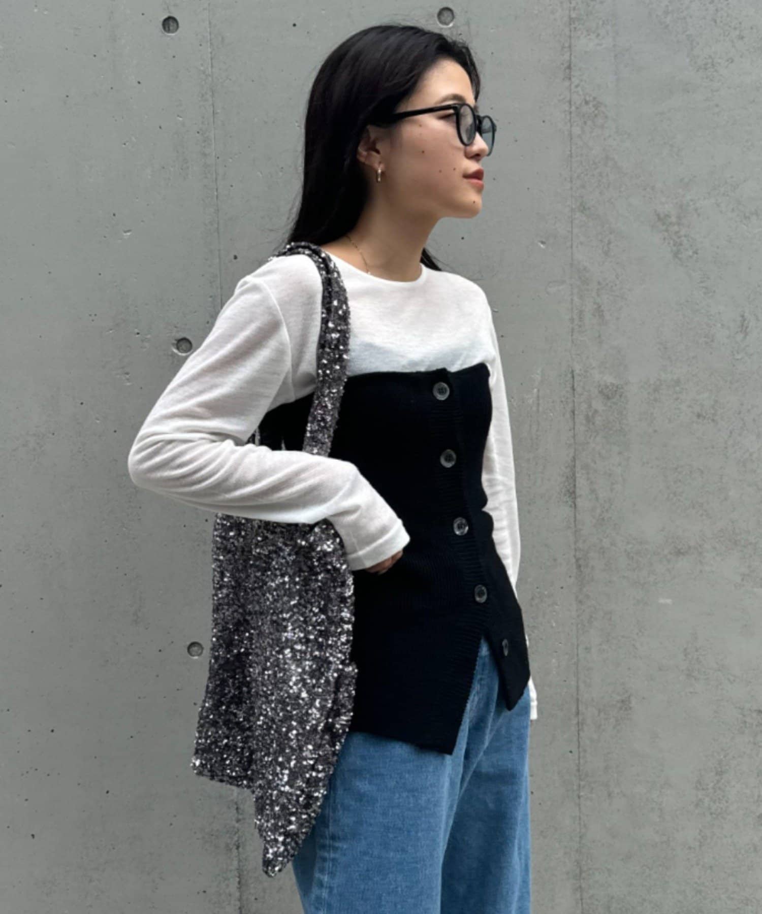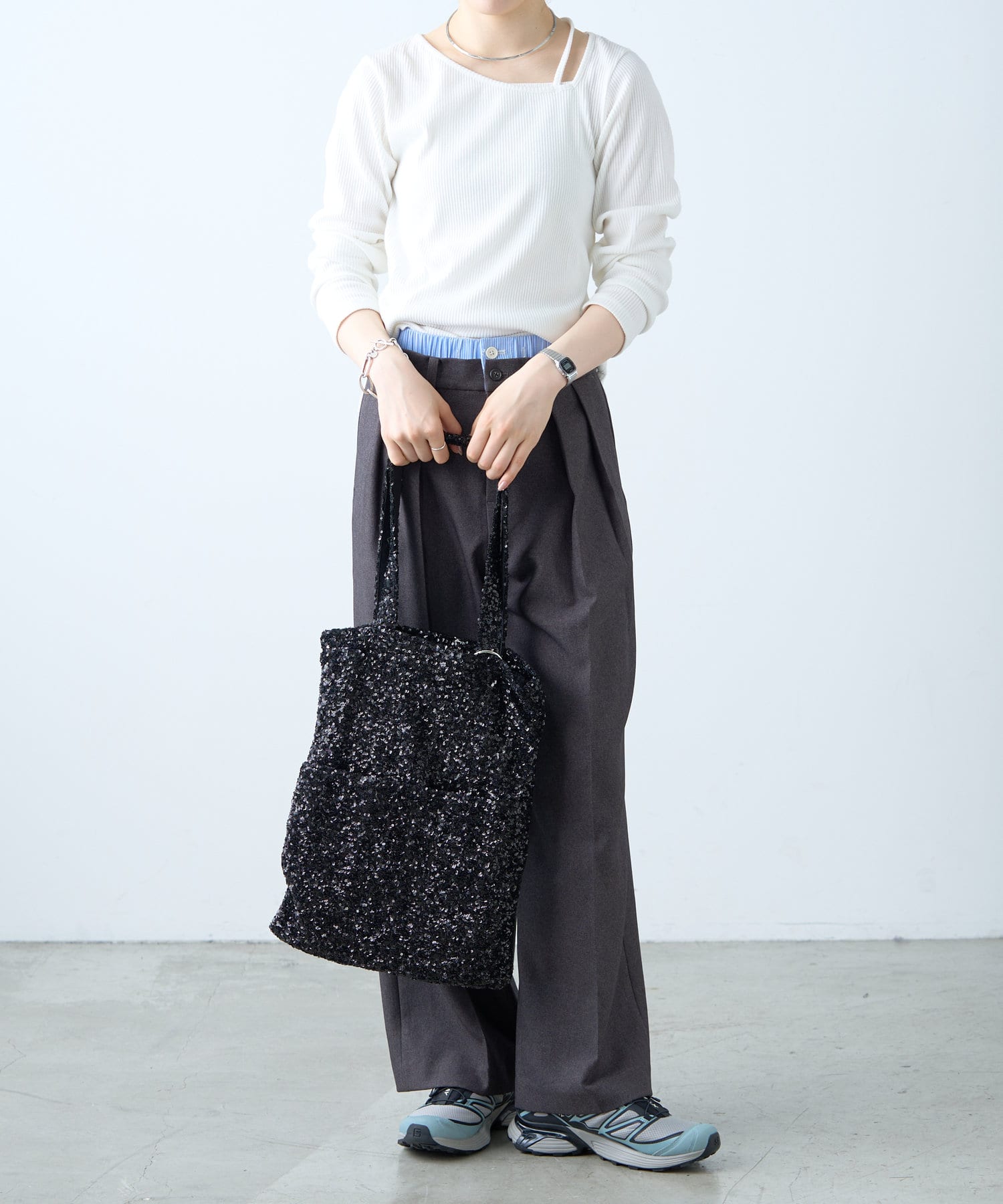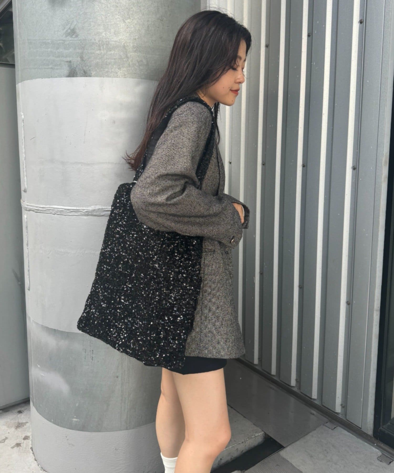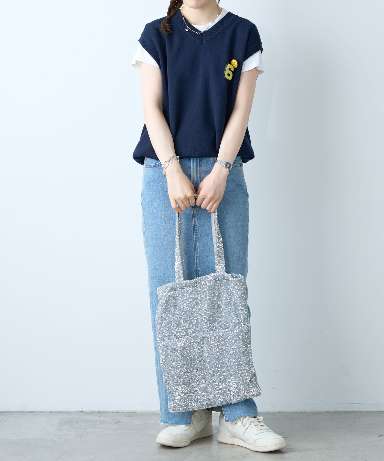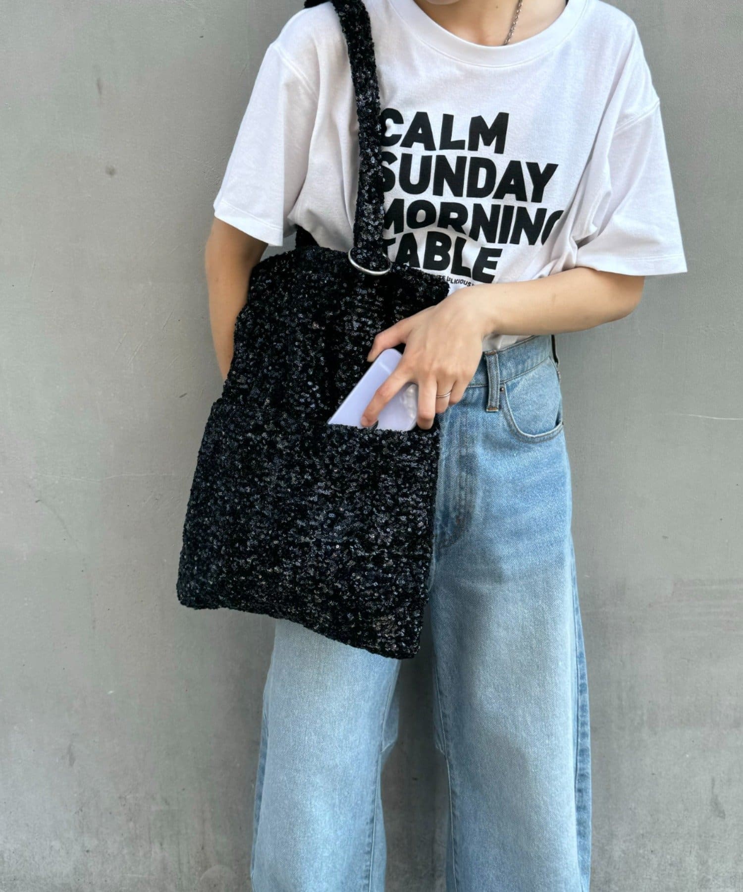 【A4サイズ対応】カラビナ付きスパンコールトートバッグ