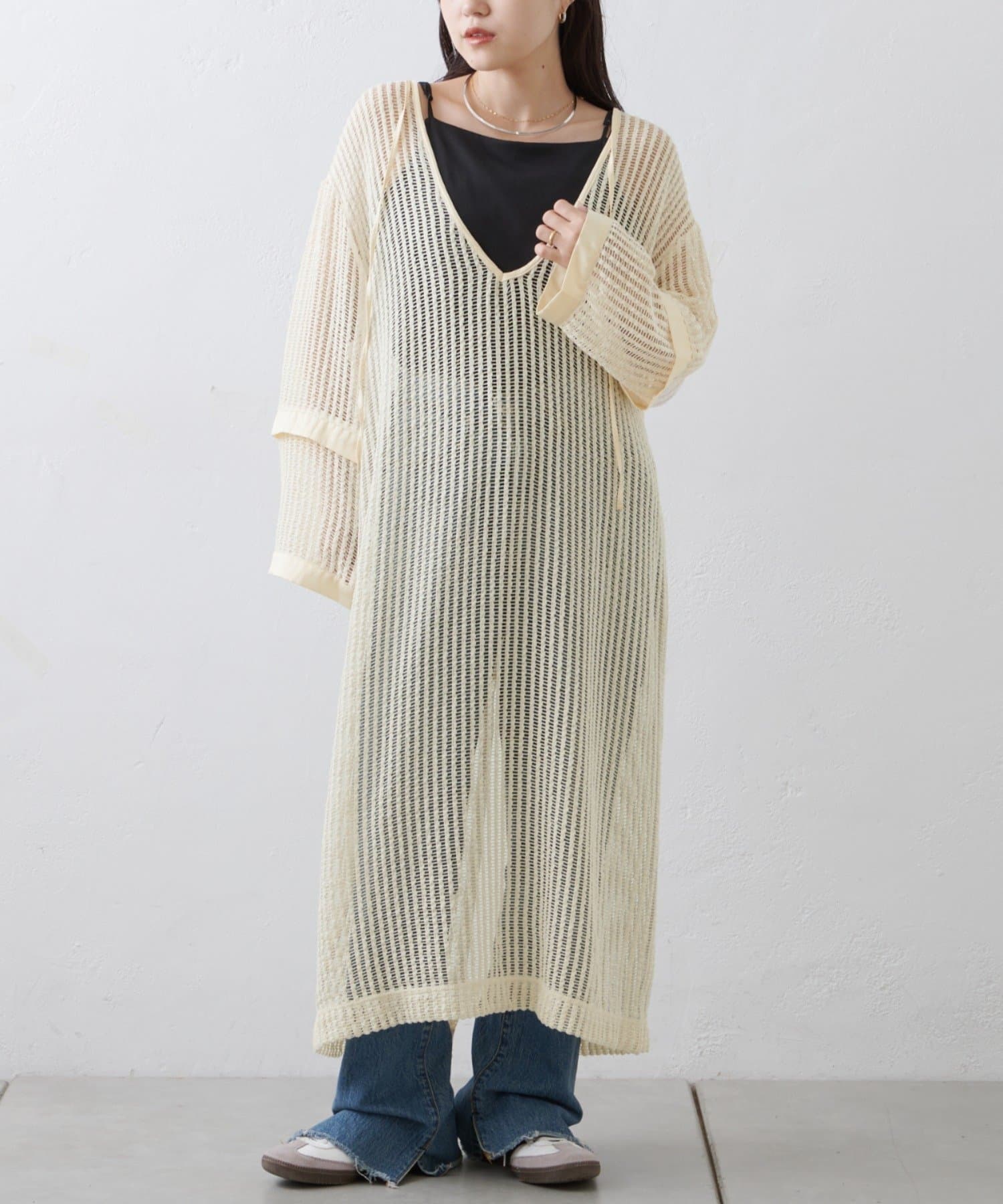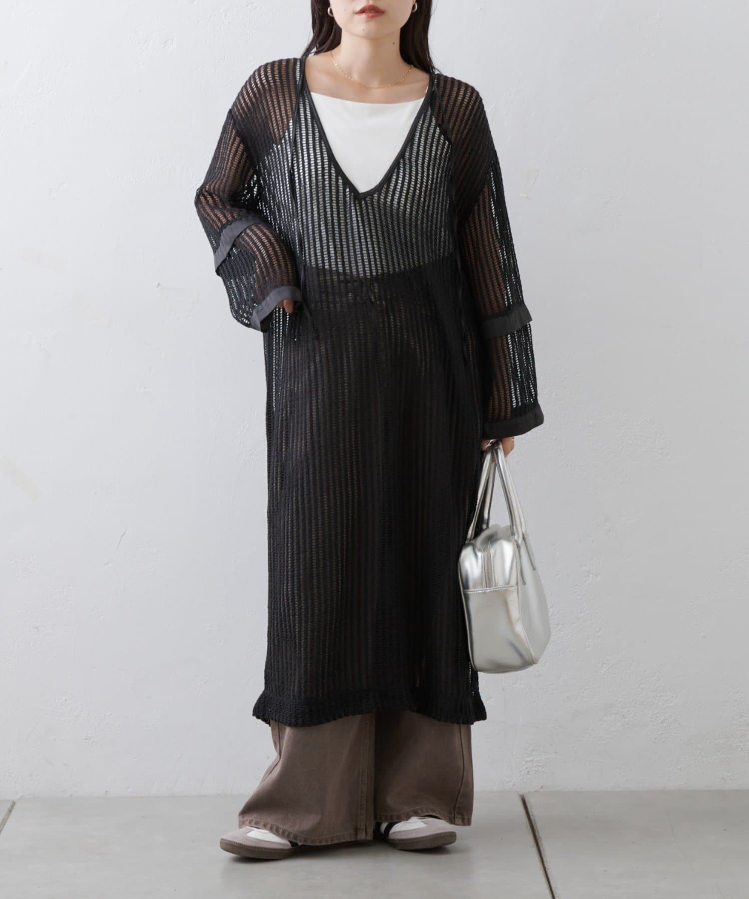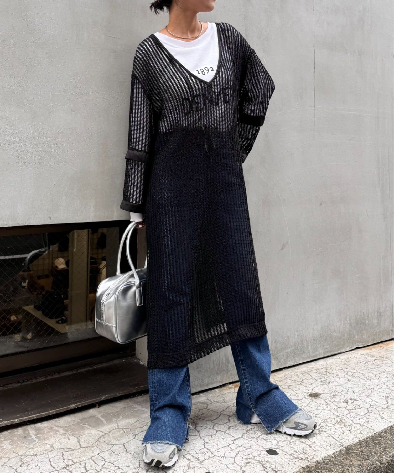 トレンドのメッシュ素材で、レイヤードスタイルにも活躍するワンピース!