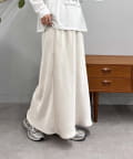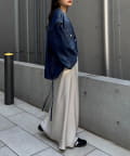 アイボリーと迷いましたが汚れが目立ちそうだったのでこちらの色にしました。上は割とどんなものでも会うので、シャツやブラウスで綺麗めに着たり、スウェットでカジュアルダウンしたりしてます。161cmMサイズで少し長めなので、高さがない靴を履くときは1回折ってます。