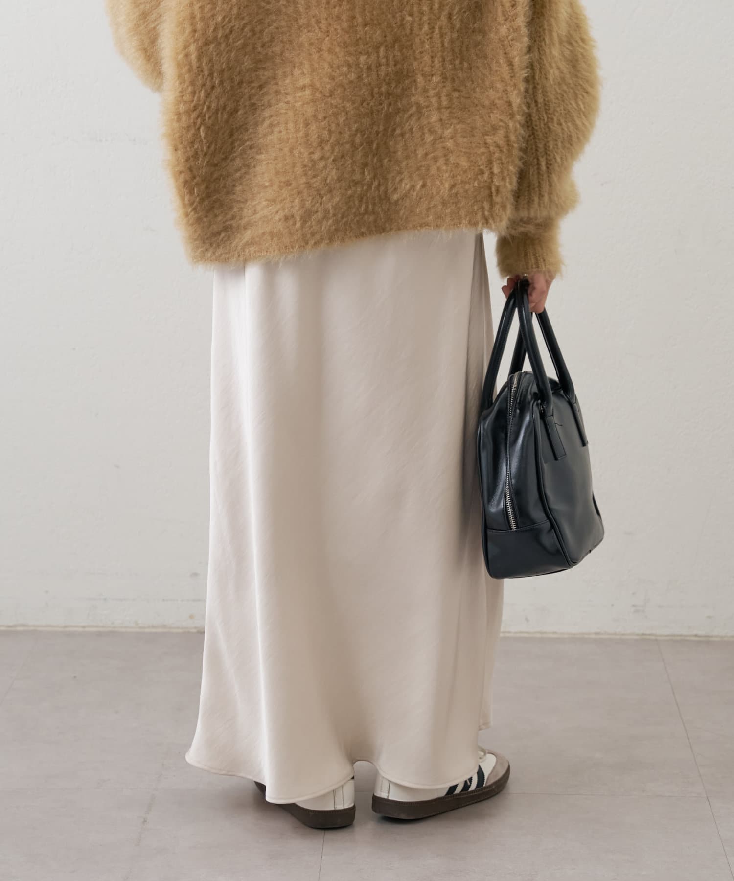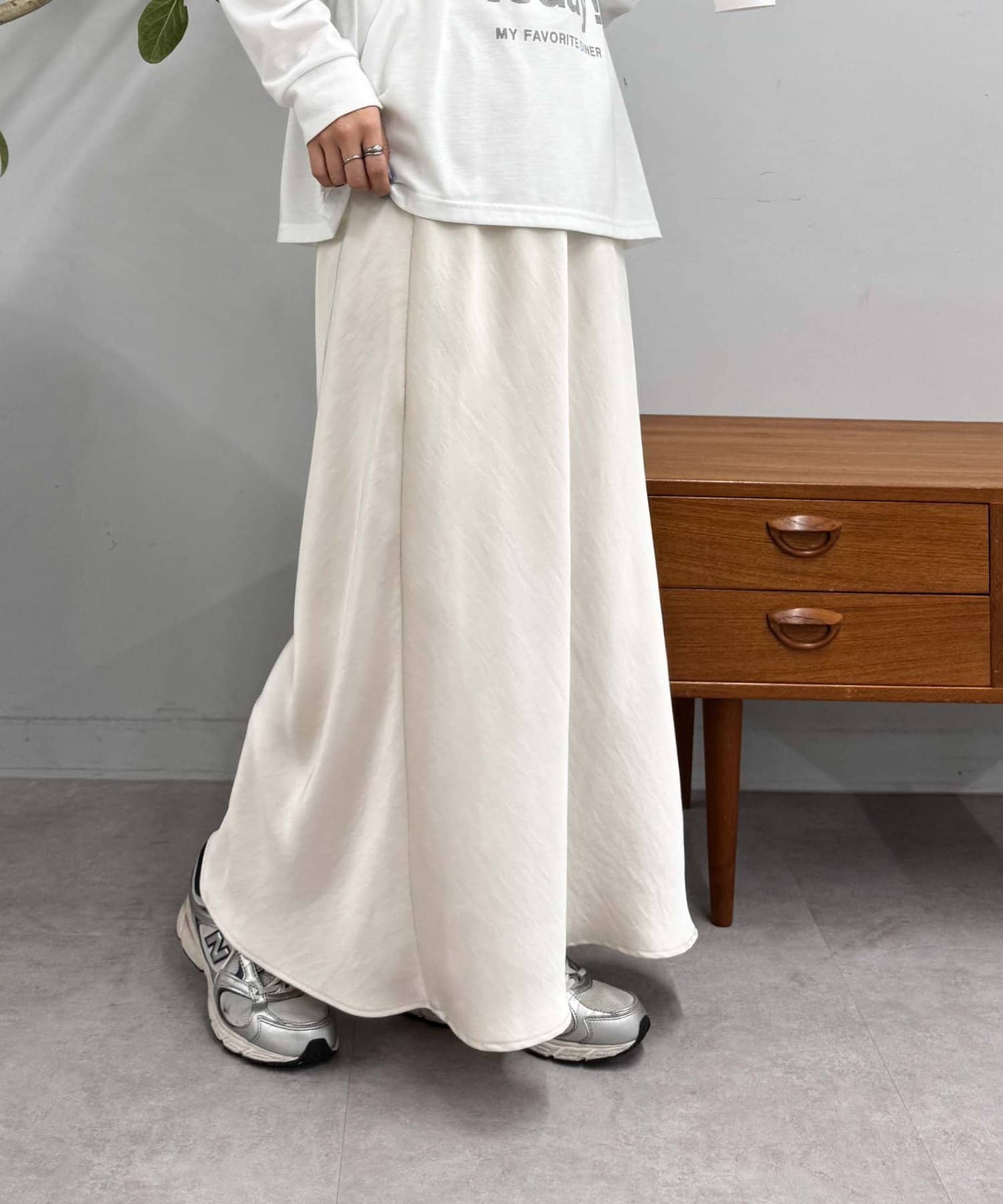 上品な光沢感が魅力のサテンスカート。