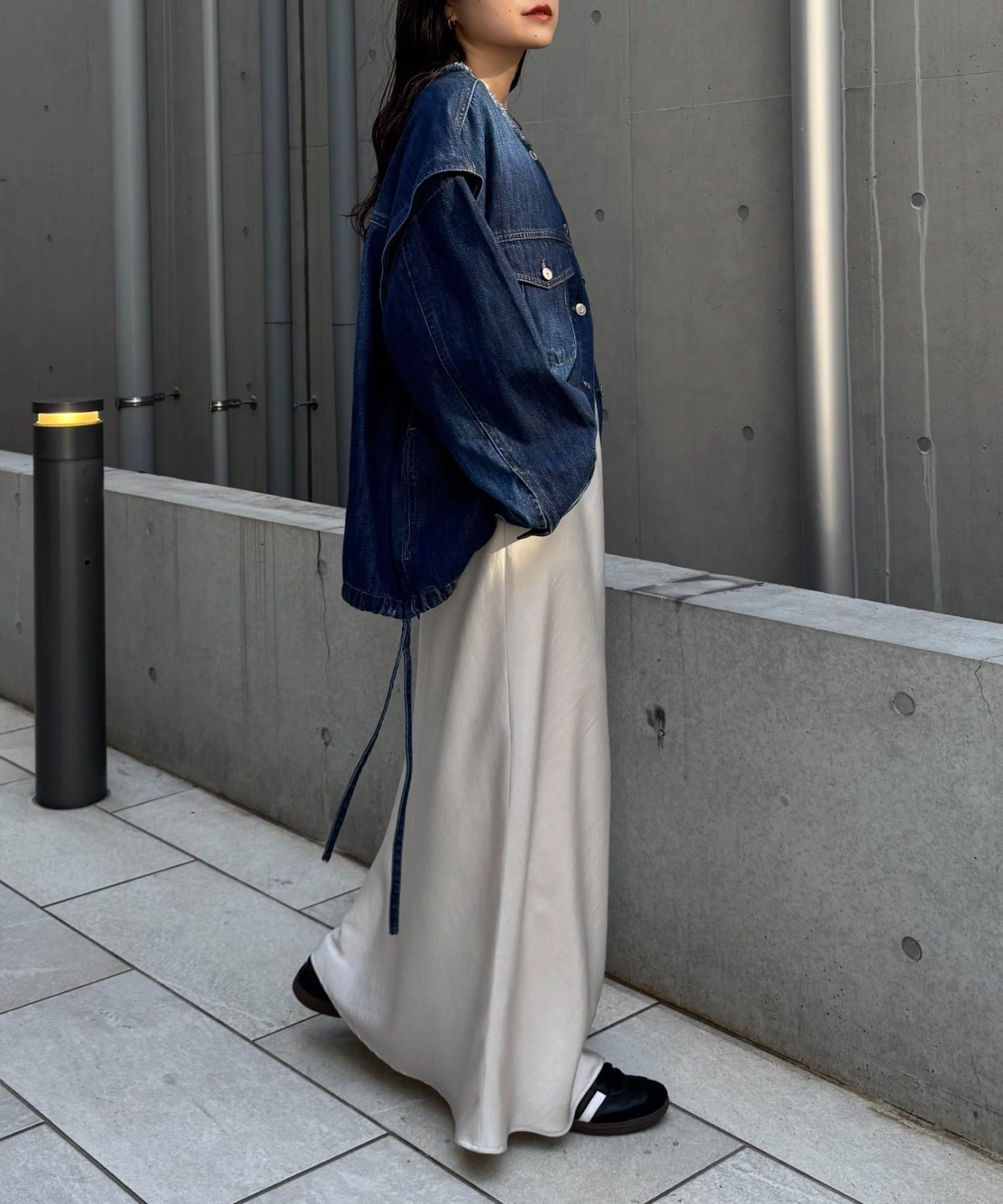 裾に向かってさりげなく広がるIラインシルエットと、
