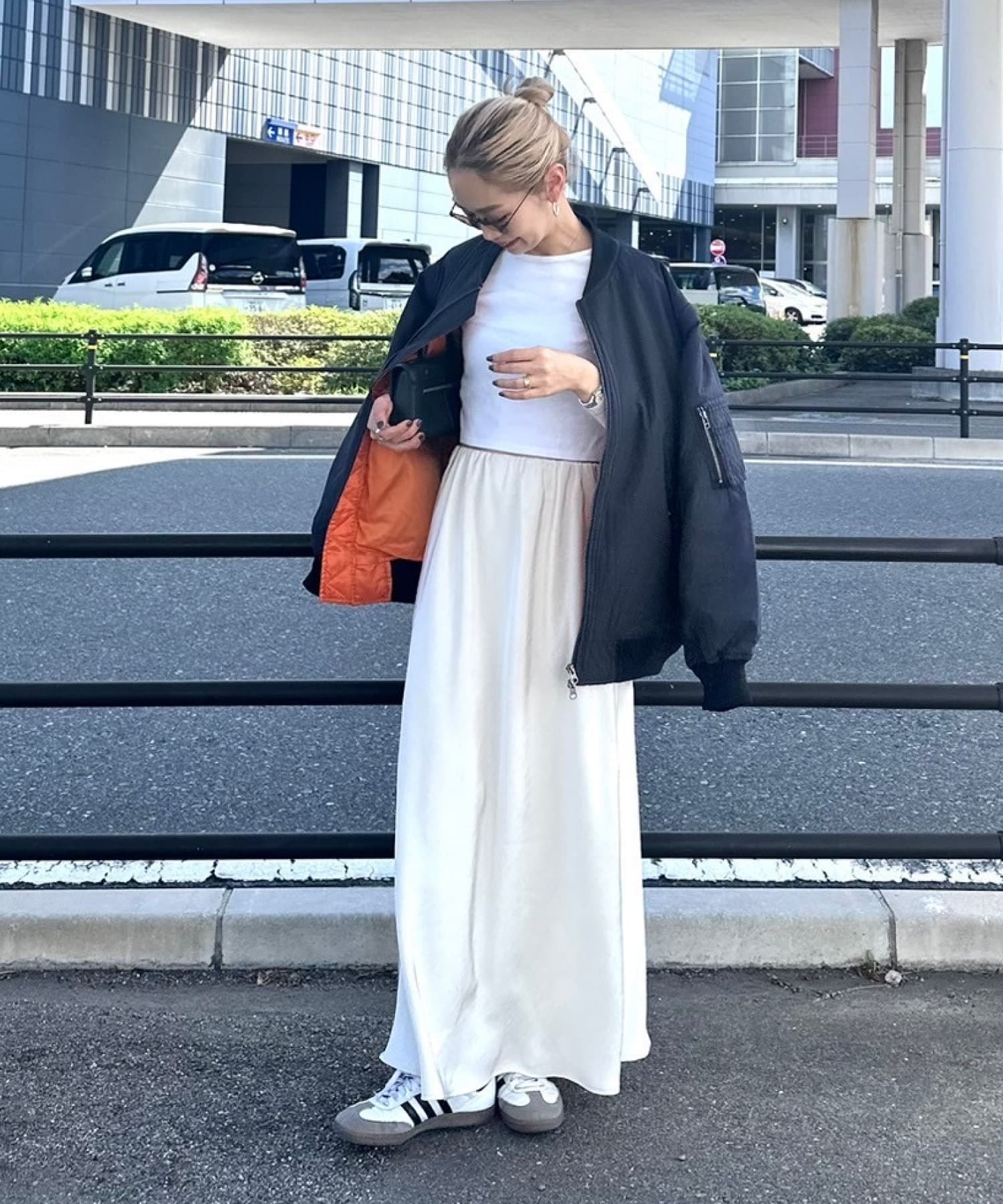 サテン素材でいつものコーデに上品さをプラス!
