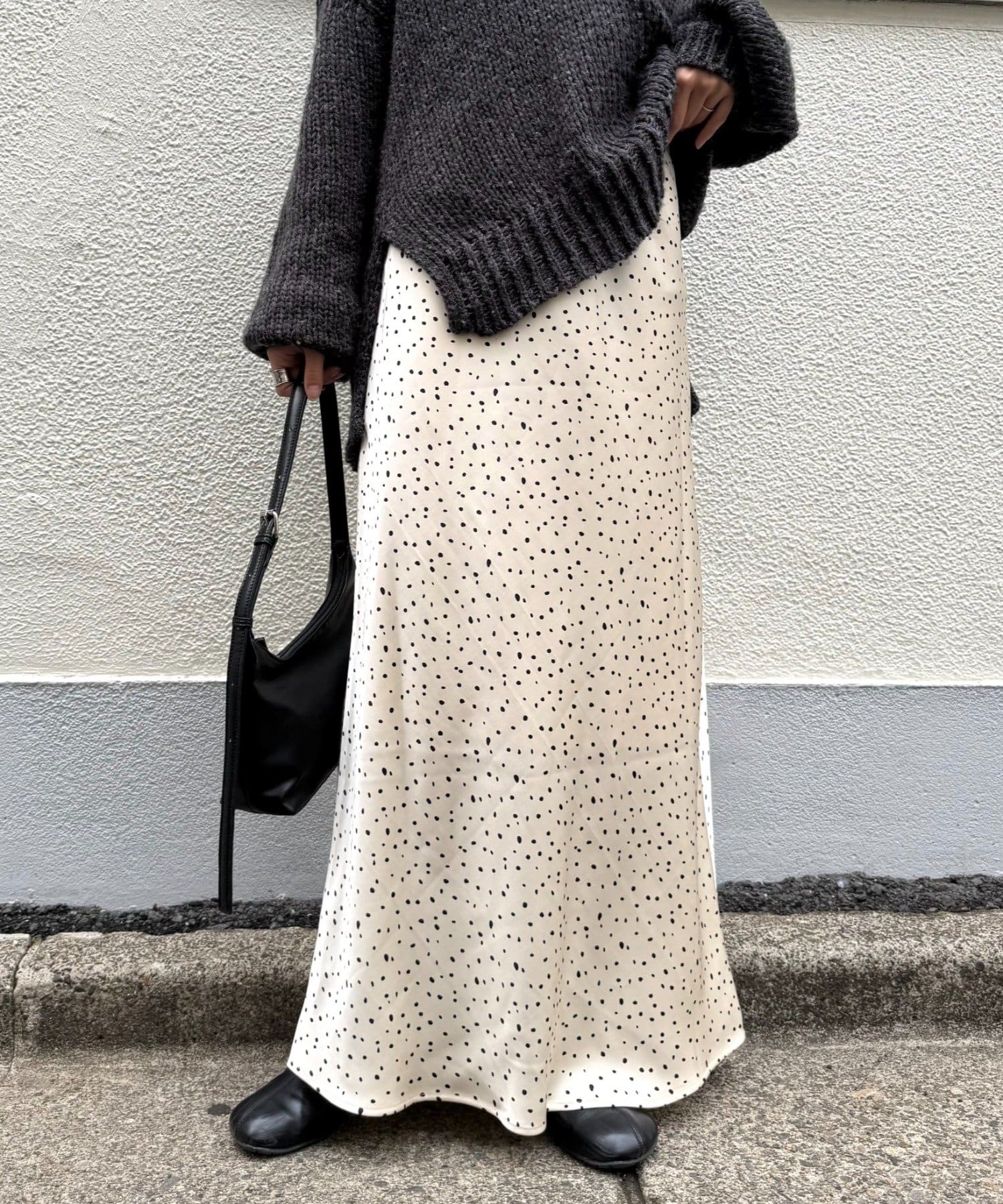 ストンとしなやかに落ちる生地感と光沢で大人可愛いです!