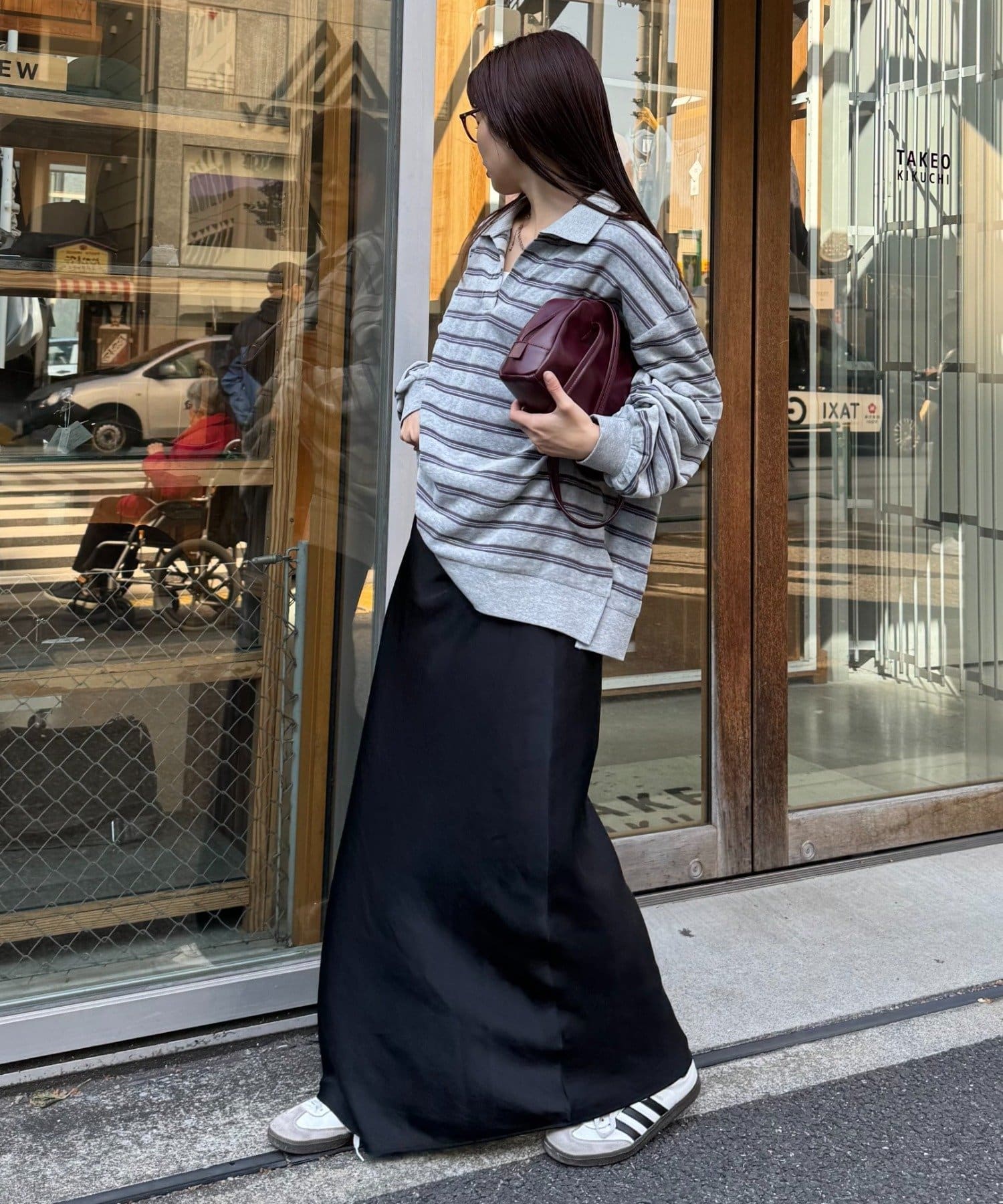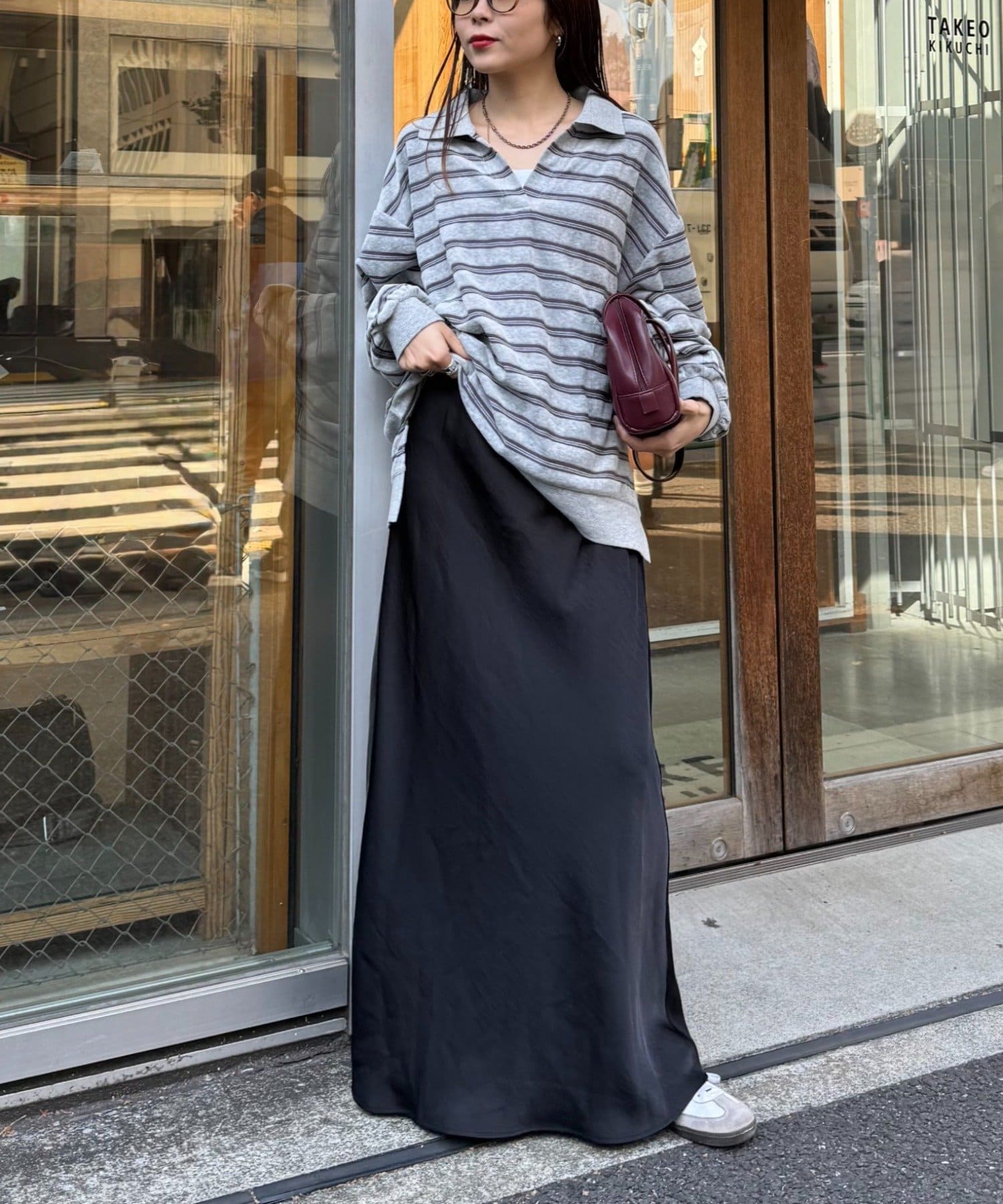 秋冬定番のカジュアルなスウェットなどとのスタイリングも上品に決まります!