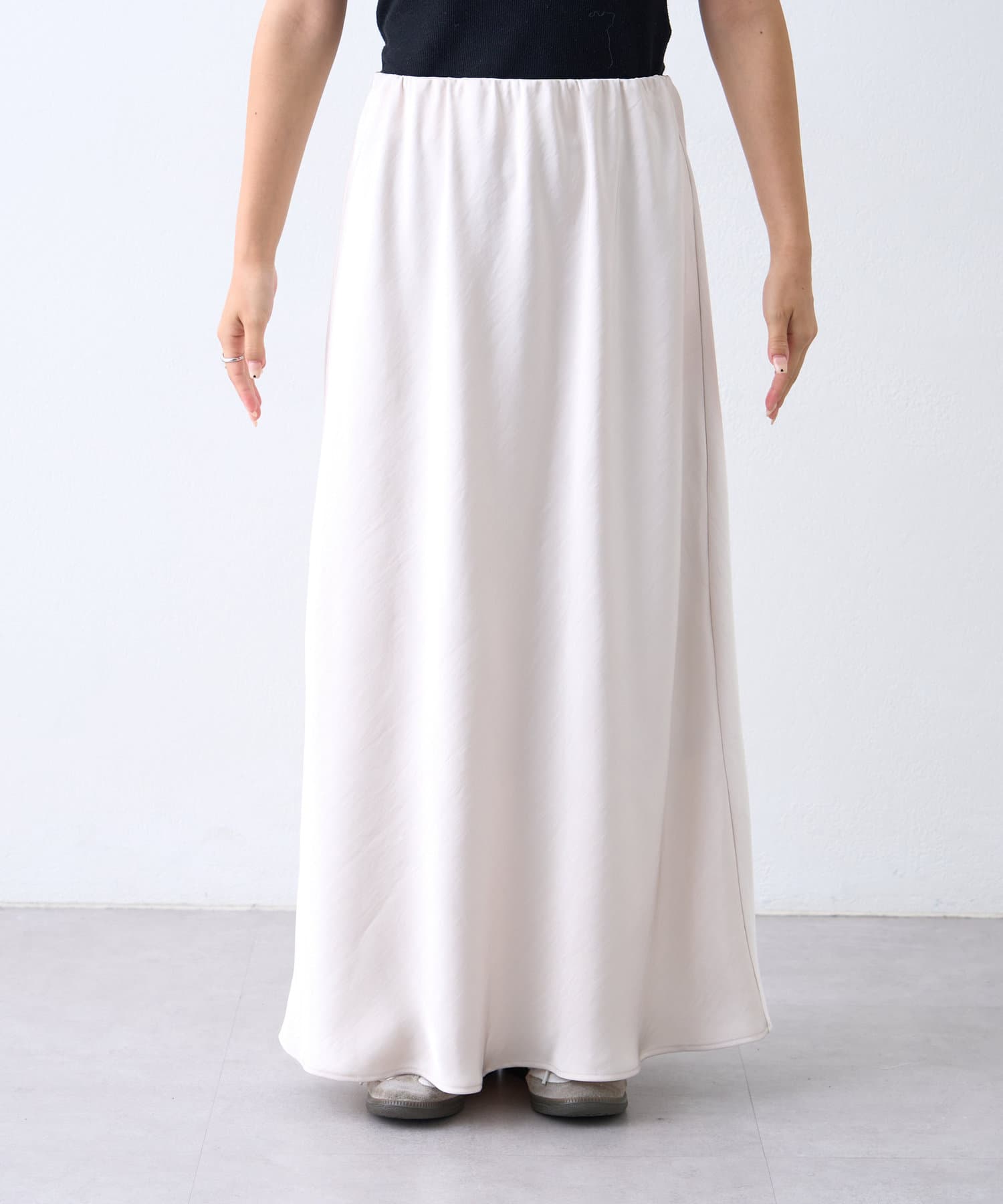 上品な光沢感が魅力のサテンスカート。
